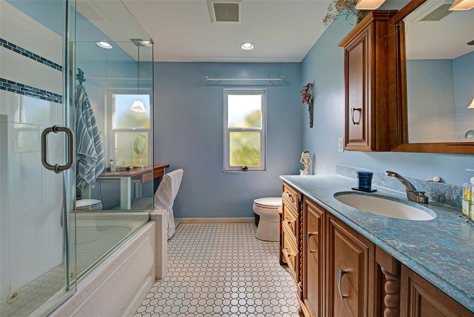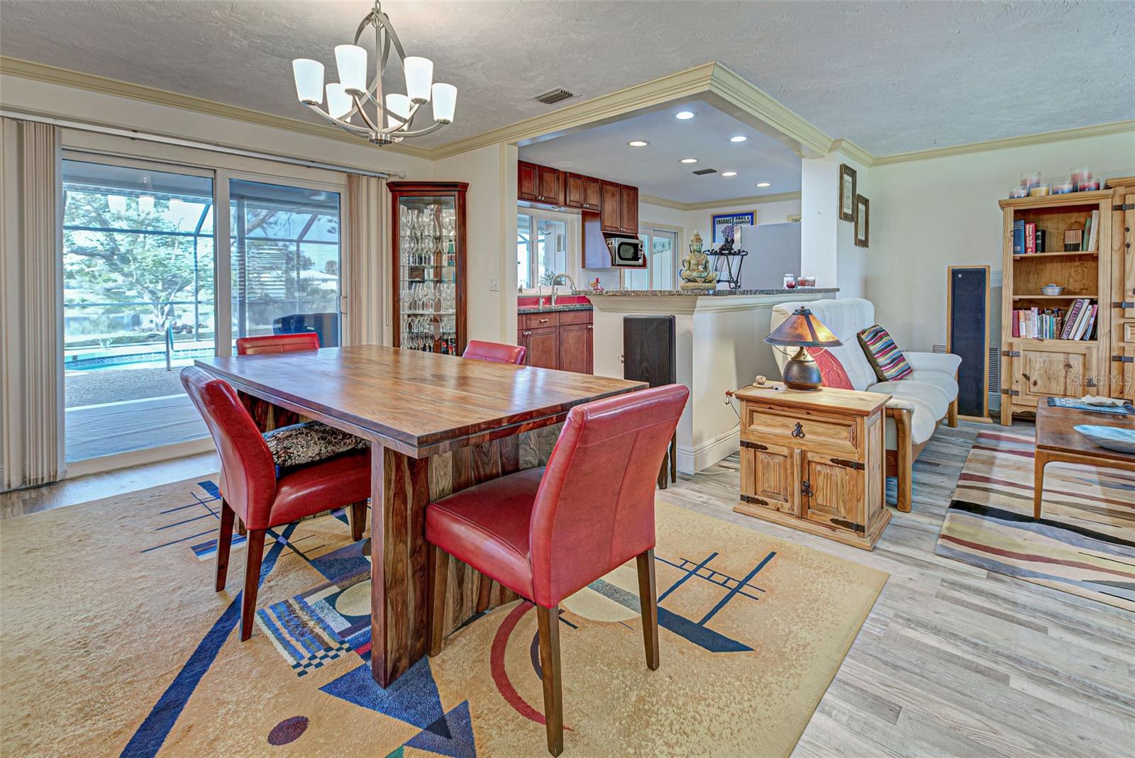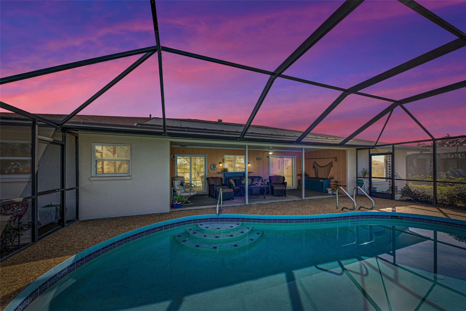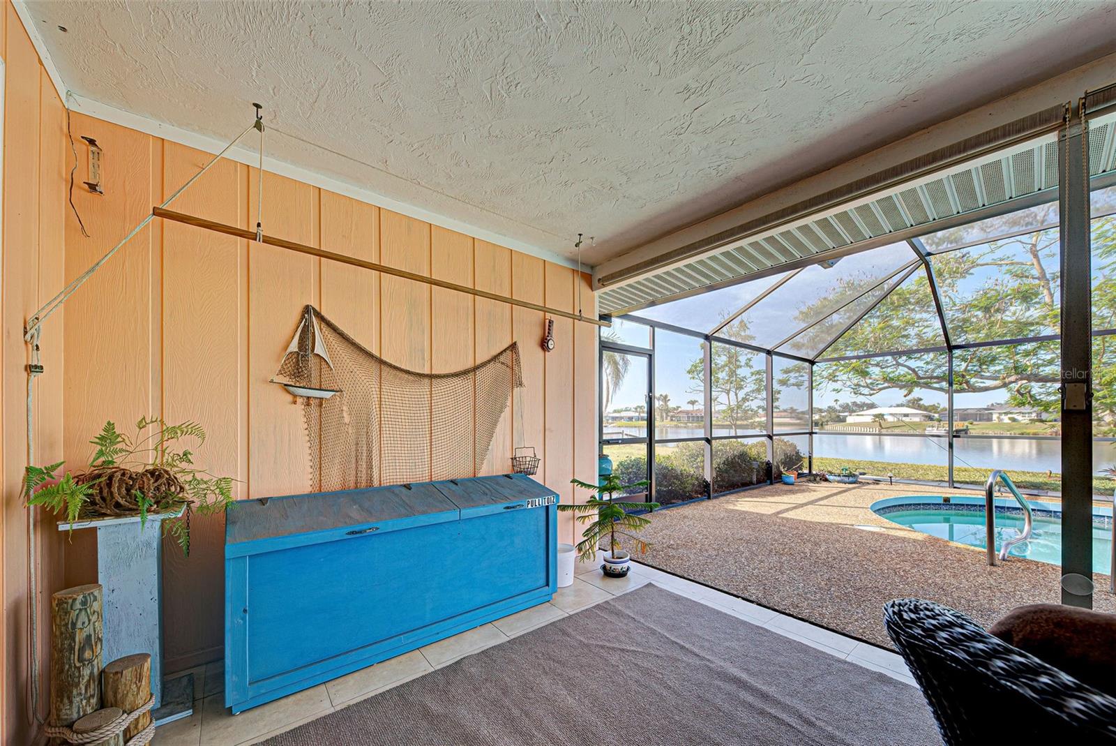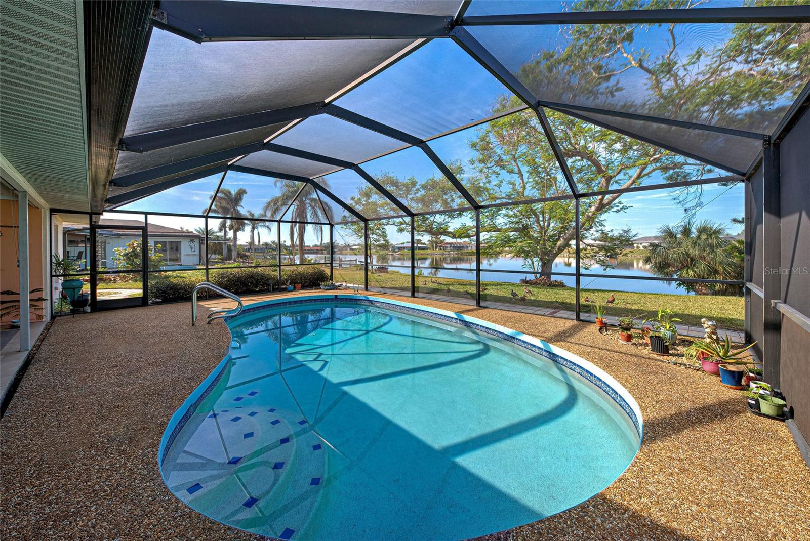 One or more photo(s) has been virtually staged. This home has the view you are looking for! It has a Long Open view of Claw Lake which allows you to get the most out of Florida Sunsets! Relax on the lanai and enjoy the view, birds and the quiet contentment this home brings. You will love it here! This charming 2-bedroom, 2 and 1/2-bath POOL home offers a serene water view of Claw Lake and numerous updates throughout. The Big ticket items have been taken care of! NEW HVAC JUNE 2025, NEW ROOF installed in 2023 and IMPACT RESISTANT WINDOWS bring you peace of mind. The split-bedroom floor plan ensures privacy, while the spacious living areas provide comfort and versatility. The Kitchen has Granite countertops and has been opened up to create an open floor plan. Beautiful glass enclosures update the shower in the Primary Bath and the Jacuzzi tub in the guest bath and bring a contemporary feel. There is also a DEN/OFFICE/3rd Bedroom provides extra space if needed. The salt-water pool is not only a joy but it has new solar heating which will save you money as will the irrigation system that pulls water from the lake. The beautiful lanai and pool area is perfect for social gatherings or just relaxing and living that Florida Lifestyle. The community surrounding Claw lake has some activities throughout the year to include their very own Holiday Boat parade in December to be enjoyed right from your backyard. This Jacaranda West community is Conveniently located near a golf club and this home offers easy access to amenities and recreation. Enjoy all Venice has to offer to include beautiful Beaches, fine dining and shopping. Schedule your showing soon, this is a beautiful home!