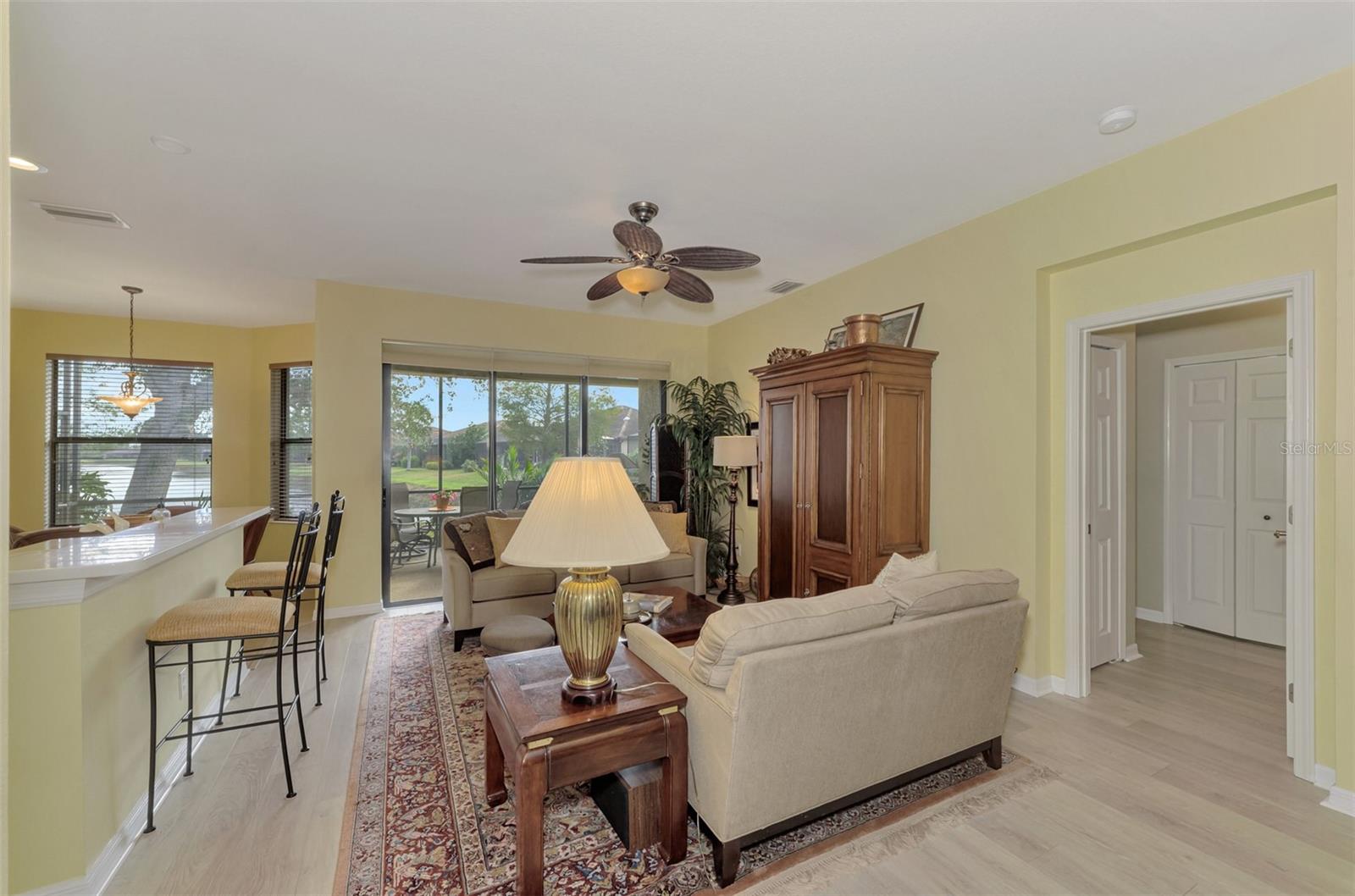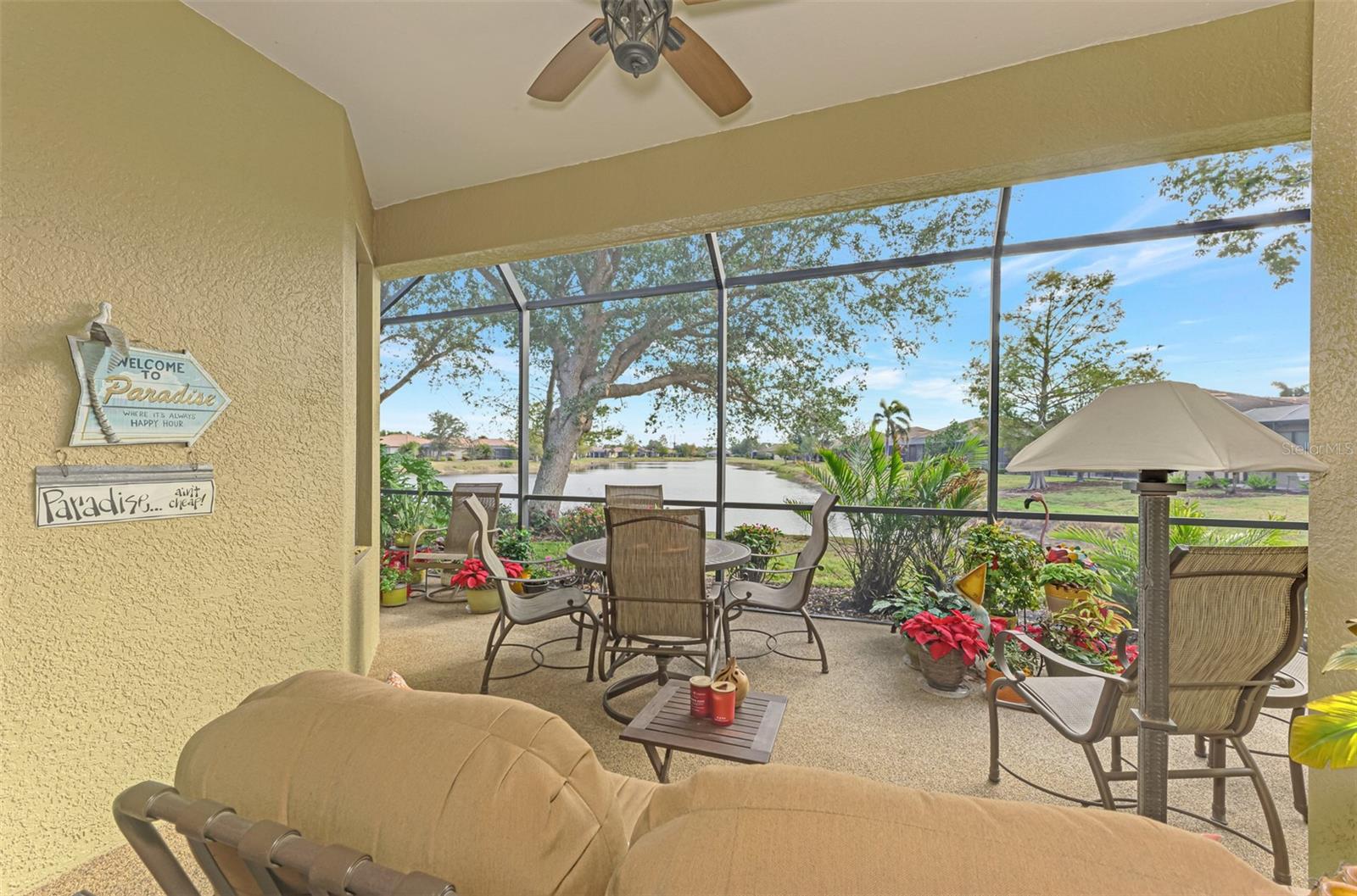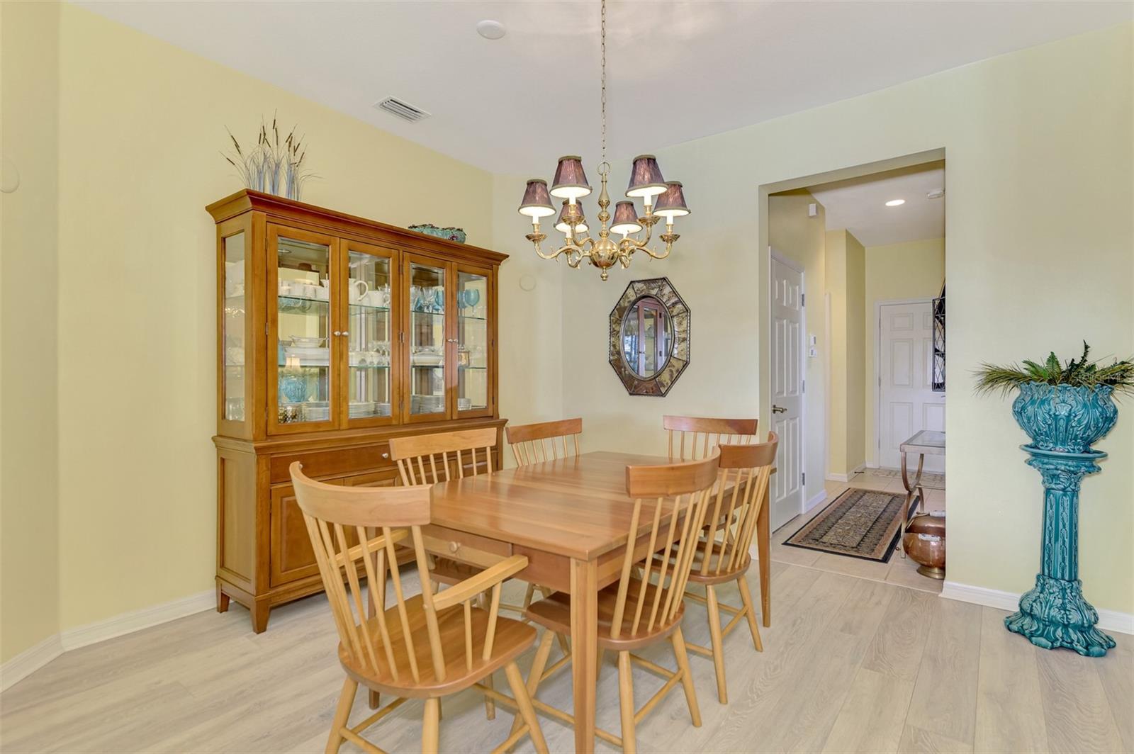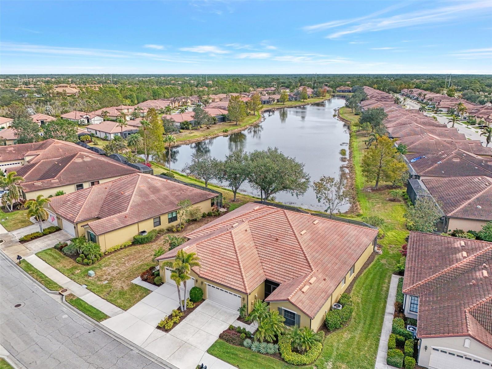 If you have been waiting for a chance to own a slice of Paradise located in one of the most enviable 55+ Communities in Venice your opportunity has arrived. This Demedici model has been lovingly cared for and seasonally used by its owners and is located on a lot withspectacular long lake views which can be enjoyed from the convenient dinette area, the great room and the primary bedroom as well as the extended lanai where you have endless opportunities for entertaining guests or quiet relaxation with a beverage and good book. The unit has a split plan featuring a guest bedroom and bathroom at one end of the home while the primary bedroom and bath are locatedat the opposite end. The flex/den/office is situated separate from the open Kitchen, great room and dining area. The community has many amenities to include a resort style pool, a resistance pool for low impact exercise, a hot tub, bocce courts, a putting green, game room, craft room, Banquet room and a full-size work out facility. There is helpful on-site management and a schedule of community events published monthly. With Low quarterly HOA fees and NO CDD"S this villa needs to be on your list for a "must see" property.