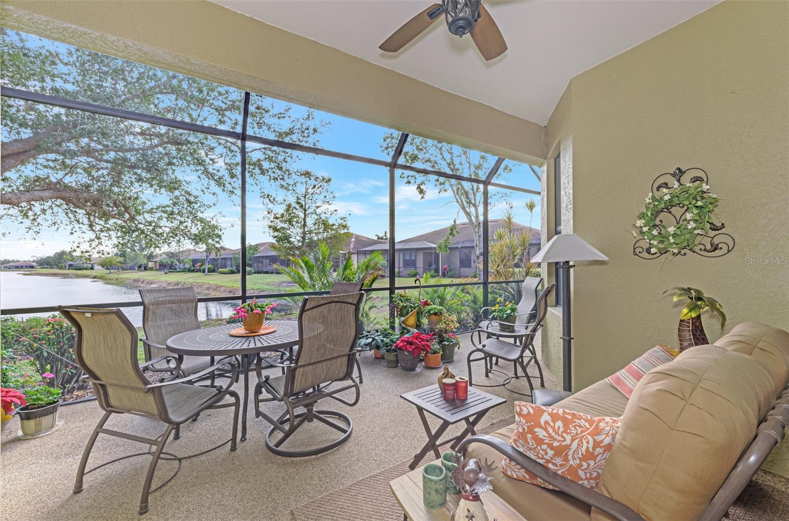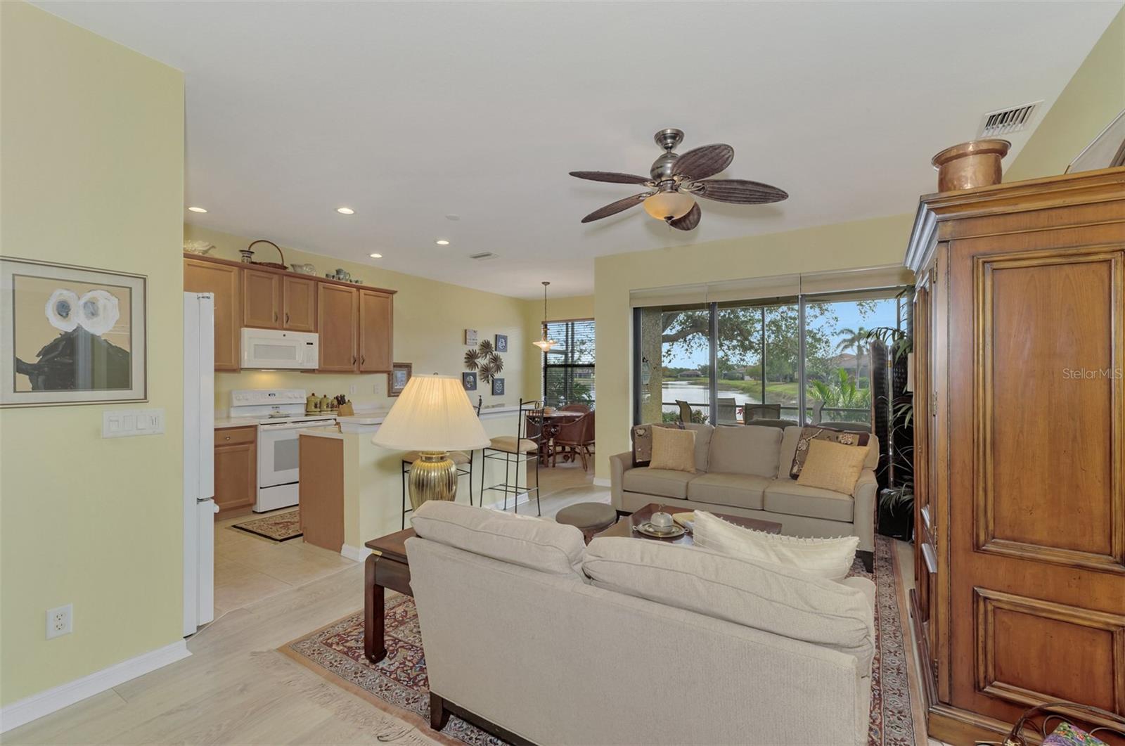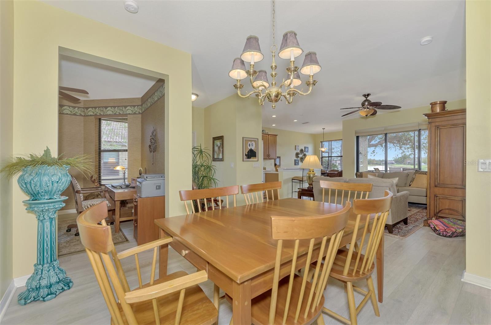 If you have been waiting for a chance to own a slice of Paradise located in one of the most enviable 55+ Communities in Venice your opportunity has arrived. This Demedici model has been lovingly cared for and seasonally used by its owners and is located on a lot withspectacular long lake views which can be enjoyed from the convenient dinette area, the great room and the primary bedroom as well as the extended lanai where you have endless opportunities for entertaining guests or quiet relaxation with a beverage and good book. The unit has a split plan featuring a guest bedroom and bathroom at one end of the home while the primary bedroom and bath are locatedat the opposite end. The flex/den/office is situated separate from the open Kitchen, great room and dining area. The community has many amenities to include a resort style pool, a resistance pool for low impact exercise, a hot tub, bocce courts, a putting green, game room, craft room, Banquet room and a full-size work out facility. There is helpful on-site management and a schedule of community events published monthly. With Low quarterly HOA fees and NO CDD"S this villa needs to be on your list for a "must see" property.