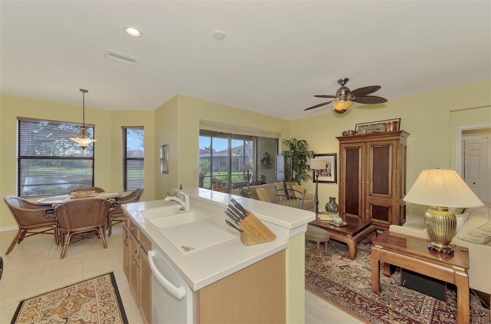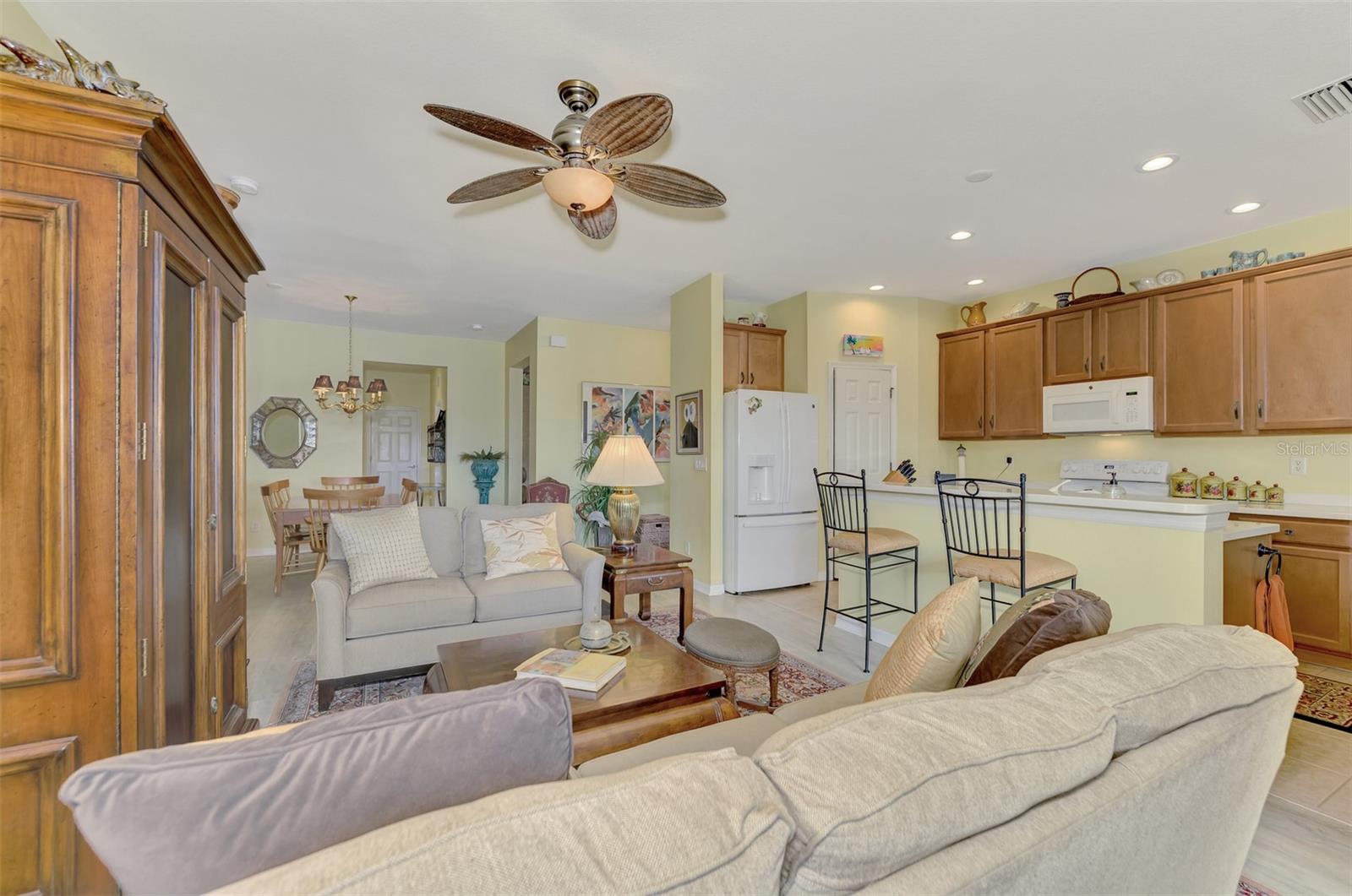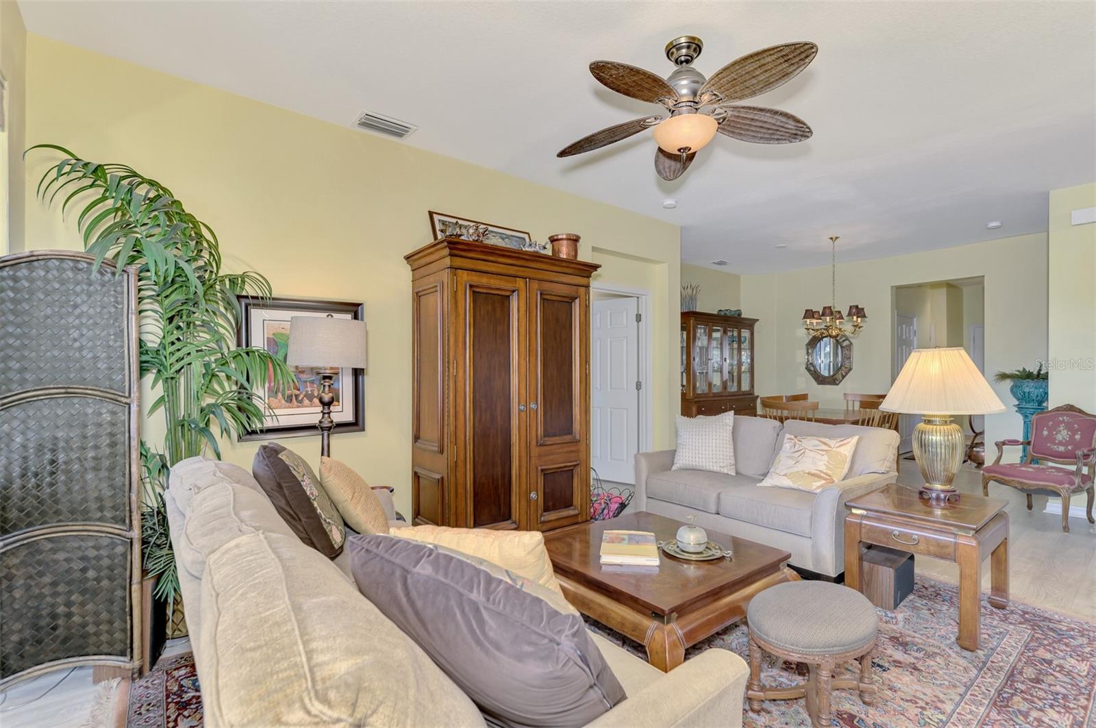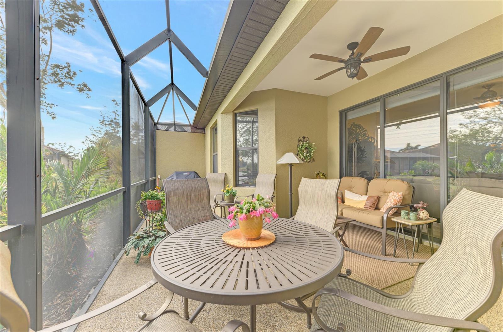 If you have been waiting for a chance to own a slice of Paradise located in one of the most enviable 55+ Communities in Venice your opportunity has arrived. This Demedici model has been lovingly cared for and seasonally used by its owners and is located on a lot withspectacular long lake views which can be enjoyed from the convenient dinette area, the great room and the primary bedroom as well as the extended lanai where you have endless opportunities for entertaining guests or quiet relaxation with a beverage and good book. The unit has a split plan featuring a guest bedroom and bathroom at one end of the home while the primary bedroom and bath are locatedat the opposite end. The flex/den/office is situated separate from the open Kitchen, great room and dining area. The community has many amenities to include a resort style pool, a resistance pool for low impact exercise, a hot tub, bocce courts, a putting green, game room, craft room, Banquet room and a full-size work out facility. There is helpful on-site management and a schedule of community events published monthly. With Low quarterly HOA fees and NO CDD"S this villa needs to be on your list for a "must see" property.