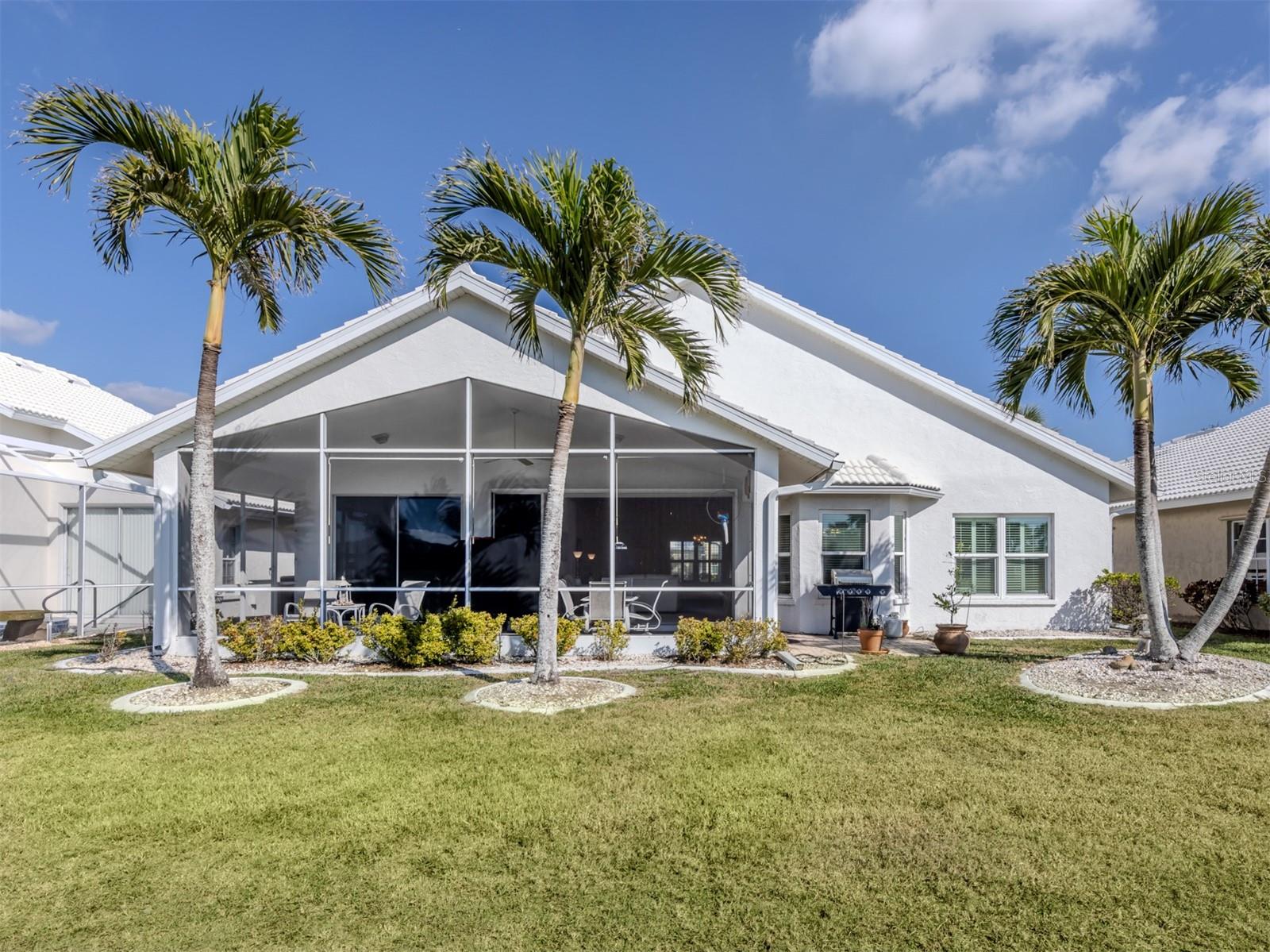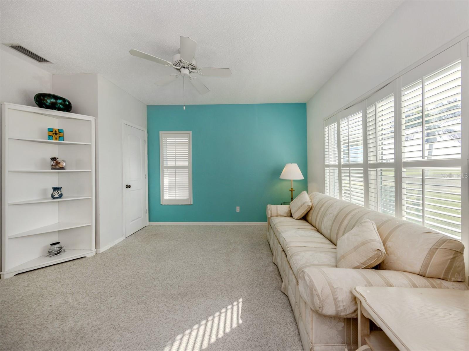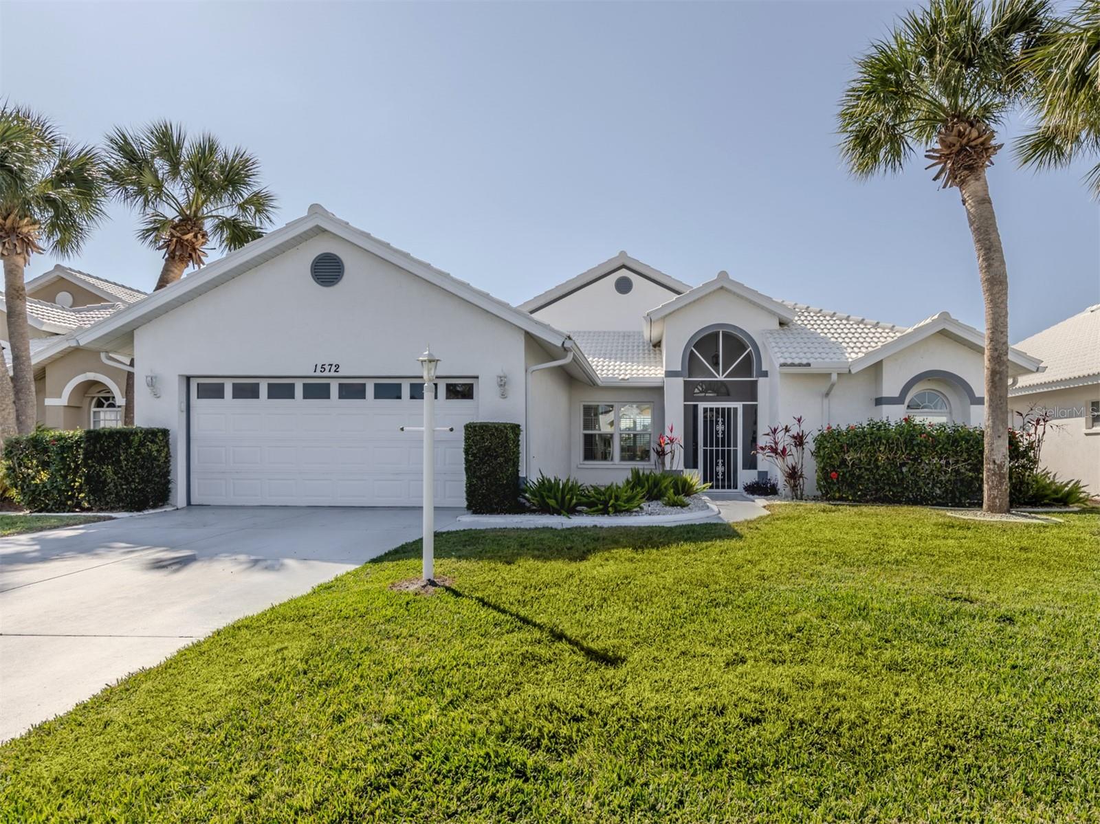 Welcome to Devonshire North, a charming enclave within the highly desirable Waterford community, known for its three scenic nine-hole golf courses and exceptional amenities. This meticulously maintained 2,022 sq. ft. home is bathed in natural light and showcases the beautiful tile and breathtaking golf course views. Whether you're looking for a permanent residence or a winter retreat, this move-in-ready home offers comfort and style. Featuring two bedrooms, an office/den and two bathrooms, the thoughtfully designed layout includes a spacious kitchen with wood cabinetry, a subway tile backsplash, and a bright eat-in area framed by a bay window. The den has a closet and could be considered a third bedroom. The formal dining room seamlessly flows into the great room with sliding glass doors that lead to the expansive screened lanai--perfect for entertaining or unwinding. The primary suite boasts a generous walk-in closet and an ensuite bathroom. The second bedroom is bright and offers ample storage. All windows, except the sliding glass door have been replaced with wind resistant windows. As a resident of Waterford, you'll enjoy a vibrant, active lifestyle with access to the Waterford Golf Course, a semi-private 27-hole club featuring a restaurant, pro shop, and more. The Sports Club Complex offers a serene park, pool, spa, and four tennis courts, along with a fitness center, sauna, kitchen, dance floor, library, and social spaces. Devonshire North is a welcoming community with weekly gatherings, low HOA fees, and no age restrictions. Come explore this exceptional home and discover why Waterford living is truly special!