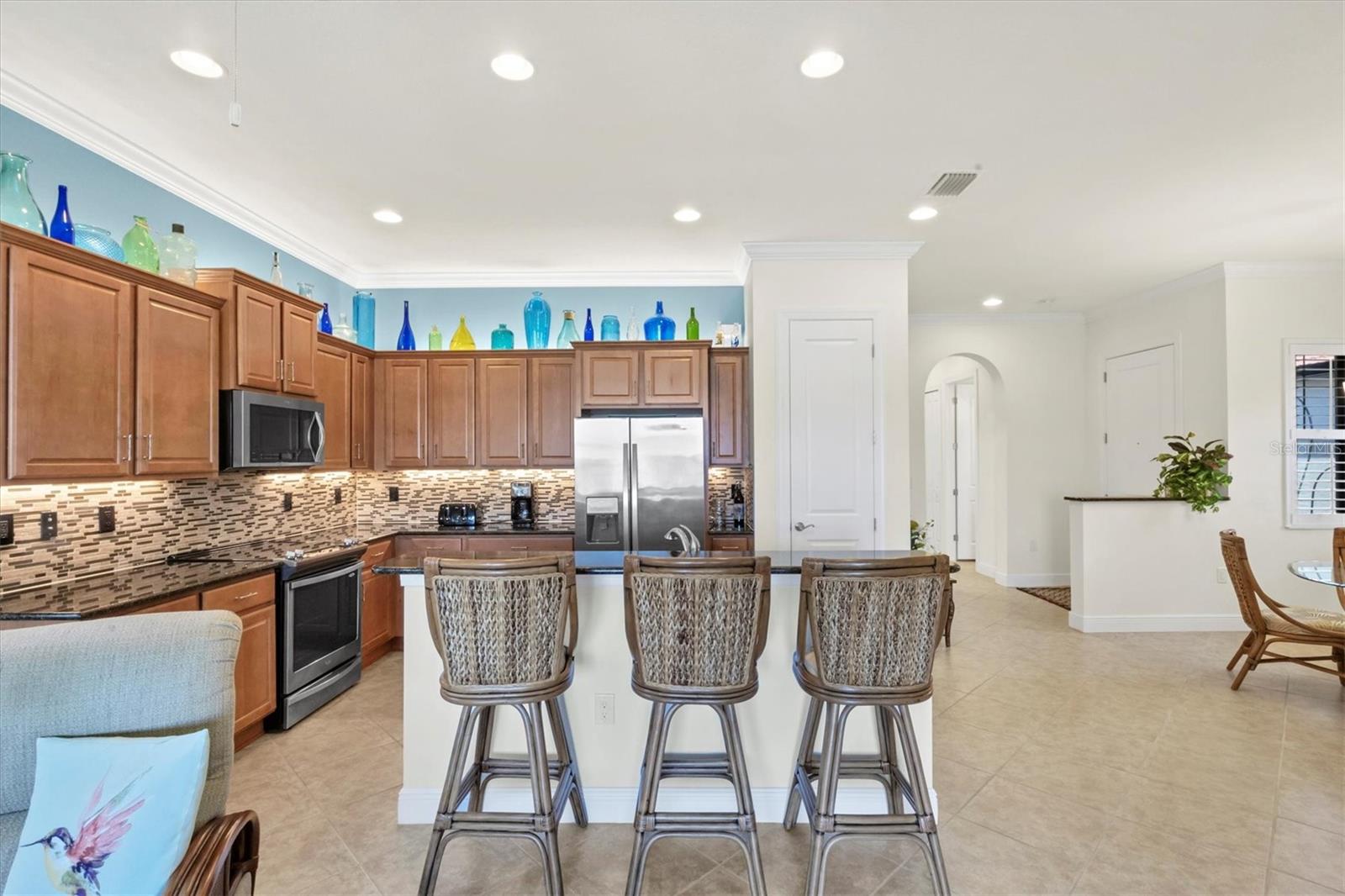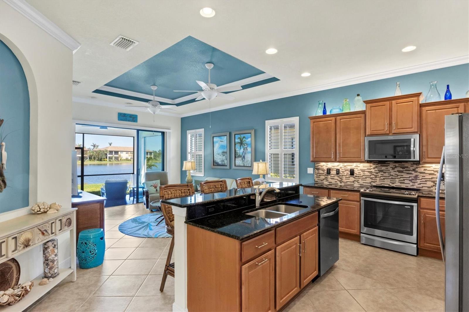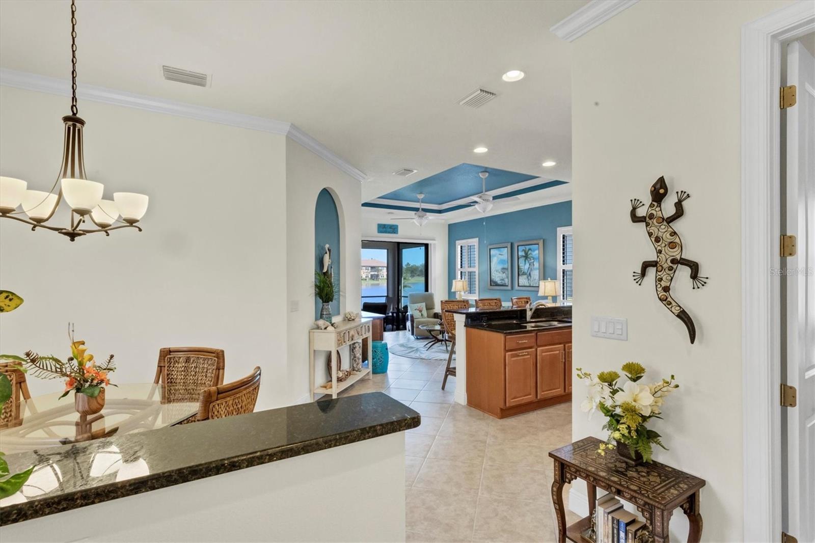 HAPPY HOLIDAYS! What a Nice GIft! This is a True WCI Quality FREE STANDING HOME. The most Popular MEDINA Model, Light and Bright with high end finishes and upgraded features on a glistening wide water view Homesite. Gently Lived-in During the Season and Meticulously Cared For. This Villa is in the LAKE VILLAGE IN SARASOTA NATIONAL! No Golf Fees or that $15,000 Golf Course Assessment. You have Country Club Living and Dining and wonderful amenities, Golf Club is not available or required. This plan lives larger than the just under 1,600 Sq. Ft. under air. It's an open floor "split" plan from Foyer back to the Lanai. Yes, there is room for a pool! This WCI Home comes with 10' Ceilings throughout with Tray Ceilings in the Great Room and Master Bedroom. There is a host of extra features No Carpet- All Tile Floors. Finished Laundry Room. All Existing Furniture, Furnishings and Decor in the Home. Lanai and Garage remaining available by separate agreement, easily more than a $10,000 value. With a few exceptions all the Villas on this section of Crooked Creek are WCI standards. Sarasota National is forever a Venice address in unincorporated Sarasota County. Developed under the Audubon Cooperative Sanctuary Program it protects the environment and abundant wildlife habitats that this community provides. The result is 2,400 acres platted for fewer than 1,600 "door fronts". All residents support and enjoy the amenities of the Palm Club with fine dining, Tiki Bar and full calendar of social and recreational activities. It is Gated, pet friendly with miles of walking and bike lanes within the community. Just minutes outside the gates are everyday shopping, beaches, medical resources and our Historic District on Venice "Island". And of course our wonderful Atlanta Brave Spring Training Facility "Cool-Today Park with year round events, Concerts and even Out-Door Movies on the Hi-Res Scoreboard. Top that with the fantastic development happening now in Wellen Park. This is wonderful home, wonderful area, wonderful lifestyle at a fabulous price.