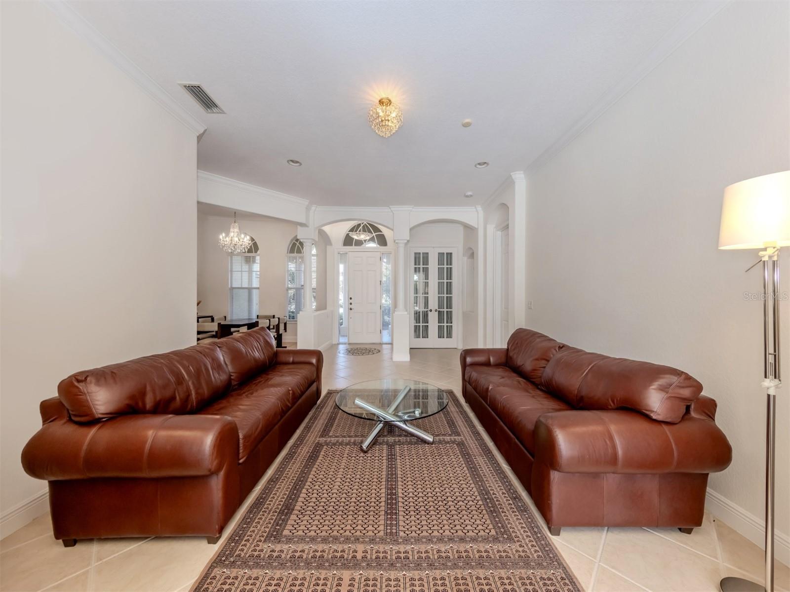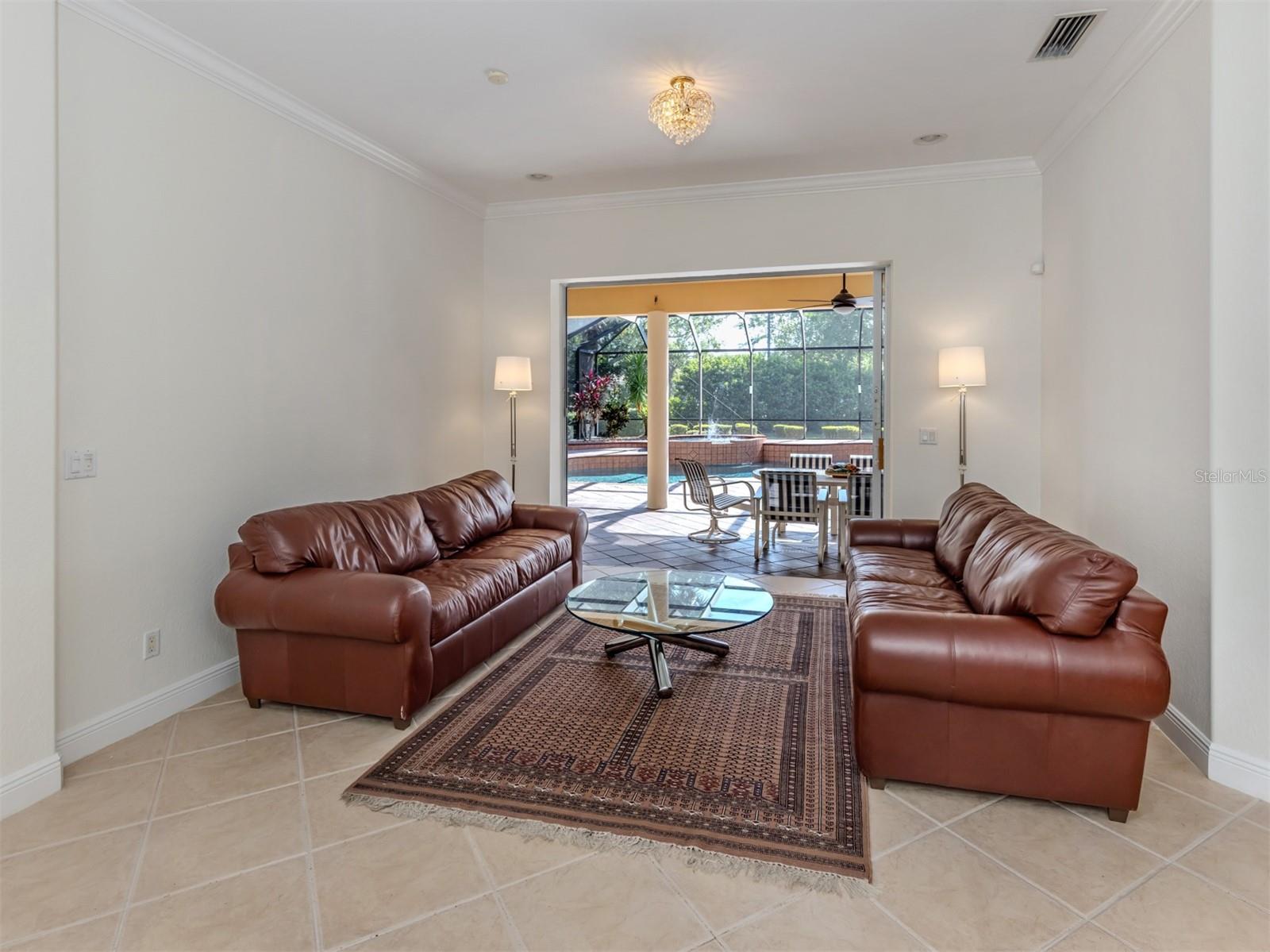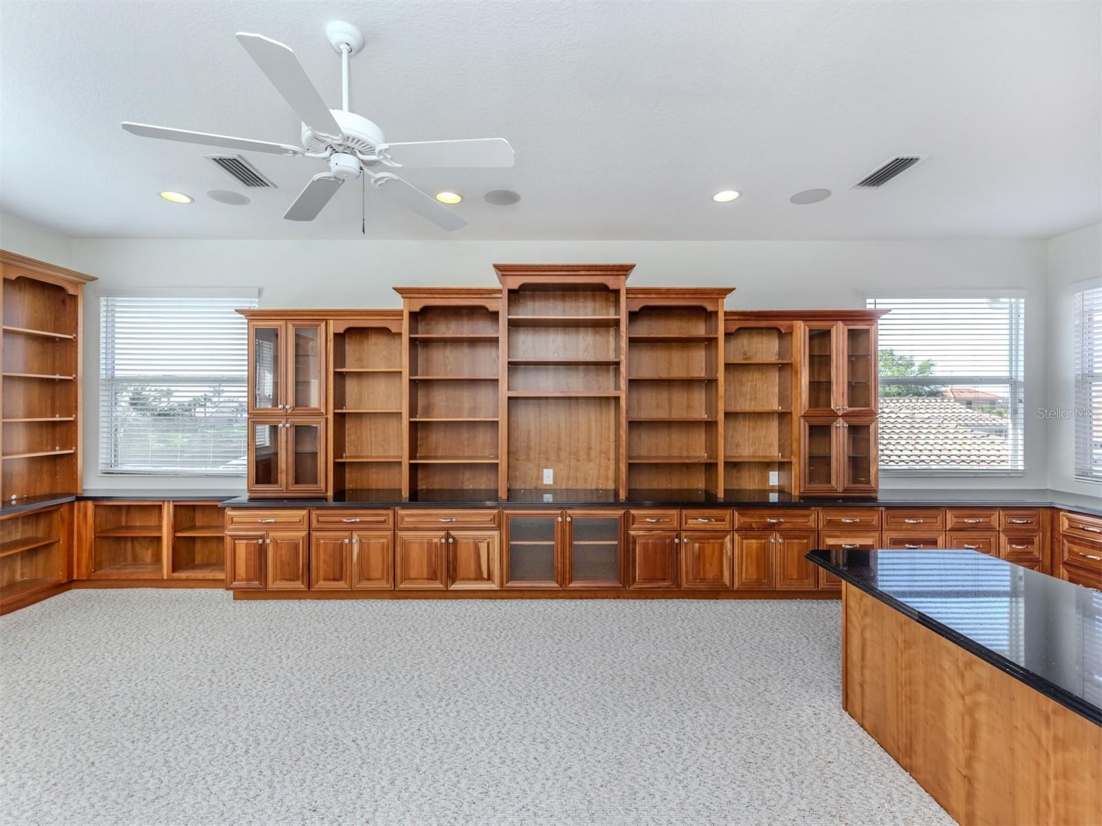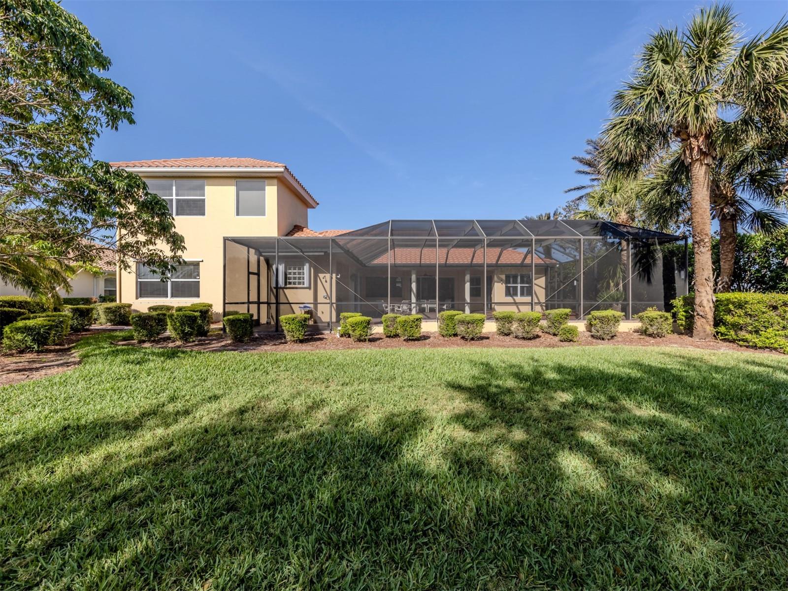 Leave the cares and stresses of the world behind as you step inside your personal sanctuary. Enter and let your eyes feast on the tropical haven that is your lanai. Wander past the living room and dining room to feel the warm embrace of the heart of the home. Whether it be entertaining or family life, this house is ideal for you. The kitchen is large with newer appliances, large breakfast room with views of pool. Three bedrooms and two baths on one side of home accommodate family and guests. There is a first-floor study next to the large primary bedroom which is a peaceful retreat from the cares of the world. It contains a beautiful bath, walk-in closets, and an intimate sitting room for reading or contemplation. Upstairs you will find an amazing room overlooking an equally amazing view. The room is decked out with built-in desk shelves, drawers, to be an incredible office for remote work, writing a best-selling novel, working out or converting to an artist studio, game room with pool table, or grandchildren's play room/bunk room. The lanai features a large pool with spa and high-top table for socializing, an outdoor shower and beautiful outdoor kitchen. The whole area is a private oasis with mature trees for privacy and a long lake view. All this in the popular Venetian Golf & River Club where you can take advantage of amenities right out your door. Walk to the restaurant and enjoy Chef Bryan's yummy offerings which include special dinners, prime rib nights, pasta nights, burger nights, and pizza nights, and more. Walk to tennis, pickleball, lap pool, water aerobics, tiki bar, gym, free exercise classes, many games like bridge, mahjong, hand and foot. You can even hop on to the exotic boardwalk through the jungle down to the Myakka River and the nature preserve from your backyard. It is all at your fingertips. Not to mention the proximity of this great subdivision to the highway, hospital, fire department, public beaches and the wonderful quaint town of Venice with its many restaurants, shops and theater. This is more than a house, it is a new way of life. The way life should be!