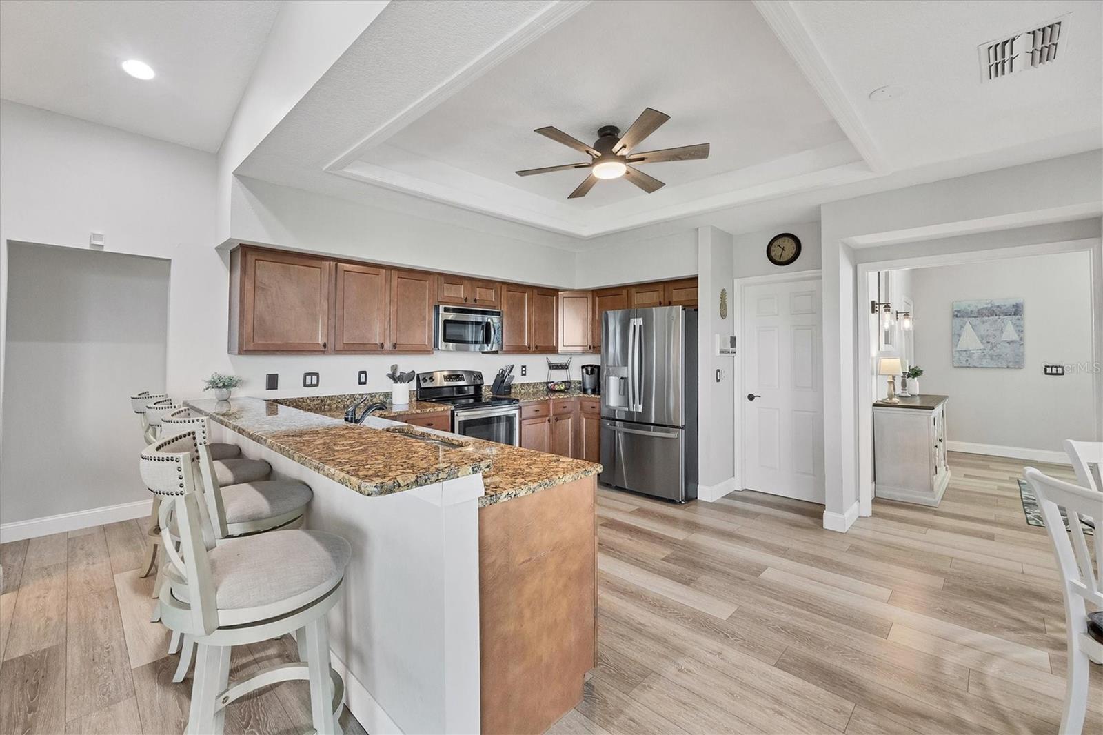 Welcome to this beautifully updated waterfront home that boasts some of the best views on Alligator Creek where you can enjoy breathtaking sunrises and spectacular sunsets from your enormous elevated balcony porch! Step inside to the oversized eat-in-kitchen/family room combo that also offers panoramic water views. This property has been appointed with many designer features including solid wood cabinetry, stone surface countertops, vaulted ceilings, freshly painted interior, custom closets and more. The primary bedroom and bath is a sanctuary with picturesque views as well as an updated, enormous bathroom with dual closets. On the opposite side of the home, two spacious secondary bedrooms with custom built in closets share another modern full bathroom. The ground level offers incredible storage as well as many possibilities for future use as it has been updated with Enduraflood waterproof drywall. This home is completely move in ready and to put your mind at ease, has been improved with the addition of ALL IMPACT windows and glass sliders. Additionally, the A/C 5 ton gas furnace, washing machine, refrigerator, 8 foot composite privacy fence and gorgeous woodlook aluminum impact garage doors have been added. The location of this property cannot be beat! Kayak or canoe from this home to the Intercoastal Waterway straight to the Gulf of Mexico. Living in this thriving neighborhood also allows you to join the South Venice Civic Association where you will enjoy the use the boat ramp and ferry services to a stunning private beach. Additionally, the property is located just a few short miles from historic downtown Venice where residents can explore a vibrant array of shops, restaurants, parks, and beaches. The central location of this home ensures easy access to I75, hospitals, shopping centers, emergency services, downtown WELLEN PARK and the CoolToday stadium, home of the Braves' spring training. A short drive takes you to the South Venice Beach Ferry, Lemon Bay Preserve, Venice Fishing Pier, Caspersen Beach, Manasota Key Beach and Blind Pass Beach. Schedule your private tour today and envision the lifestyle that awaits you in this meticulously crafted residence.