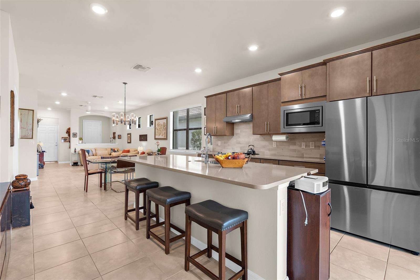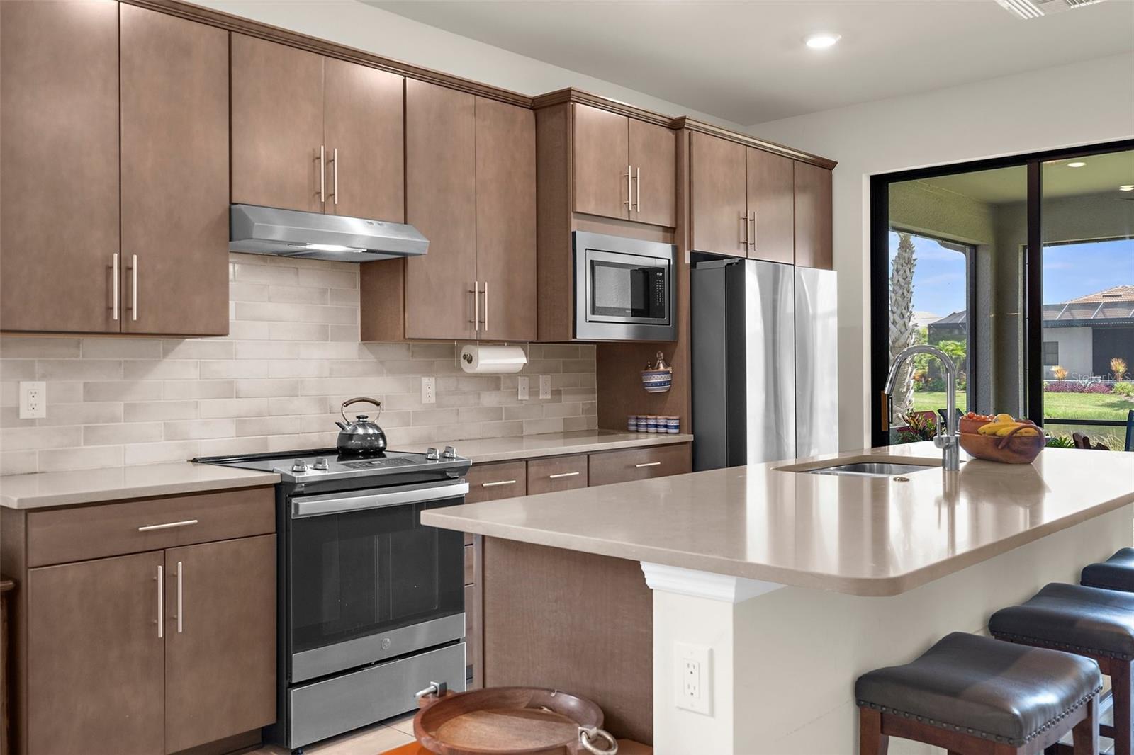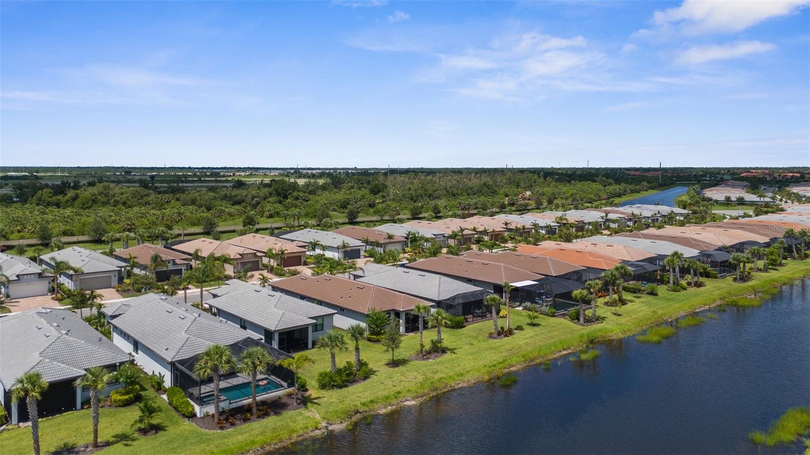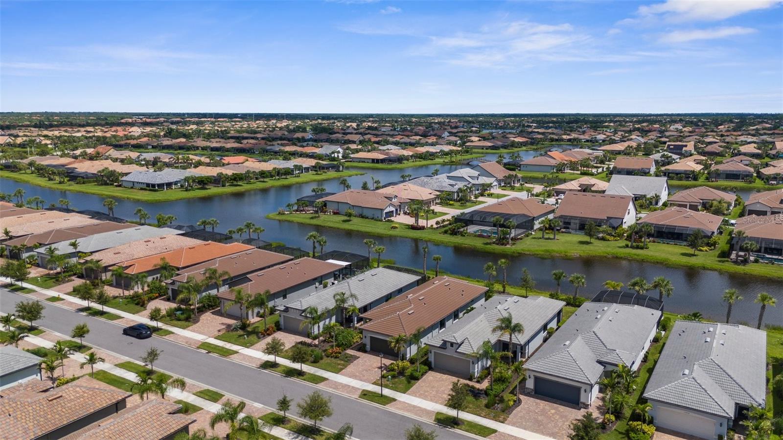 Furnishings have all been removed-easy to picture your own decor! WATER VIEW! Step into comfort and style in this beautifully designed 3-bedroom, 2-bath 1,575sf single family home with bright, open-concept living perfect for relaxing or entertaining. Move outdoors to your spacious covered lanai, positioned along one of IslandWalk's scenic waterways--an ideal spot to savor breathtaking SUNRISES, dazzling SUNSETS, thrilling rocket launches, and festive fireworks, all from the comfort of home. This may be the only one in Islandwalk featuring the sleek clean lines of flat panel cabinetry, set apart with a modern flair. The Maple Latte soft neutral tones paired with QUARTZ COUNTERTOPS really give a chic look to the kitchen. What everyone loves about this home design is the kitchen! So much room for entertaining with that HUGE ISLAND as a focal point. Additional features include modern ceiling fans that draw the eye upward, accentuating the home's tall ceilings. With blinds on all windows, no need for the expense of purchasing window treatments. For ease of use, you will find hurricane accordion shutters on all windows and sliding door. Not found often - a WATER SOFTENER SYSTEM, gentle on clothes and appliances. FLEX ROOM with closet and french doors - ideal as a bedroom, office or den. You will have the luxury of extra space with a DEEPER GARAGE than found in most homes this size. Neutral tile flooring throughout with carpet in the primary and one guest bedroom. Both bathrooms have coastal white cabinetry with the quartz countertop - same as kitchen. Islandwalk is renowned as one of VENICE'S largest and MOST DESIRED communities. With a full-time activity director, numerous events, clubs and activities, residents enjoy an active and social lifestyle. The community boasts 2 clubhouses, an event center, 2 resort-style pools, a lap pool, 12 pickleball courts, Har Tru tennis courts, dog park, playground, basketball court, miles of nature/biking trails. Venetian bridges and scenic water views complete this picturesque resort lifestyle. One of the great advantages of Islandwalk is that it doesn't require flood insurance and the entire community is maintenance-assisted. The Atlanta Braves Spring Training Stadium is just a short bike ride away, providing year-round events and activities for more than just sports enthusiasts. Another convenience is the completion of the new Downtown Wellen: Publix supermarket, restaurants, coffee places, shopping options, gas station and more! All of these amenities are just a short street-legal golf cart ride away. What are you waiting for? ENJOY the FLORIDA sunshine! Isn't it time to live the carefree lifestyle you've always dreamed of?