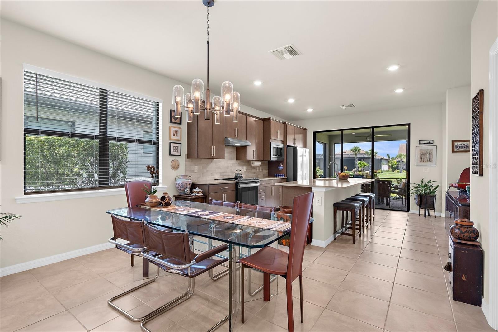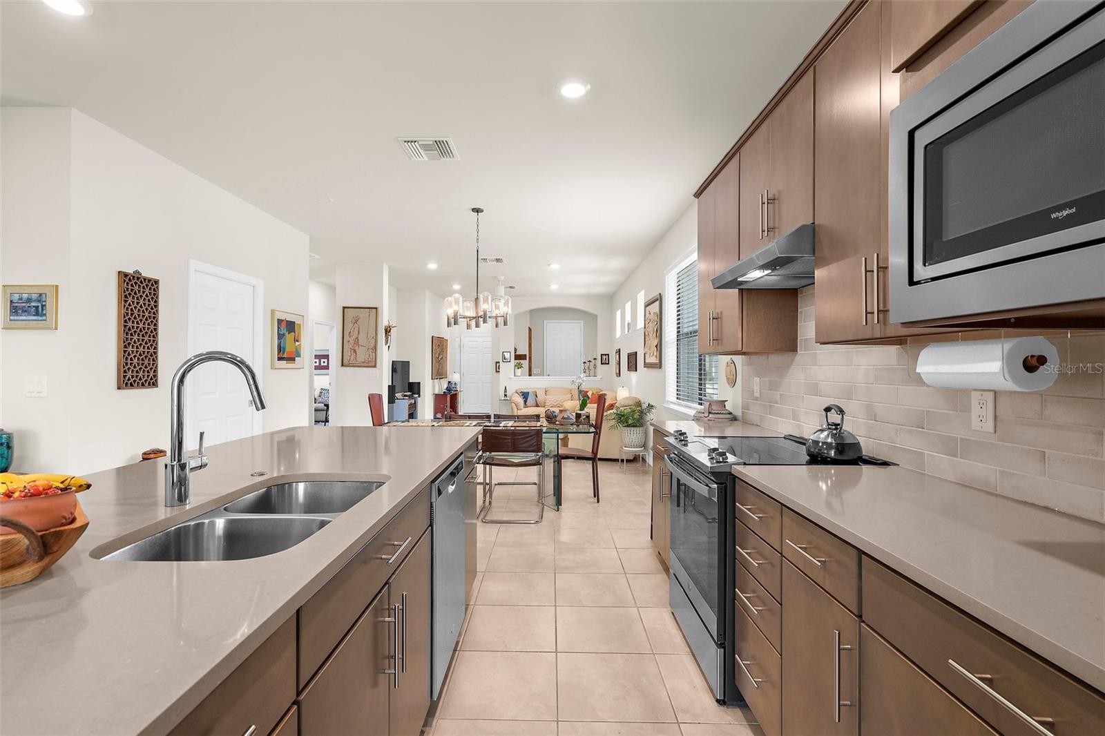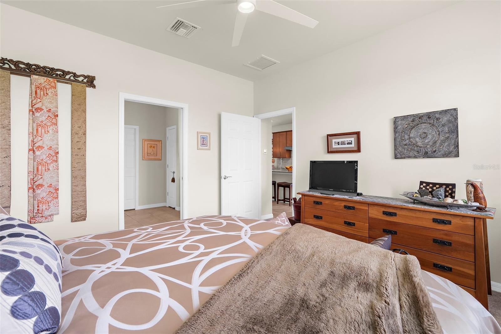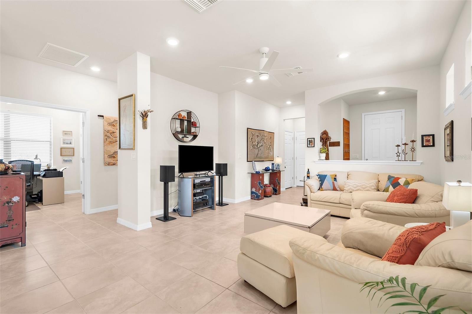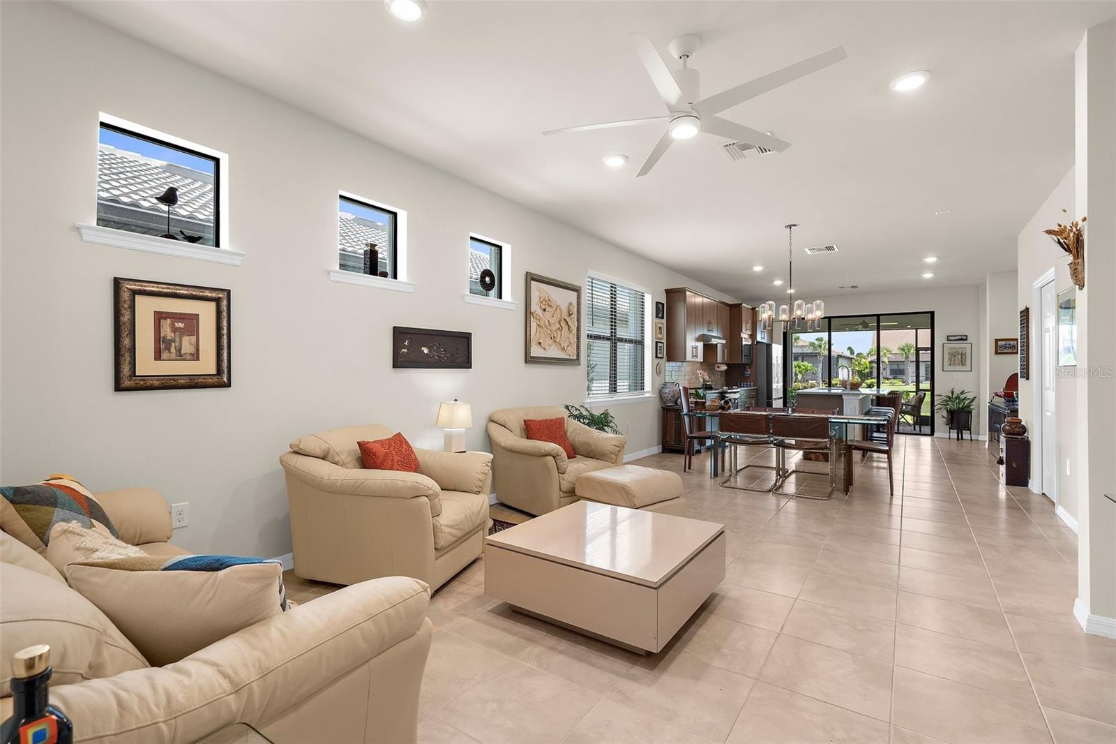 Furnishings have all been removed-easy to picture your own decor! WATER VIEW! Step into comfort and style in this beautifully designed 3-bedroom, 2-bath 1,575sf single family home with bright, open-concept living perfect for relaxing or entertaining. Move outdoors to your spacious covered lanai, positioned along one of IslandWalk's scenic waterways--an ideal spot to savor breathtaking SUNRISES, dazzling SUNSETS, thrilling rocket launches, and festive fireworks, all from the comfort of home. This may be the only one in Islandwalk featuring the sleek clean lines of flat panel cabinetry, set apart with a modern flair. The Maple Latte soft neutral tones paired with QUARTZ COUNTERTOPS really give a chic look to the kitchen. What everyone loves about this home design is the kitchen! So much room for entertaining with that HUGE ISLAND as a focal point. Additional features include modern ceiling fans that draw the eye upward, accentuating the home's tall ceilings. With blinds on all windows, no need for the expense of purchasing window treatments. For ease of use, you will find hurricane accordion shutters on all windows and sliding door. Not found often - a WATER SOFTENER SYSTEM, gentle on clothes and appliances. FLEX ROOM with closet and french doors - ideal as a bedroom, office or den. You will have the luxury of extra space with a DEEPER GARAGE than found in most homes this size. Neutral tile flooring throughout with carpet in the primary and one guest bedroom. Both bathrooms have coastal white cabinetry with the quartz countertop - same as kitchen. Islandwalk is renowned as one of VENICE'S largest and MOST DESIRED communities. With a full-time activity director, numerous events, clubs and activities, residents enjoy an active and social lifestyle. The community boasts 2 clubhouses, an event center, 2 resort-style pools, a lap pool, 12 pickleball courts, Har Tru tennis courts, dog park, playground, basketball court, miles of nature/biking trails. Venetian bridges and scenic water views complete this picturesque resort lifestyle. One of the great advantages of Islandwalk is that it doesn't require flood insurance and the entire community is maintenance-assisted. The Atlanta Braves Spring Training Stadium is just a short bike ride away, providing year-round events and activities for more than just sports enthusiasts. Another convenience is the completion of the new Downtown Wellen: Publix supermarket, restaurants, coffee places, shopping options, gas station and more! All of these amenities are just a short street-legal golf cart ride away. What are you waiting for? ENJOY the FLORIDA sunshine! Isn't it time to live the carefree lifestyle you've always dreamed of?