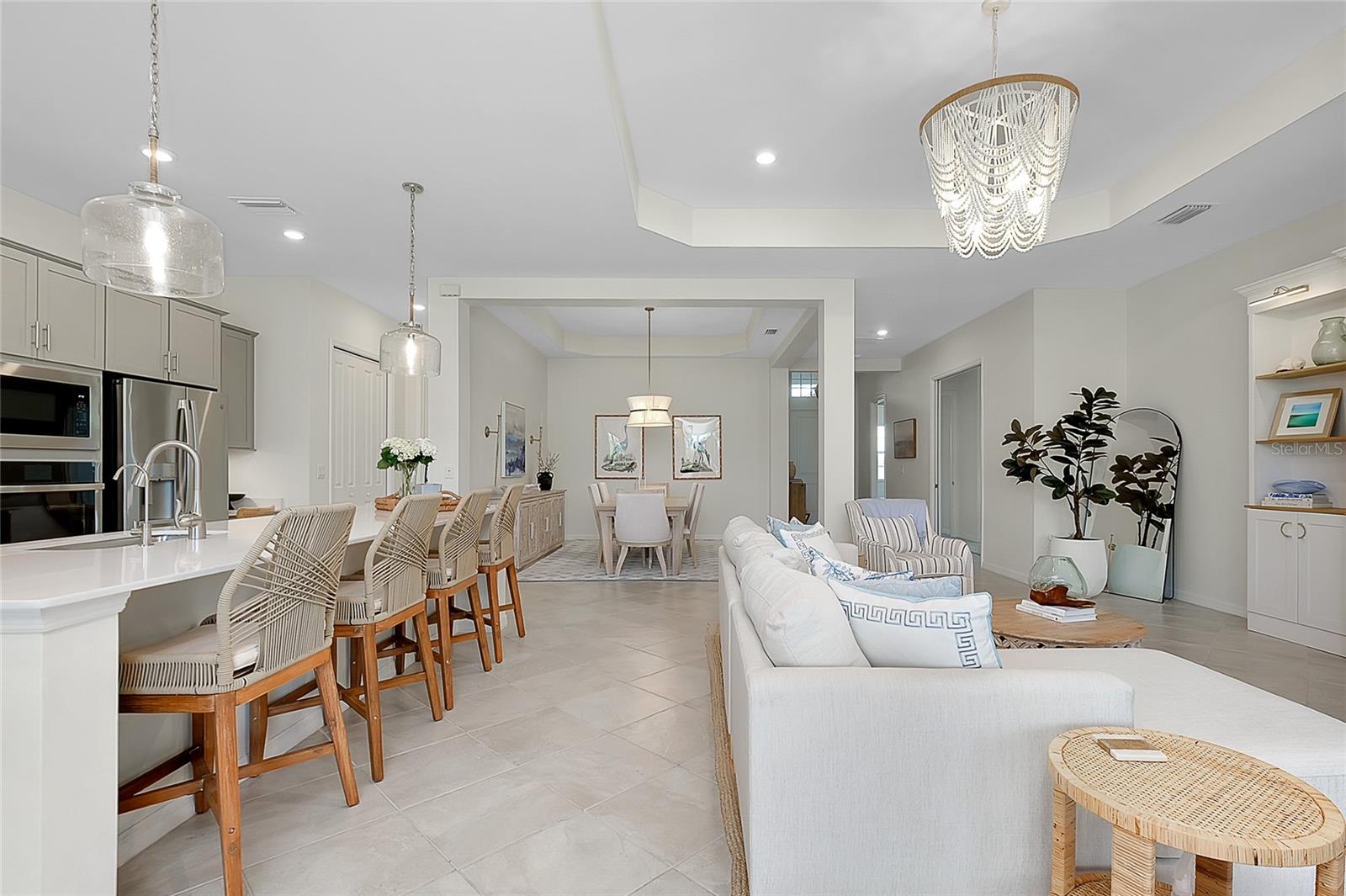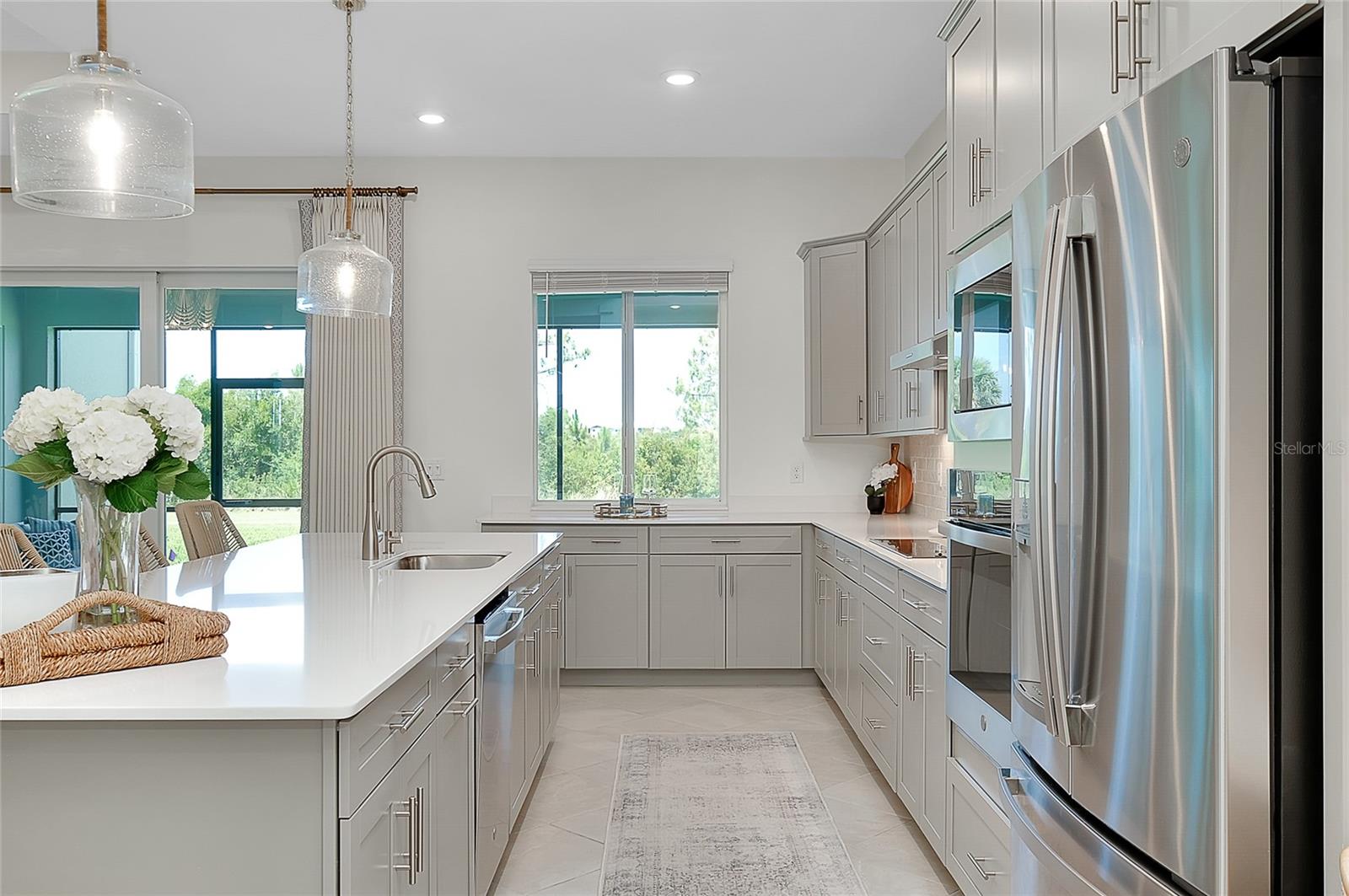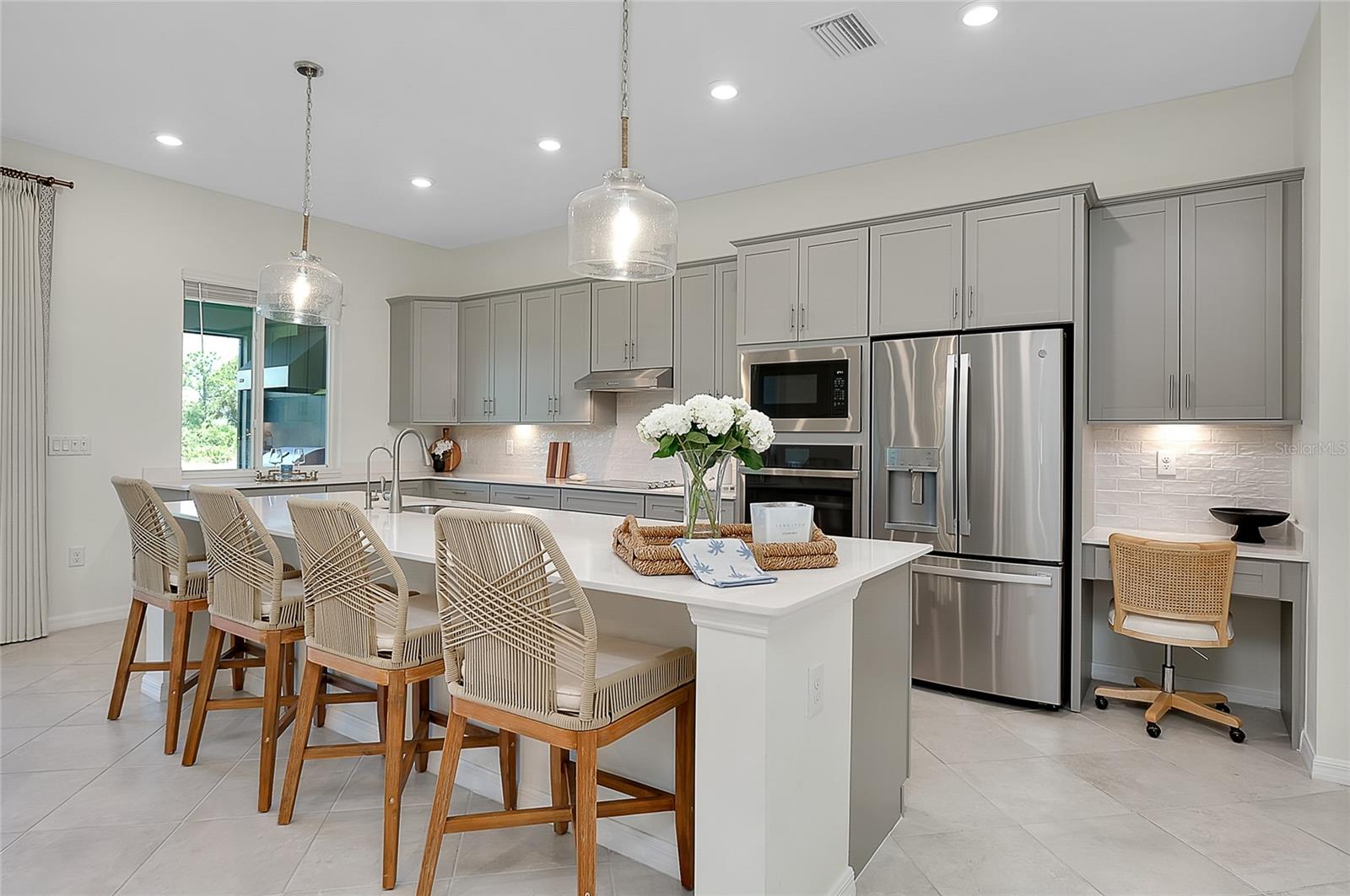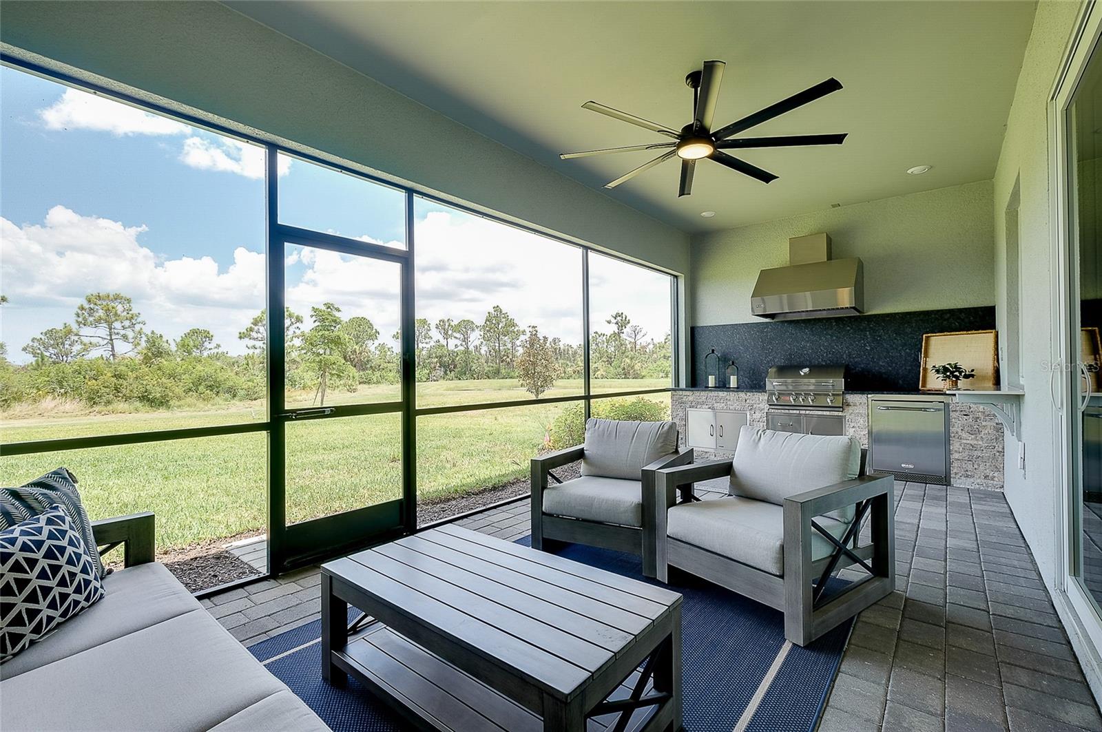 Welcome to this absolutely stunning home that includes full golf memberships-the builder is now sold out of single-family golf membership homes! Perfectly situated on a gorgeous private lot backing to a peaceful preserve, this home offers incredible sunset views from the lanai and is designed for both relaxation and entertaining. The lanai features an outdoor kitchen that has a built-in grill and refrigerator, plus a unique walk-up window bar from the indoor kitchen to the lanai, making hosting effortless and fun. Step inside and you will love the light and bright interior with plenty of windows, large kitchen with a beautiful quartz countertop island, high ceilings, decorative trays and an open split floor plan that ensures you and your guest privacy. The great room and primary bedroom both feature sliding glass doors that lead out to the spacious lanai, seamlessly blending indoor and outdoor living. Additional special features include beautiful custom built-in cabinetry in the great room, built-in cabinets in laundry room with upgraded faucet, custom curtains, backsplash, decorative lighting and fans, hurricane impact windows and doors, reverse osmosis water system in kitchen, insulated garage door, rain gutters, and so much more! Located in Wellen Park's most sought-after gated golf community, residents enjoy an unbeatable lifestyle:golf, resort style pool, tiki bar, pickelball, clay tennis courts, bocce ball, fitness center, salon/spa, and a vibrant calendar of organized social events. Just a golf cart ride away is Cool Today Stadium (home of Brave's spring training), grocery store, and downtown Welllen Park for resturants and shopping. All of this and close to beautiful Florida beaches! This home is a must see! Schedule your showing today!