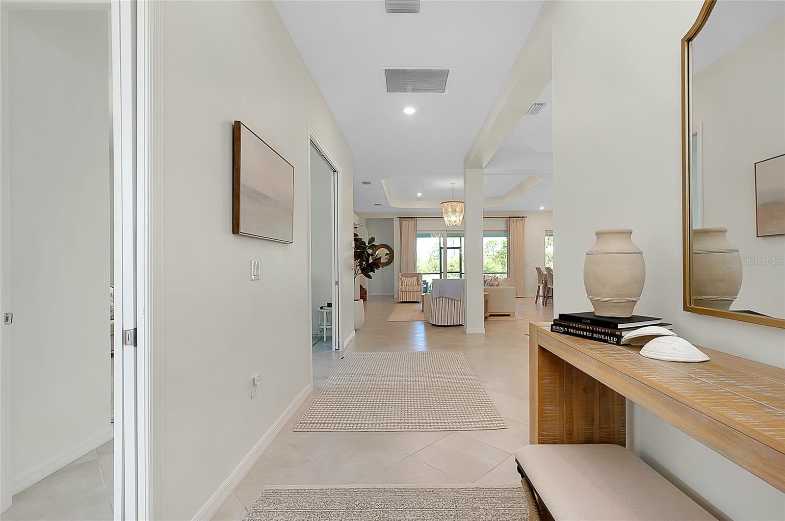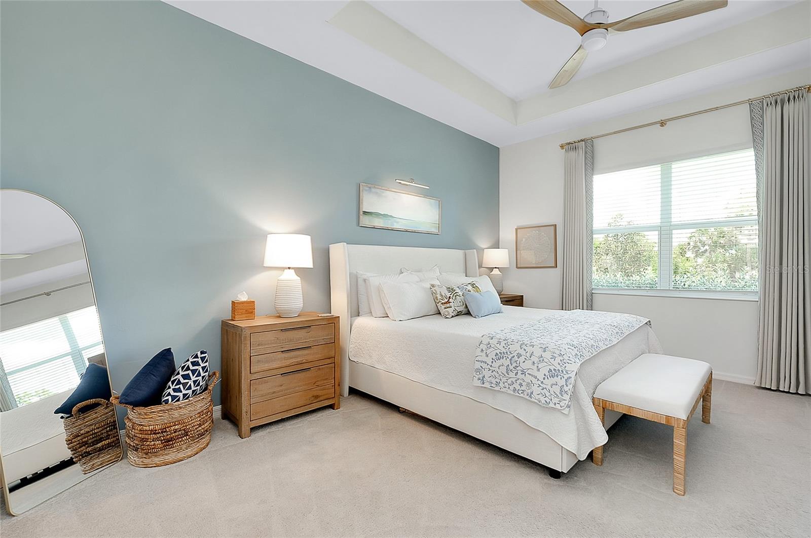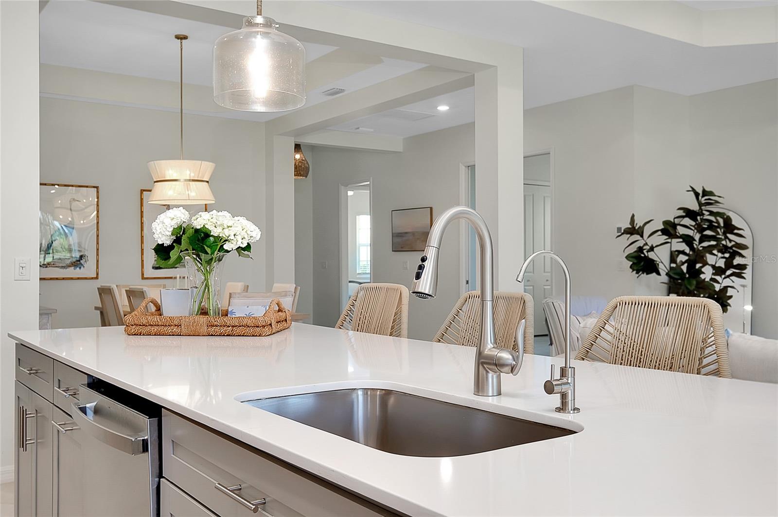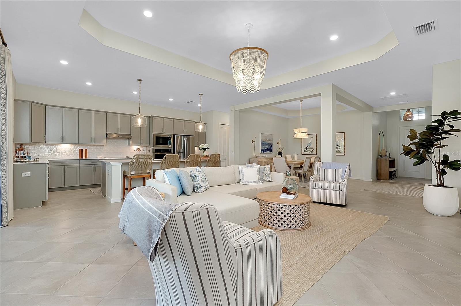Welcome to this absolutely stunning home that includes full golf memberships-the builder is now sold out of single-family golf membership homes! Perfectly situated on a gorgeous private lot backing to a peaceful preserve, this home offers incredible sunset views from the lanai and is designed for both relaxation and entertaining. The lanai features an outdoor kitchen that has a built-in grill and refrigerator, plus a unique walk-up window bar from the indoor kitchen to the lanai, making hosting effortless and fun. Step inside and you will love the light and bright interior with plenty of windows, large kitchen with a beautiful quartz countertop island, high ceilings, decorative trays and an open split floor plan that ensures you and your guest privacy. The great room and primary bedroom both feature sliding glass doors that lead out to the spacious lanai, seamlessly blending indoor and outdoor living. Additional special features include beautiful custom built-in cabinetry in the great room, built-in cabinets in laundry room with upgraded faucet, custom curtains, backsplash, decorative lighting and fans, hurricane impact windows and doors, reverse osmosis water system in kitchen, insulated garage door, rain gutters, and so much more! Located in Wellen Park's most sought-after gated golf community, residents enjoy an unbeatable lifestyle:golf, resort style pool, tiki bar, pickelball, clay tennis courts, bocce ball, fitness center, salon/spa, and a vibrant calendar of organized social events. Just a golf cart ride away is Cool Today Stadium (home of Brave's spring training), grocery store, and downtown Welllen Park for resturants and shopping. All of this and close to beautiful Florida beaches! This home is a must see! Schedule your showing today!