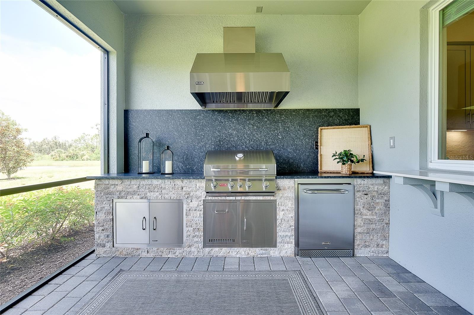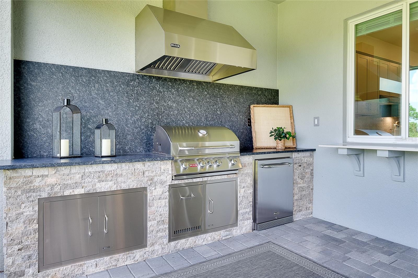 - Exterior: Outdoor Grill, Outdoor Kitchen, Rain Gutters, Sidewalk, Sliding Doors
