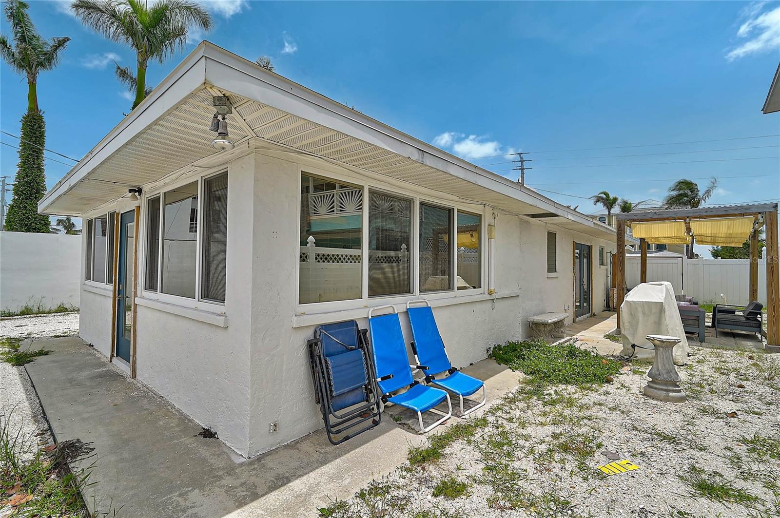 Just steps from the sand and surf, this Nokomis Beach retreat offers the perfect blend of coastal charm and modern comfort, with private deeded beach access to the Gulf of Mexico right at the end of your street. Inside, you'll find a thoughtfully updated beach cottage featuring uniform flooring throughout, two bedrooms, one and a half bathrooms, and a flexible den or office space. The primary bedroom offers private outdoor access, while French doors lead to a dreamy backyard escape complete with a pergola-covered patio, built-in grill, outdoor shower, and fully fenced yard made for barefoot mornings and sunset gatherings. Recent upgrades include a new roof (2020), HVAC mini-split systems (2023), and updated stainless steel appliances, making this home as practical as it is beautiful. When you are not relaxing at home or soaking up the sun at the beach. Beyond the front door, you're immersed in one of the most beloved coastal communities in the Sarasota area. Nokomis Beach and North Jetty Park are just around the corner, offering fishing spots, picnic areas, playgrounds, boat ramps, and unbeatable Gulf and Intracoastal views. Residents enjoy panoramic water scenes and scenic access to the Legacy Trail for biking, jogging, and wildlife watching. Whether you're seeking a full-time beach lifestyle, seasonal getaway, or investment opportunity, this is the kind of home that makes you slow down, breathe deep, and never want to leave. Please see 3D Tour and Video