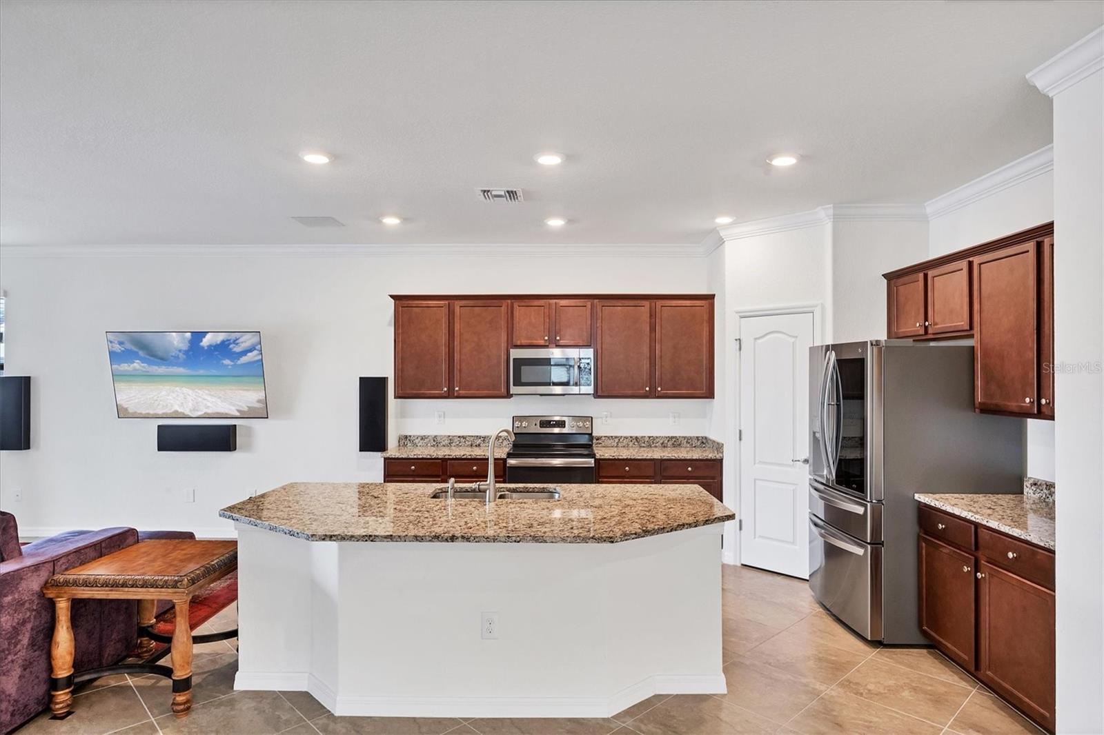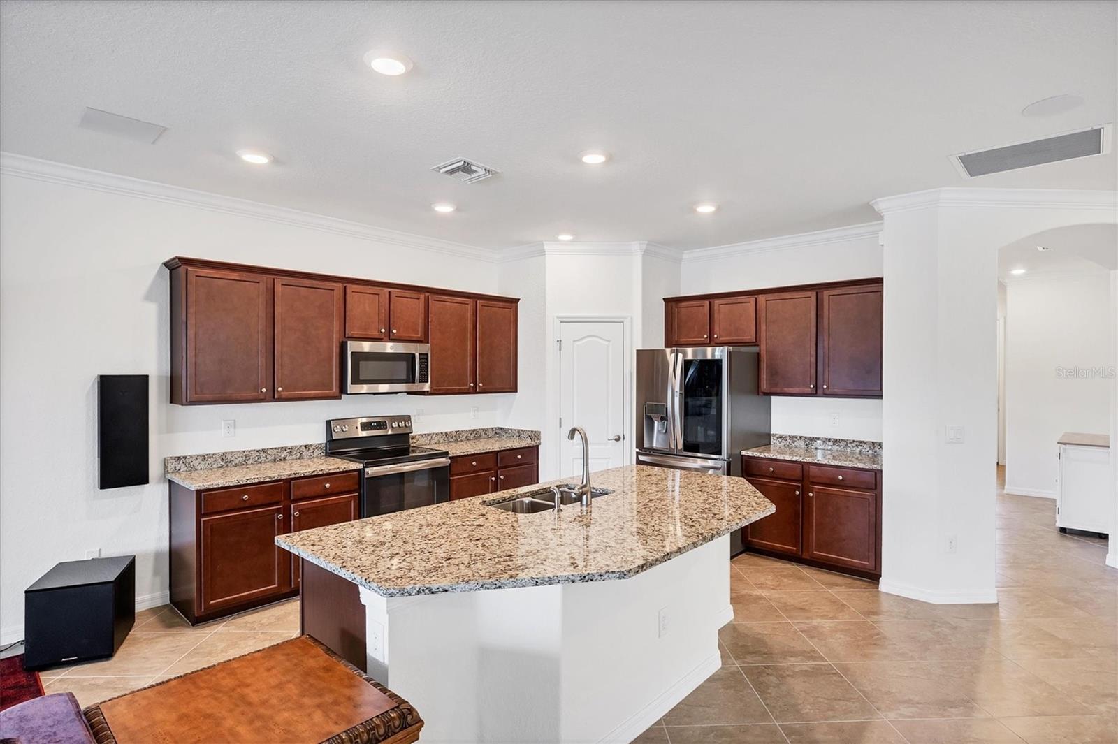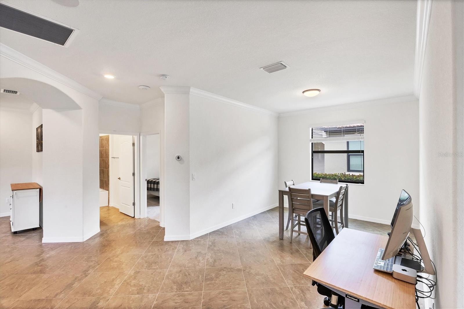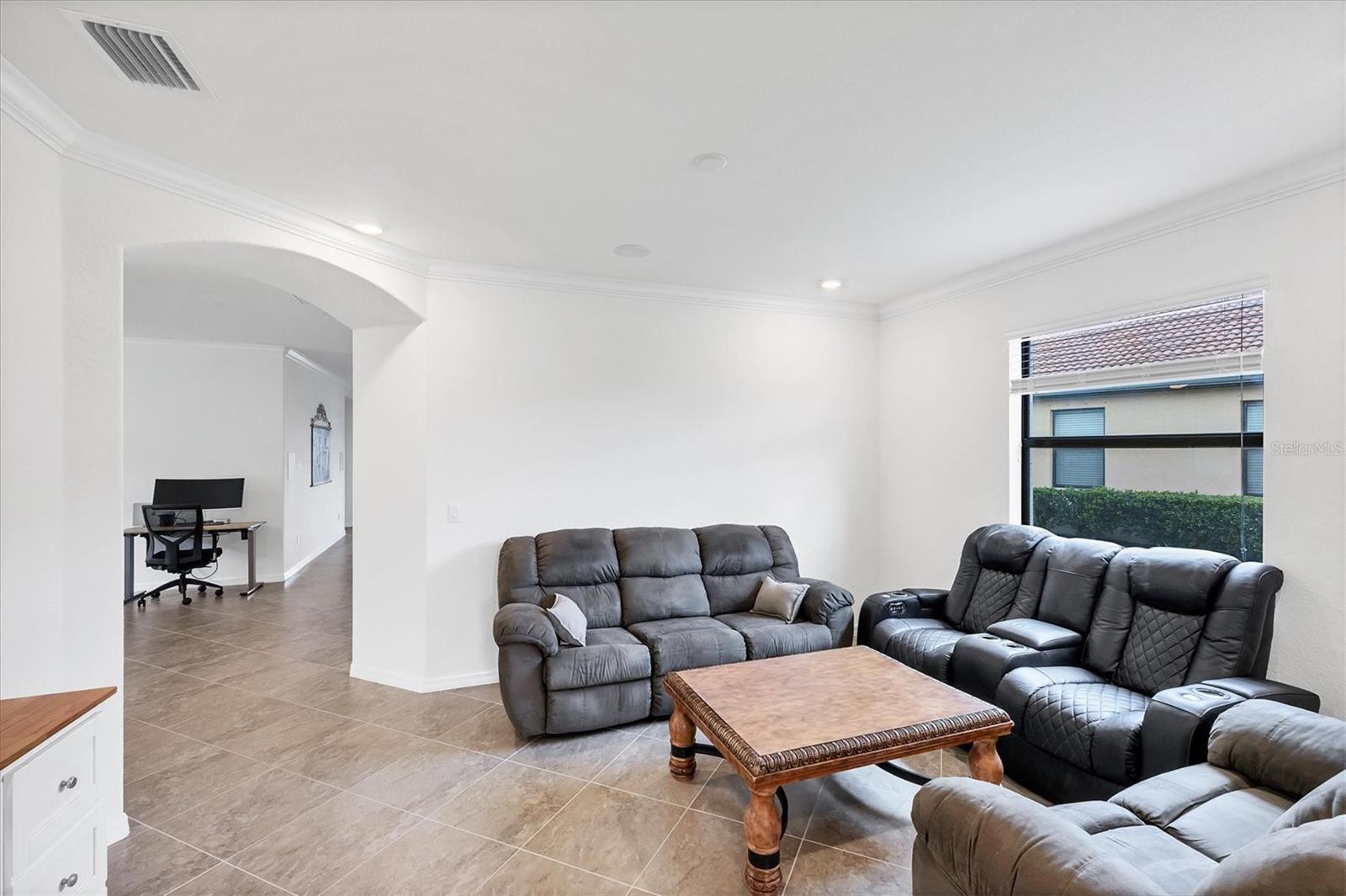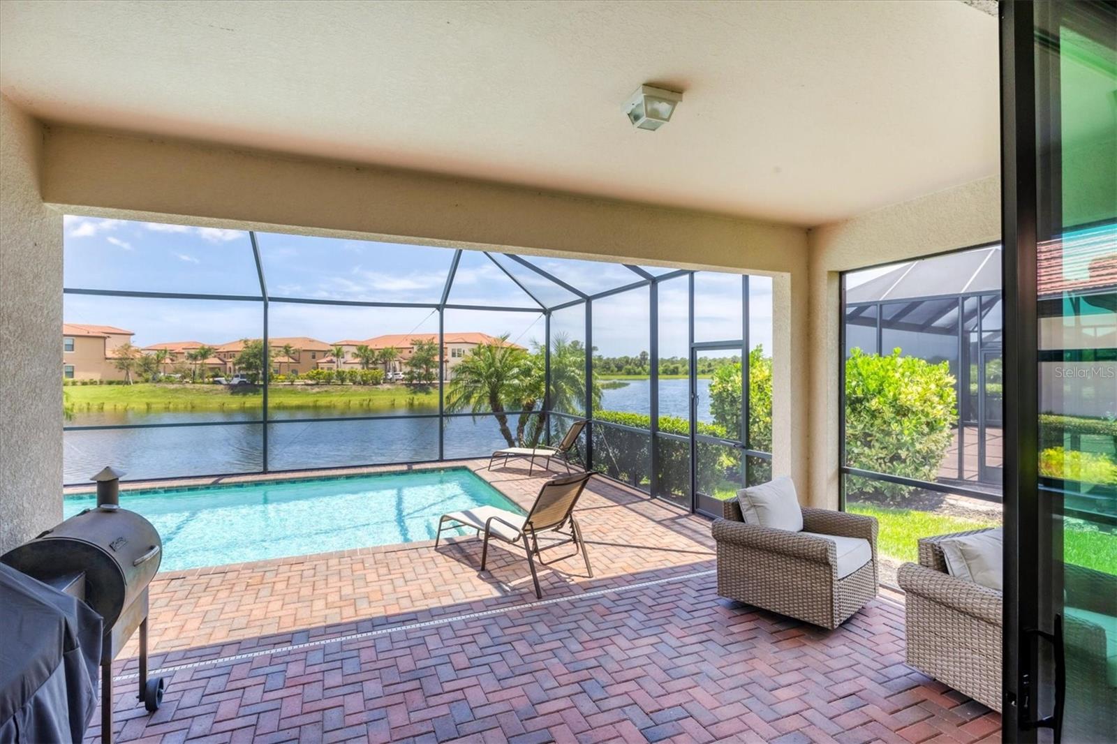 TRULY SPECTACULAR VIEWS!! Private pool and lanai overlooking lake views in all directions. SOUTHWEST EXPOSURE for sun all day long. PAVERED LANAI SURROUNDS SOLAR HEATED POOL. Looking for a little relaxation in the shade- sit on your front porch- a great place for reading a book and watching or engaging with the neighbors walking by. This Milan floor plan has 2BR/2BA and a SEPARATE FLEX ROOM that has multiple uses and can be whatever you prefer. Often used as an office space or den with a pull out sofa for extra guests. The large open great room is the heart of the home, combining living room, kitchen, and dining room areas together for cozy gathering or all out entertaining space. The whole home is enhanced with a Neutral, Warm decor, high ceilings, crown molding, and 8 foot doors. Gourmet kitchen offers GRANITE counters, STAINLESS STEEL appliances/upgraded refrigerator, extra recessed lighting, and Island perfect for eating breakfast or setting out hors d'oeuvres and wine. Tile flooring throughout the main rooms with carpets in the 2 bedrooms only. Spacious en suite master bedroom with 2 WALK IN CUSTOM BUILT closets. Master bath has dual sinks and walk in shower. Large Guest bedroom at other end of home for privacy. Separate laundry room with wash sink. HURRICANE SHUTTERS. Not in Florida to see it in person? Go to the 3D Walkthrough at : https://my.matterport.com/show/?m=heBGDXv4DTf Sarasota National is Venice's premier community, offering over 1,300 acres of preservation, conservation, lakes, and open spaces with breathtaking views. As an Audubon International Certified Sanctuary, it provides the perfect backdrop for the community's 18-hole championship golf course. Enjoy resort-style amenities, including a huge pool and spa, Tiki Bar, tennis courts, pickle ball, bocce courts, a 7000 sq. ft. fitness center, a 30,000 sq. ft. clubhouse with dining and incredible views, and a coffee lounge/library/card room/meeting place. Plus, there's a day spa for relaxation. The community is just minutes from the new Wellen Park shopping area and Atlanta Braves stadium, with Venice Beach and downtown Venice only a short drive away. Whether you enjoy dining, shopping, or outdoor activities, this location has it all. Live the Florida lifestyle and make every day feel like a vacation! Schedule your tour today! BE AWARE, hitting the "contact agent"button on Zillow or 3rd party websites will NOT take you to the person who has the house on the market. SEE THIS GREAT HOME TODAY and FIND YOUR FLORIDA LIFESTYLE!