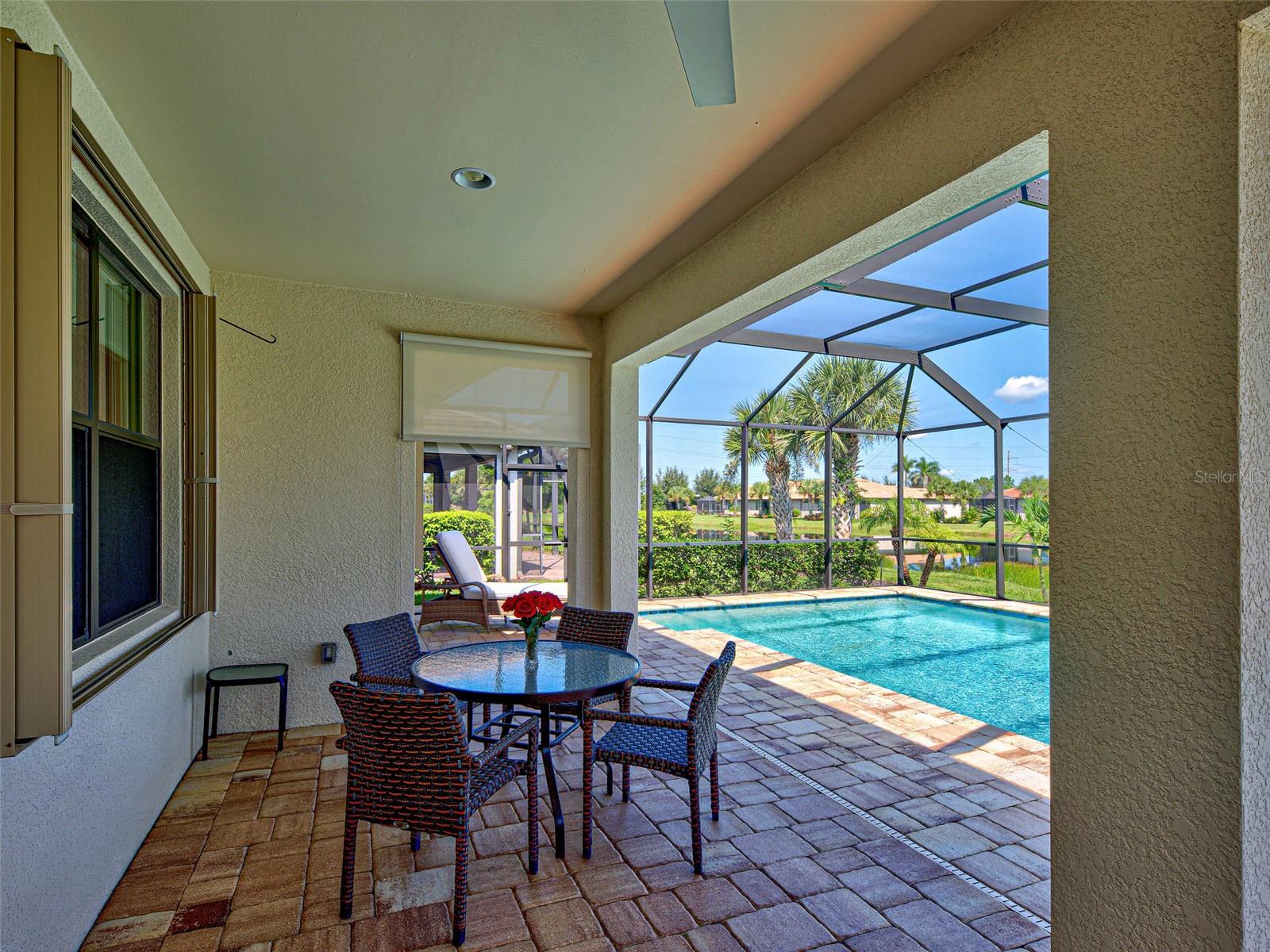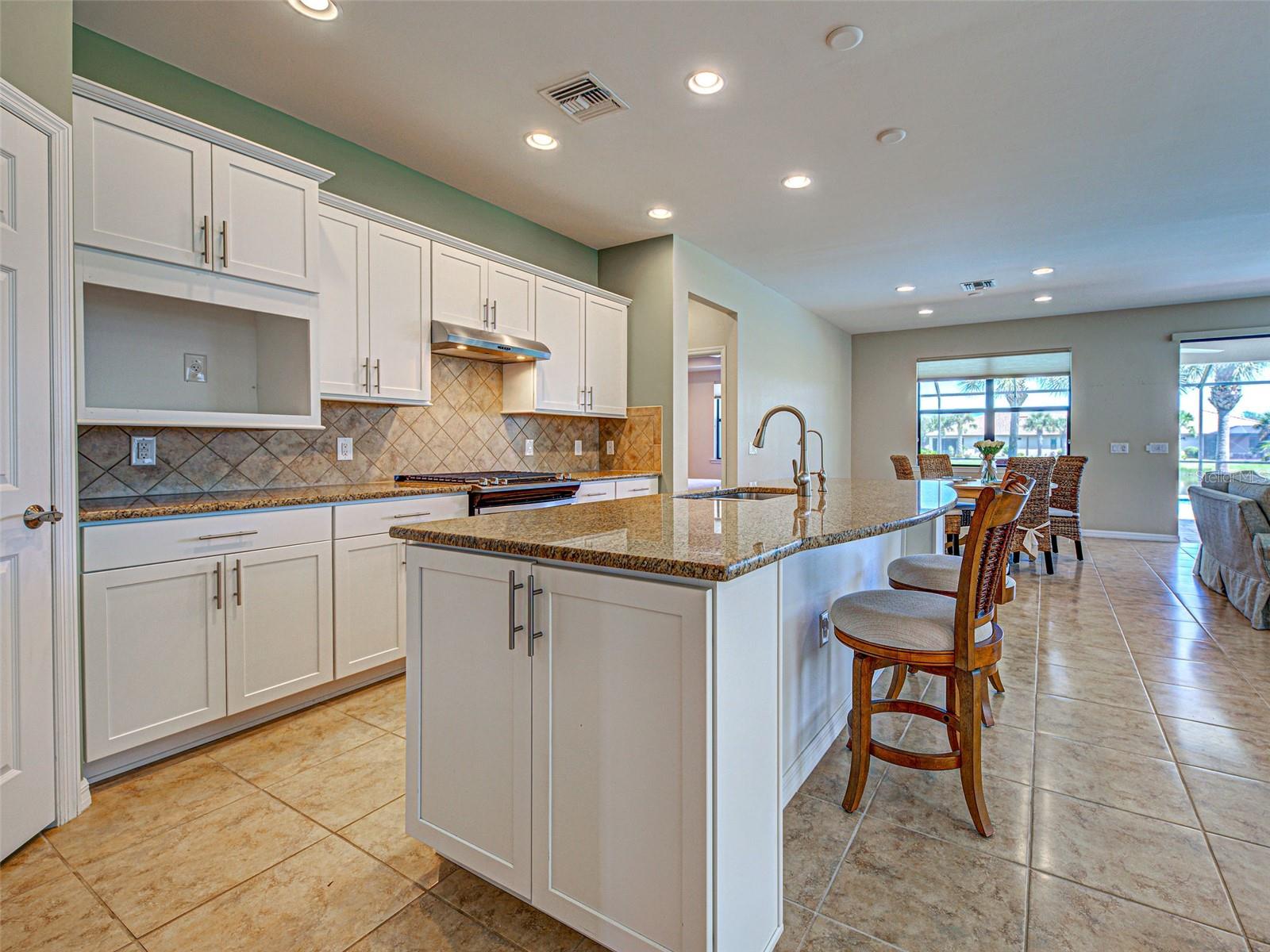 This gorgeous SUMMERWOOD model in ISLANDWALK offers an exceptional blend of luxury and comfort with thoughtful upgrades and EXPANSIVE INDOOR-OUTDOOR spaces designed for both relaxation and entertaining. The true showstopper is the OVERSIZED LANAI (40' x 34'), featuring a covered area (24.7' x 9.5'), under-air space (25' x 40'), and a CUSTOM WATERSCAPES HEATED SALTWATER lap-style POOL (16' x 35'), added in 2020, ideal for swimmers and year-round gatherings. Inside, the home features premium enhancements including a KINETICO WHOLE-HOUSE (WATER SOFTENER & FILTER), REVERSE OSMOSIS system, Hunter Douglas HONEYCOMB BLINDS on ALL windows, ADDED RECESSED LIGHTING THROUGHOUT, a RETRACTABLE SCREEN for the front door, CUSTOM SLIDER TREATMENTS, TILE flooring in main areas, and neutral tones that complement any dcor.The spacious kitchen includes a high-end GAS STOVE powered by a BURIED 120-GALLON PROPANE TANK, an uncommon upgrade in ISLANDWALK, where electric is standard. It also offers WHITE CABINETRY with pull-out drawers, a CUSTOM WALK-IN PANTRY, and generous counter space that flows into the dining area. From here, enjoy tranquil water views and abundant natural light. The open-concept OVERSIZED GREAT ROOM (31' x 12') is perfect for hosting, with two ceiling fans and triple sliders framing picturesque views of the POOL and glistening water.The PRIMARY SUITE features a TRAY CEILING, a generous walk-in closet, a large window, and an en suite bath with DUAL VANITIES, GRANITE COUNTERS, a GLASS-ENCLOSED WALK-IN SHOWER, and space for a makeup vanity. The GUEST BEDROOM, located on the opposite side for privacy, includes a built-in closet and ceiling fan, and is adjacent to a full bath with a BATHTUB, GRAB BARS, and its own LINEN CLOSET for added storage.A versatile FLEX ROOM with SOLID DOORS provides space for a third bedroom, home office, crafting, or exercise. The spacious, equipped LAUNDRY ROOM is well located. The immaculate GARAGE features EPOXY FLOORS, a UTILITY SINK, a bonus REFRIGERATOR, and TANDEM SPACE ideal for a workshop or golf cart storage.The LANAI is truly the heart of the home, complete with a CEILING FAN and CUSTOM SUN SHADE to enhance comfort during warmer days, offering ample room to enjoy the FLORIDA lifestyle year-round. ACCORDION SHUTTERS THROUGHOUT THE HOME provide peace of mind during storm events. Additional improvements include a WIDENED DRIVEWAY, TWO CURB RADIUSES for easier access, and a WALKWAY TO THE water spigot. Some furniture can stay, making your move-in even easier.Located on a tranquil street just blocks from the CLUBHOUSE, this home also benefits from future connectivity to MANASOTA BEACH ROAD (projected completion August 2026), enhancing its already excellent accessibility. Living in ISLANDWALK means enjoying a vibrant, amenity-rich community with GEOTHERMAL POOLS, HAR-TRU TENNIS COURTS, PICKLEBALL, BOCCE BALL, LAP POOLS, SPAS, PLAYGROUNDS, BASKETBALL COURTS, a DOG PARK, TWO STATE-OF-THE-ART FITNESS CENTERS, a 24-HOUR STAFFED GATE, ON-SITE HOA STAFF, OUTDOOR PAVILIONS with BBQ GRILLS, a LIBRARY, and more. GOLF CARTS are permitted throughout the community and can be taken outside if registered. Residents also enjoy exclusive access through a PRIVATE BACK GATE to DOWNTOWN WELLEN PARK, home to PUBLIX, the ATLANTA BRAVES BALLPARK, RESTAURANTS, and ENTERTAINMENT. With I-75 just four miles away, pristine GULF BEACHES, AIRPORTS, historic VENICE ISLAND, and cultural events are all within easy reach.