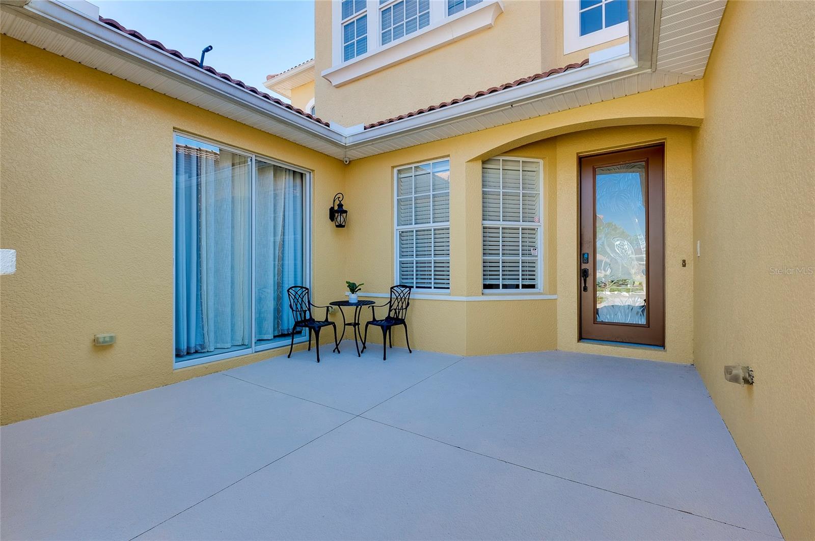 - Exterior: Courtyard, Garden, Lighting, Private Mailbox, Rain Gutters, Sidewalk, Sliding Doors, Storage, Tennis Court(s)