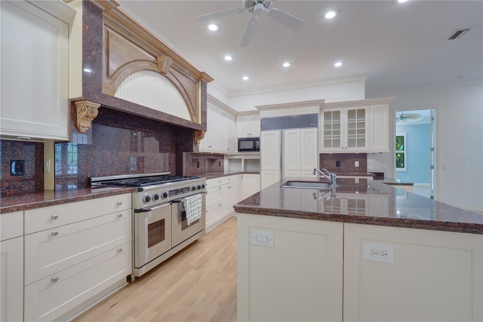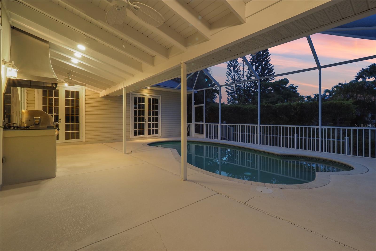 You've just found the home you've been searching for. Thoughtfully designed and meticulously built, this stunning custom residence offers an open floor plan, premium finishes, and a wealth of high-end features--all set on a beautiful lakefront lot.Built with durable Ytong Block and boasting Impact Windows & Exterior Doors, this home combines elegance with peace of mind. Additional construction upgrades include Icynene Insulation, a Standing Seam Metal Roof, and plaster crown molding throughout. The home is equipped with a whole-house generator, wood floors and 10-foot ceilings in every room, and plantation shutters for timeless charm.The heart of the home features a true chef's kitchen with abundant counter space and custom cabinetry. Highlights include:Natural gas 6-burner Dacor stove with double ovens and large exhaust hood.Sub-Zero refrigerator and freezer.Built-in ice maker.Bosch dishwasher (new in June 2025).Natural gas powers the kitchen range, outdoor Altima grill, water heater, pool heater, and fireplace.Each bedroom has its own full bathroom for comfort and privacy:Primary Suite: Lake and pool views, French doors to the pool area, jetted tub, separate shower, bidet, and a large walk-in closet with custom shelving.Second Bedroom: French doors to the pool with lake views.Third Bedroom (Upstairs): Spacious suite with its own living area, compact kitchen, and full bath--ideal for guests, extended family, or a caregiver.The open living area features a cozy fireplace, custom built-ins, and French doors leading to the pool and lakefront. The private office/den includes built-in cabinetry and French doors for quiet work-from-home space.Enjoy Florida's outdoor lifestyle with:Screened front porch (8' x 32').Screened pool area with large covered porch (9' x 32'), Altima natural gas grill, and stainless-steel exhaust hood.Heated pool (new pump in March 2025).Deck/walkway leading to a private dock overlooking the lake--home to tilapia and abundant wildlife.Additional Features: Laundry room with sink, cabinetry, and extra pantry space.Newer A/C (May 2024) and water heater (Sept 2021).Conveniently located between Sarasota and Venice with easy access to beaches, I-75, shopping, and dining.This home blends quality craftsmanship, luxury amenities, and a serene lakefront setting--perfect for both everyday living and entertaining.