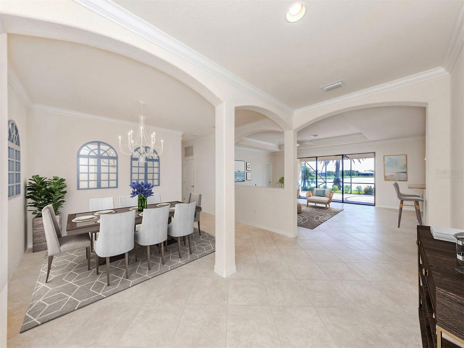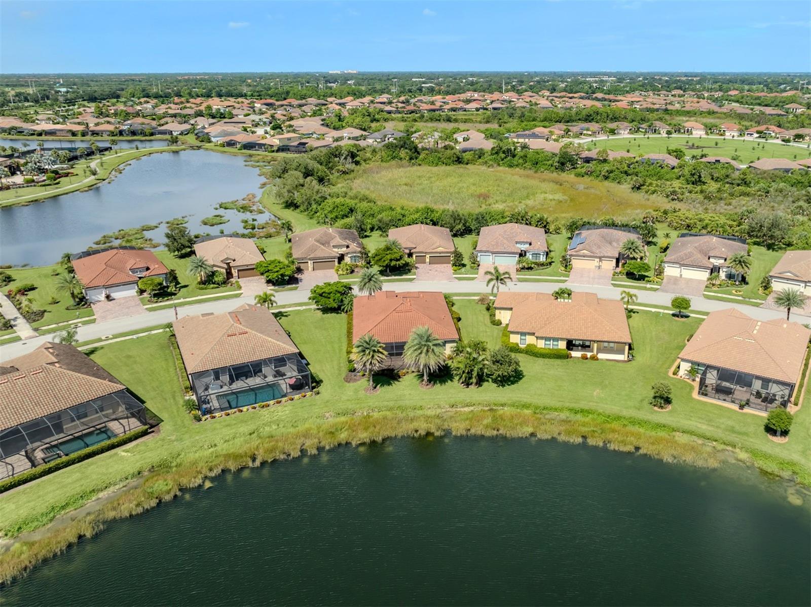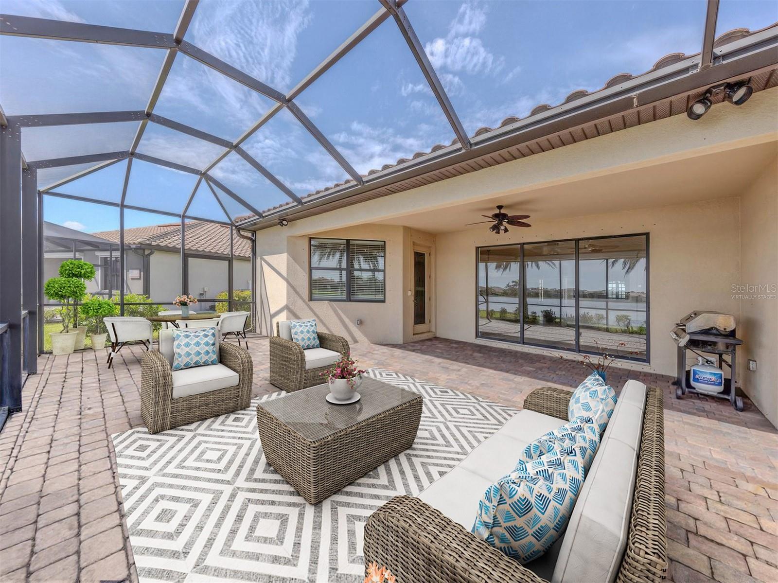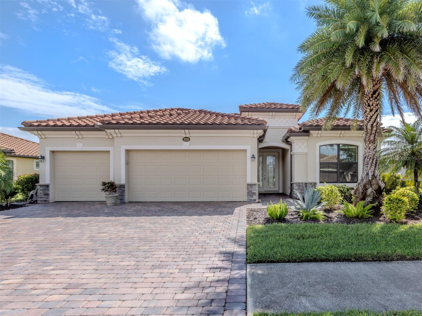 One or more photo(s) has been virtually staged. Experience refined living in this exquisite four-bedroom, three-bath residence in the coveted gated community of Gran Paradiso, where timeless elegance and modern design come together effortlessly. The primary suite is a sanctuary with serene lake views, a tray ceiling and a beautifully designed en-suite bath that promises relaxation at every turn. A secondary bedroom suite, complete with its own en-suite bath, offers the perfect private quarters for guests, ensuring comfort and style for all. The additional bedrooms are thoughtfully designed to accommodate both family and flexibility. At the heart of the home, the open kitchen boasts granite countertops, recessed lighting and a picturesque breakfast nook overlooking the lake, while the living room's crown molding and tray ceiling add architectural charm. For unmatched comfort a state-of-the-art HVAC system, newly installed in November 2024, delivers year-round efficiency and cool, refreshing living--a feature that blends luxury with peace of mind to elevate everyday living. Step outside to the extended lanai and savor the peaceful water views that create the ultimate setting for entertaining or unwinding. A dedicated laundry room, a spacious three-car garage and the added peace of mind of hurricane shutters complete this exceptional home. Beyond your doorstep, Gran Paradiso offers a vibrant, resort-style lifestyle with a spectacular pool, tennis and pickleball courts, a clubhouse with a library, fitness center, scenic trails and endless social activities. Perfectly located just minutes to upscale dining, boutique shopping and lively entertainment close at hand. Live the life you've always imagined--stylish, effortless and unforgettable. Schedule your private showing today and start living the Gran Paradiso lifestyle--sunshine by the pool, pickleball with friends and a dream home that makes every day feel like vacation.