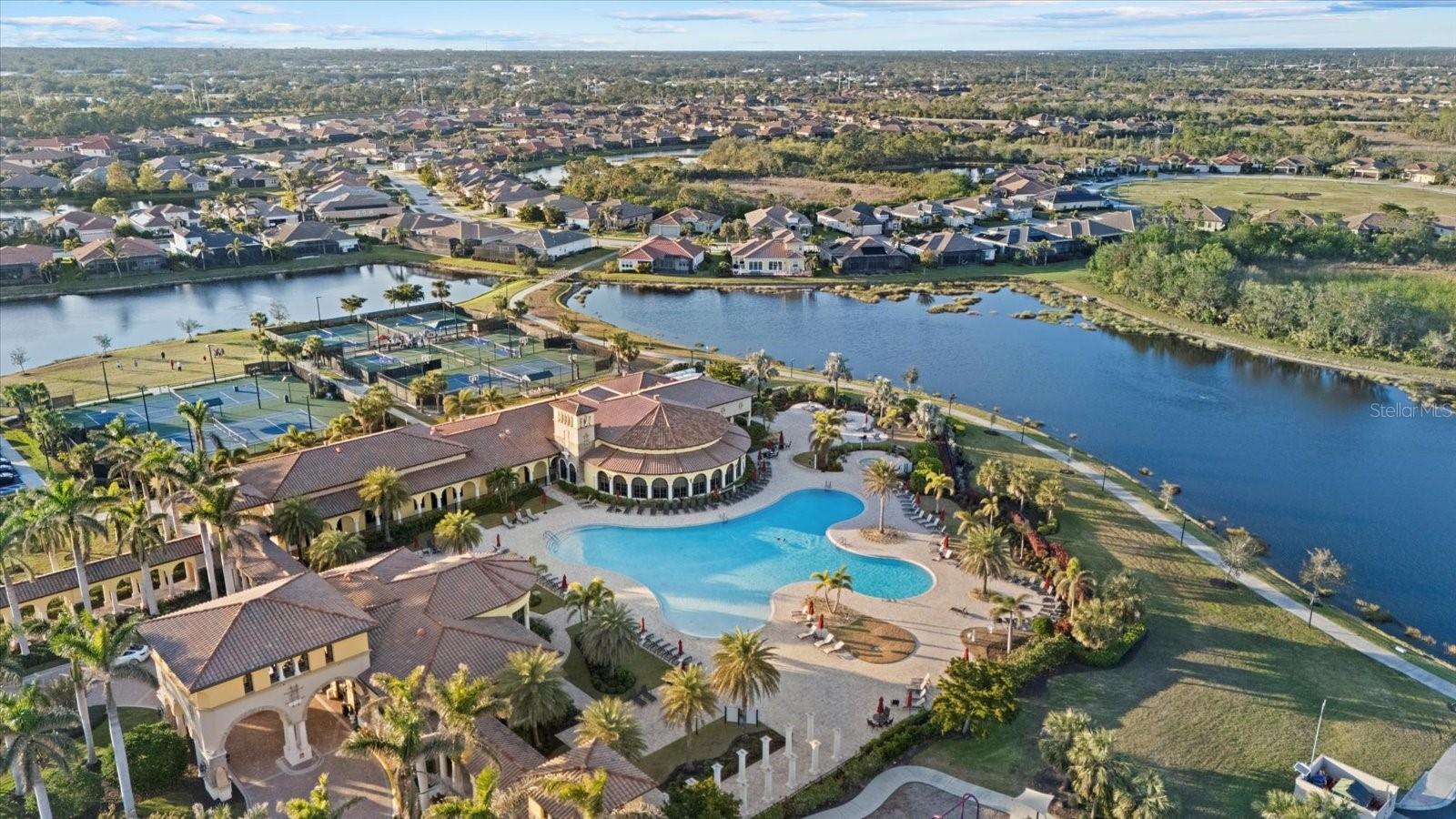 One or more photo(s) has been virtually staged. WATERFRONT POOL HOME IN GRAN PARADISO! PRICED FOR QUICK SALE Welcome to your stunning 4-bedroom, 3-bathroom Trevi model offering over 2,000 sq.ft. of elegant living space built in 2017. Located in the highly desirable gated community of Gran Paradiso in Wellen Park, Venice, Florida, this home features luxury upgrades, a private heated swimming pool, and tranquil waterfront preserve views--perfect for enjoying the Florida lifestyle year-round.Inside, discover granite and quartz countertops, an extended kitchen island, upgraded backsplash, wainscoting trim, custom window cornices, and beautiful tile flooring. The gourmet kitchen includes stainless steel appliances, a walk-in pantry, and bar seating ideal for entertaining. The primary suite features custom his-and-her closets and a spa-style bath with garden tub and glass shower.Step outside to your private lanai oasis with Italian travertine pavers, therapy jet pool, custom lighting. Custom designed lanai enclosure engineered for strength, durability, and unobstructed views. The structure features oversized 8" x 8" x 40' overhead beams spanning the pool area, with a single continuous beam positioned to preserve uninterrupted pond views. Surrounding the lanai are substantial 6" x 6" columns, internally reinforced with steel cabling for added stability. The entire enclosure is engineered to withstand a Category 5 hurricane, offering exceptional peace of mind along with striking architectural appeal.The 2-car garage offers epoxy floors, built-in cabinets, ceiling racks, and attic storage. Additional features include accordion hurricane shutters, new water heater (2024), and whole-home surge protection.Gran Paradiso provides resort-style amenities--clubhouse, fitness center, sauna, tennis, pickleball, and a lagoon-style pool. Just minutes to Wellen Park, Braves Stadium, shopping, dining, golf, and Gulf Coast beaches.Schedule your private showing today and experience luxury Florida Gulf Coast living at its finest!