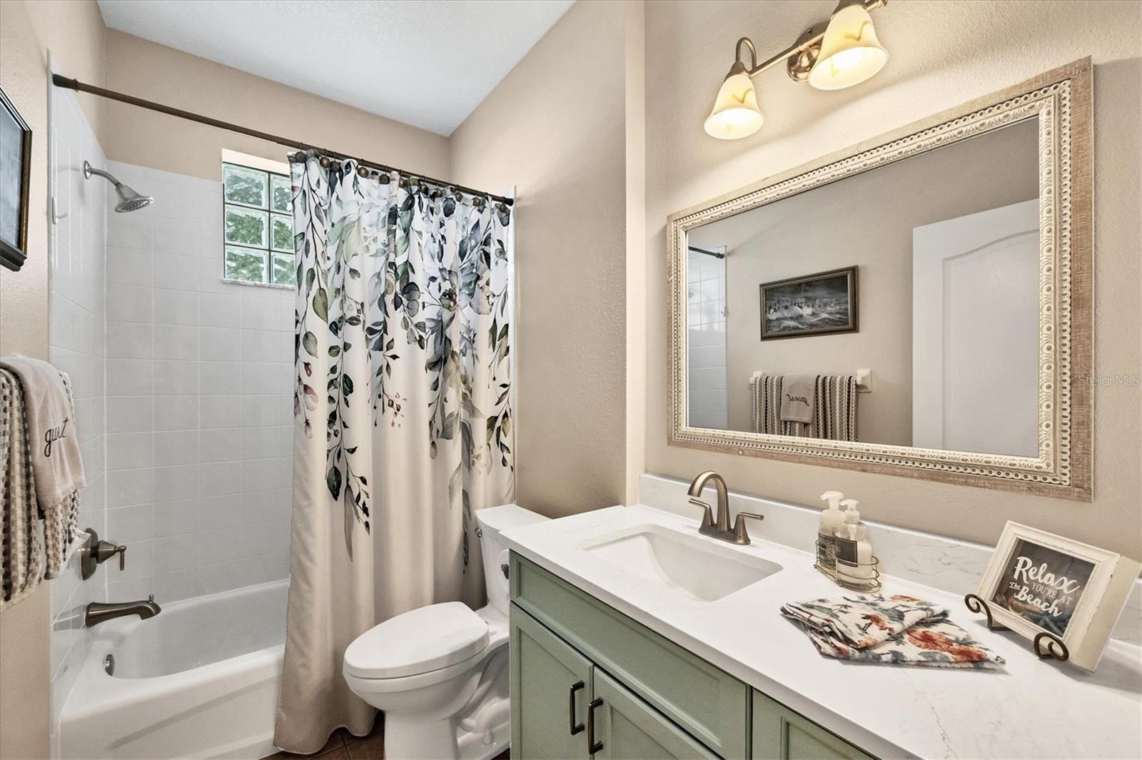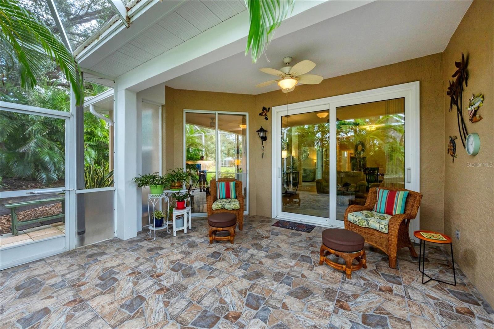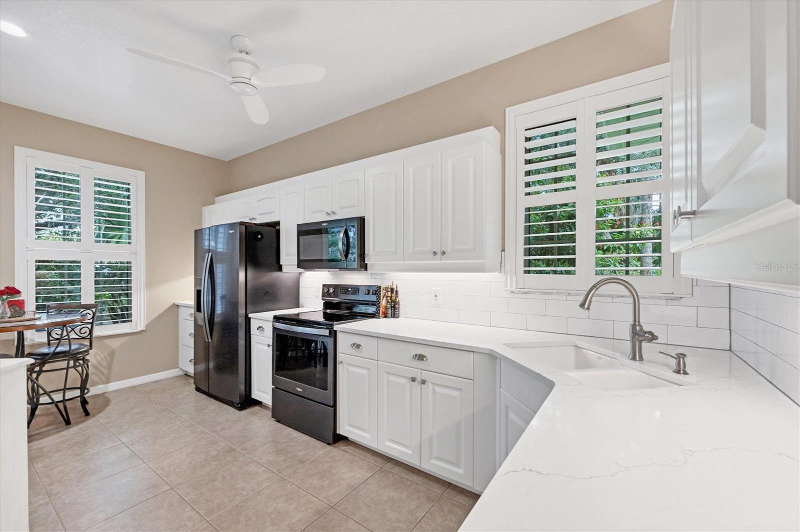This meticulously maintained and beautifully updated villa offers comfort and style within the desirable St. Andrews Park community of The Plantation Golf & Country Club. A soft, neutral palette sets the tone throughout, complemented by many thoughtful updates and added features that make this home truly move-in ready. All windows are storm- and weather-safe, providing year-round peace of mind. Inside, you'll find all-tile flooring for elegance and easy maintenance, enhanced by crown molding and quartz countertops throughout. Updated fixtures, vanities, and lighting elevate the design, while a new hot water heater installed in 11/2025 adds efficiency and convenience. The open layout flows seamlessly to the extended lanai--where lush palms and mature landscaping create a private, serene setting perfect for relaxing mornings or entertaining guests. With its blend of quality updates, timeless finishes, and a sought-after location, this villa delivers both refined living and lasting value. Schedule your private showing today and discover the lifestyle waiting for you at The Plantation Golf & Country Club!