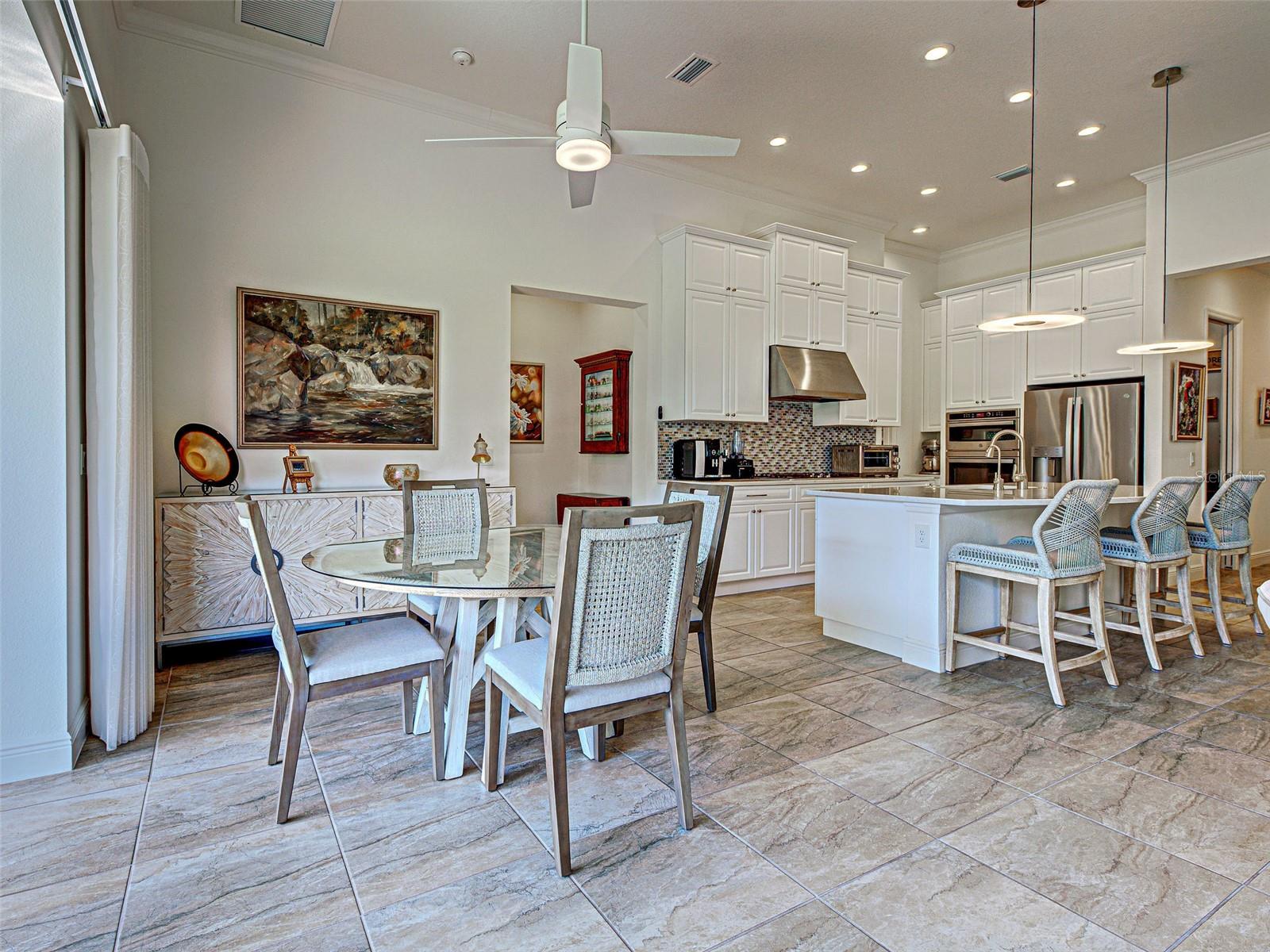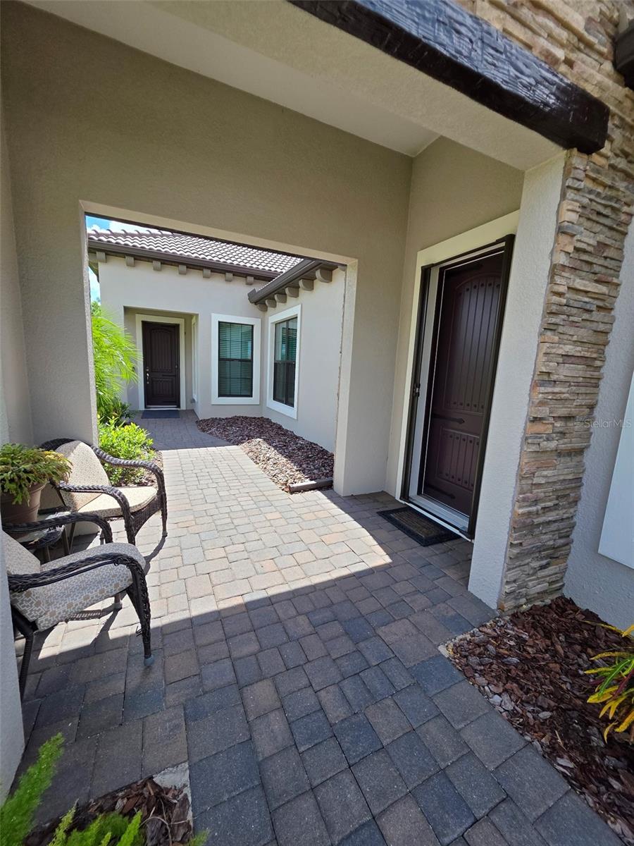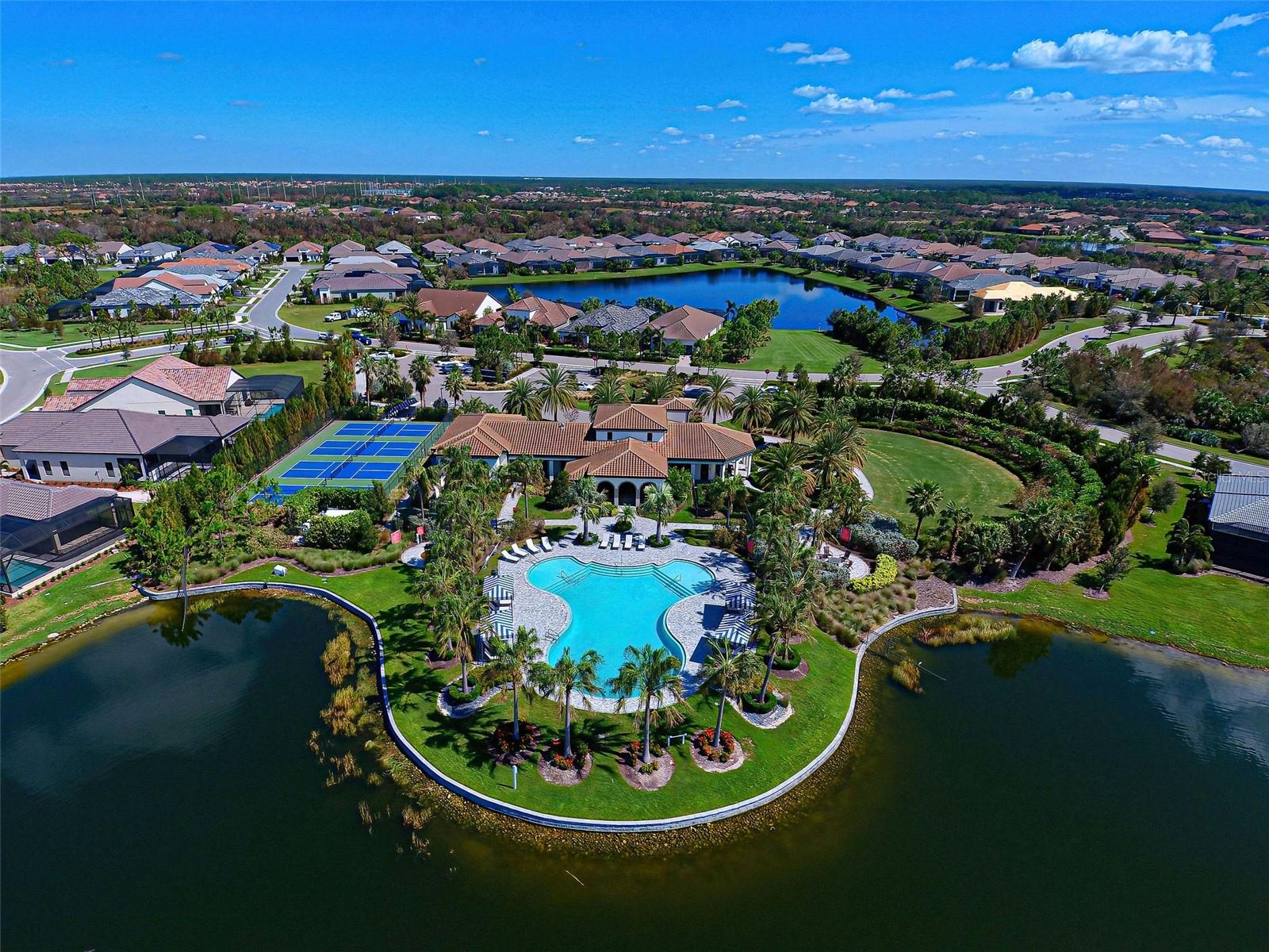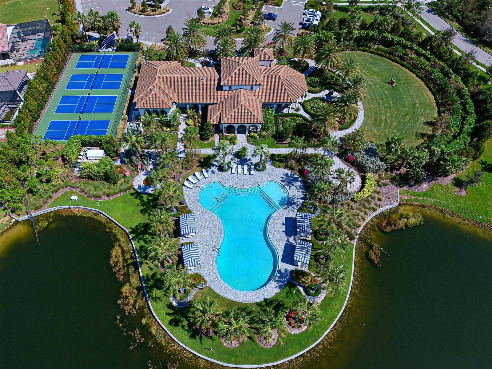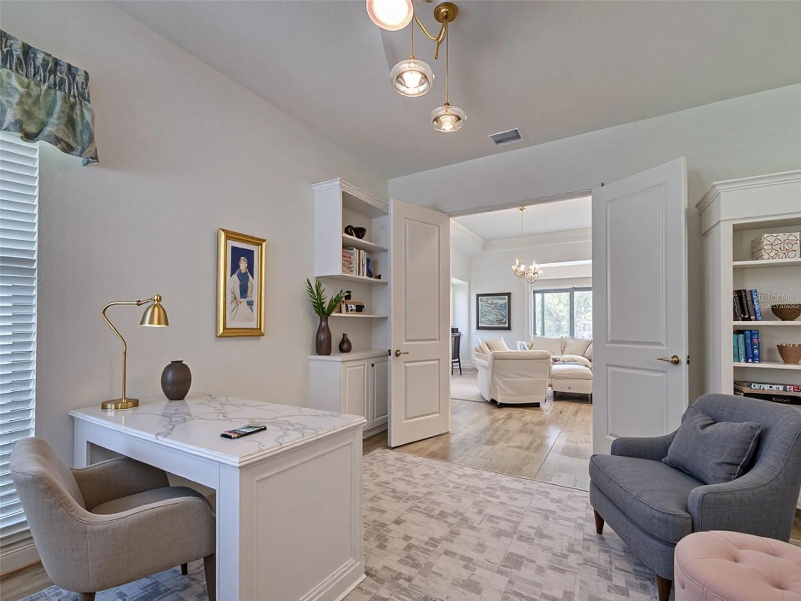 Welcome to ARIA in lovely Nokomis, Florida. Developed by Neal Signature Homes. A deed restricted, gated community with gorgeous resort style amenities including clubhouse, pool, state of the art fitness center, pickleball and entertainment area that overlooks lake and fountain. On-site community manager. Presenting the beautiful Vicenzo Model built in 2022 with 2667 sq. ft., (heated and cooled) 3576 sq. ft. total. 3/BEDROOMS, 3/BATHROOMS, OFFICE, and 2-CAR GARAGE. FEATURING A PRIVATE IN-LAW/GUEST SUITE W/SEPARATE ENTRANCE. BEING OFFERED FURNISHED (or unfurnished-buyers preference). Great room boasts 14 ft. ceilings, crown molding, ceramic tile flooring throughout most of the home (primary bedroom and guest bedroom have carpet). Push back the great room fully collapsing sliders and enjoy the 28ft. brick pavered lanai, overlooking large backyard. Kitchen includes custom pantry, quartz counters, gas cooktop, stainless appliances and ample cabinetry. Larger center island with power w/room for 3 barstools. Dining area adjacent to kitchen. Dedicated office could be tailored to your needs. Primary Bedroom, En-Suite and Walk-In closets are a true trifecta! Crown molding, room darkening shades. En-Suite sports granite, dual sinks, free standing tub and a HUGE shower. HIS/HER closets are amazing. So big it's like having 2 additional rooms! Large 2nd bedroom w/walk-in closet and room darkening shades. The 3rd Bedroom/In-law suite boasts bedroom with built-in closets that span one wall, custom bathroom, custom kitchenette with quartz counter and a family room. Great area for guests, Mom and Dad, in-laws, college student or a live-in. Don't forget it's own dedicated entrance! 2 Car Garage has built-in storage, extra refrigerator/freezer and 2 ceiling storage units. The entire home has IMPACT WINDOWS. Exterior is a handsome combo of block with stone accents. Lush landscaping/ mature plants and trees. ARIA is located close to beaches, Venice Island, I-75, shopping, restaurants and the new Sarasota Memorial Hospital. Make a great decision-come tour this home, IT IS ONE OF A KIND!