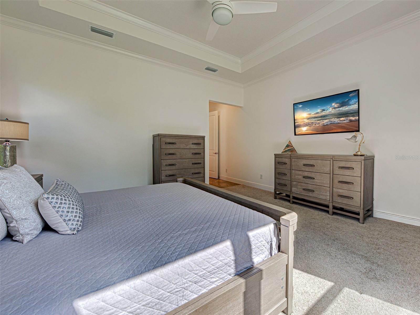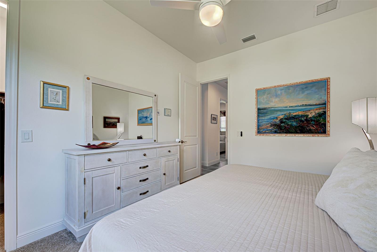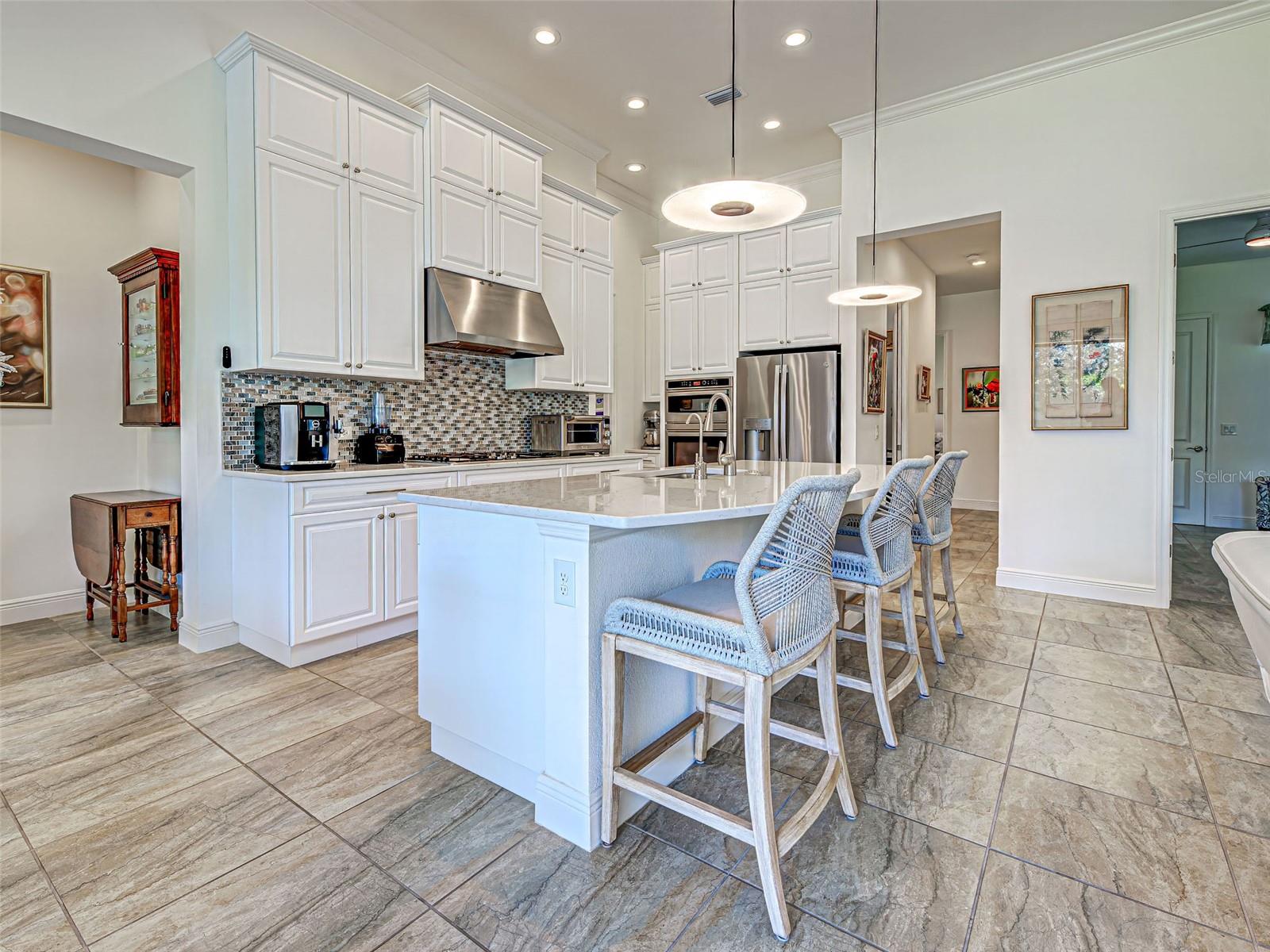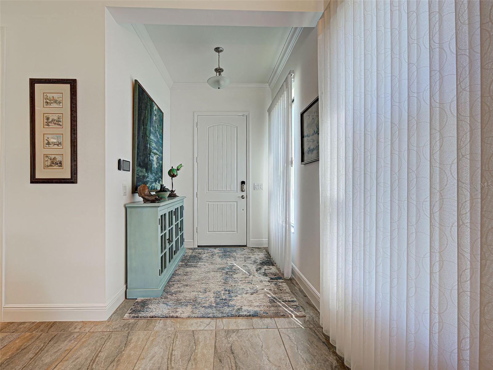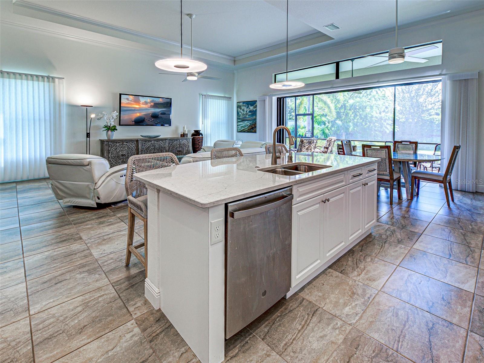 Welcome to ARIA in lovely Nokomis, Florida. Developed by Neal Signature Homes. A deed restricted, gated community with gorgeous resort style amenities including clubhouse, pool, state of the art fitness center, pickleball and entertainment area that overlooks lake and fountain. On-site community manager. Presenting the beautiful Vicenzo Model built in 2022 with 2667 sq. ft., (heated and cooled) 3576 sq. ft. total. 3/BEDROOMS, 3/BATHROOMS, OFFICE, and 2-CAR GARAGE. FEATURING A PRIVATE IN-LAW/GUEST SUITE W/SEPARATE ENTRANCE. BEING OFFERED FURNISHED (or unfurnished-buyers preference). Great room boasts 14 ft. ceilings, crown molding, ceramic tile flooring throughout most of the home (primary bedroom and guest bedroom have carpet). Push back the great room fully collapsing sliders and enjoy the 28ft. brick pavered lanai, overlooking large backyard. Kitchen includes custom pantry, quartz counters, gas cooktop, stainless appliances and ample cabinetry. Larger center island with power w/room for 3 barstools. Dining area adjacent to kitchen. Dedicated office could be tailored to your needs. Primary Bedroom, En-Suite and Walk-In closets are a true trifecta! Crown molding, room darkening shades. En-Suite sports granite, dual sinks, free standing tub and a HUGE shower. HIS/HER closets are amazing. So big it's like having 2 additional rooms! Large 2nd bedroom w/walk-in closet and room darkening shades. The 3rd Bedroom/In-law suite boasts bedroom with built-in closets that span one wall, custom bathroom, custom kitchenette with quartz counter and a family room. Great area for guests, Mom and Dad, in-laws, college student or a live-in. Don't forget it's own dedicated entrance! 2 Car Garage has built-in storage, extra refrigerator/freezer and 2 ceiling storage units. The entire home has IMPACT WINDOWS. Exterior is a handsome combo of block with stone accents. Lush landscaping/ mature plants and trees. ARIA is located close to beaches, Venice Island, I-75, shopping, restaurants and the new Sarasota Memorial Hospital. Make a great decision-come tour this home, IT IS ONE OF A KIND!