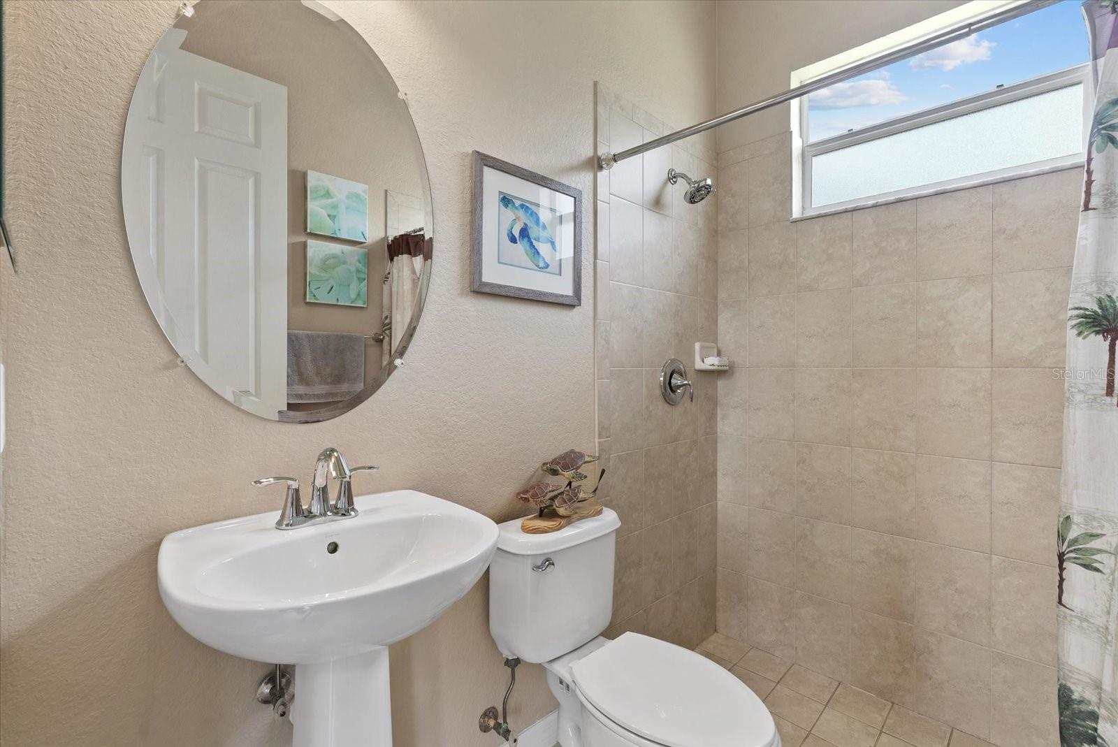 - Exterior: Hurricane Shutters, Lighting, Private Mailbox, Rain Gutters, Sidewalk, Sliding Doors