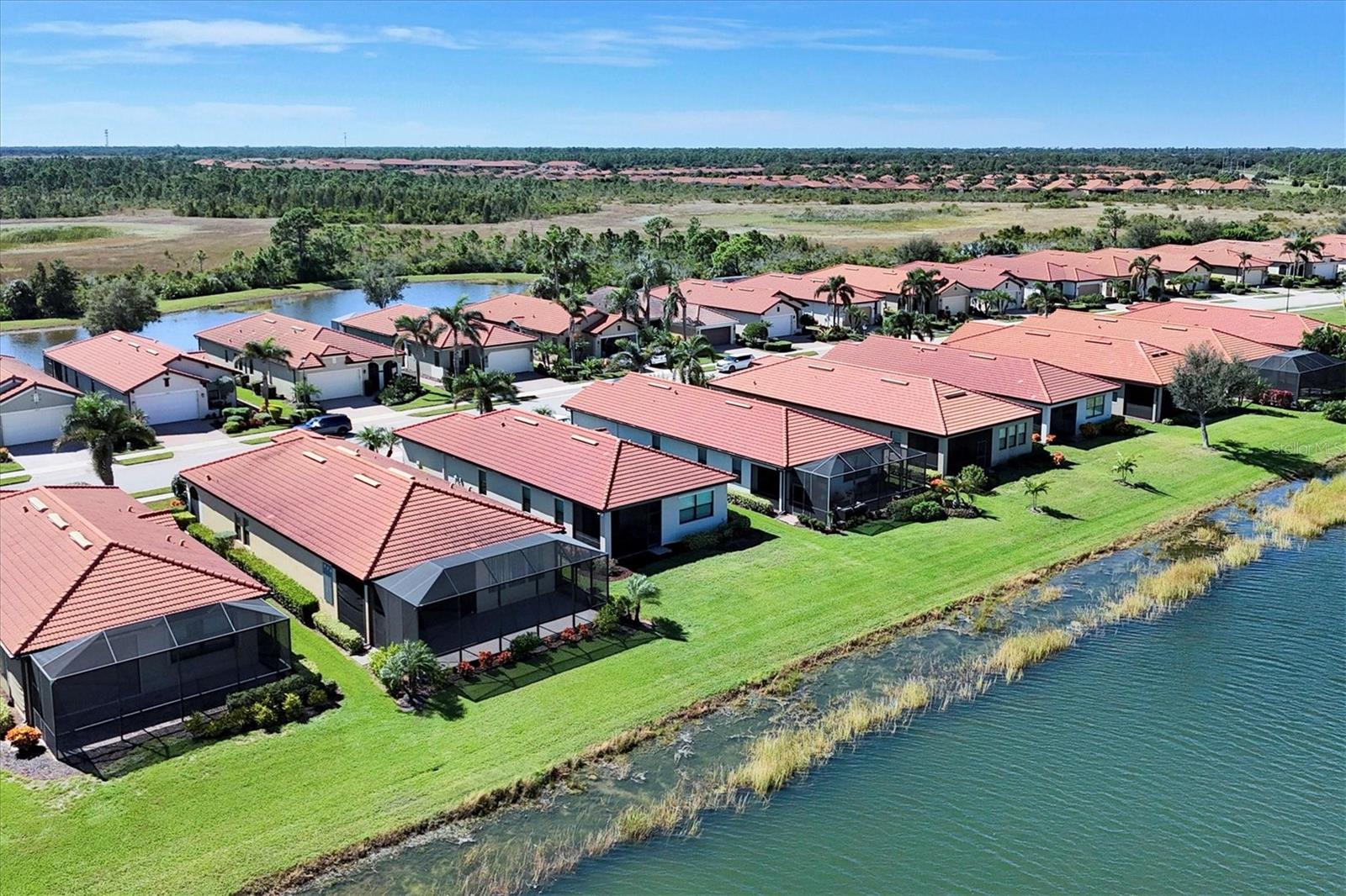 Discover the Charm of the "Medina" Model in Sarasota National. Welcome to this move-in-ready, maintenance-free LAKEFRONT home in the sought-after Sarasota National community. Built in 2016, this beautifully appointed 2-bedroom, 2-bath plus den residence offers a light-filled, open-concept floor plan perfect for both everyday living and entertaining.Step into the heart of the home -- a modern kitchen featuring elegant cabinetry, granite countertops, Stainless Steel appliances, and a spacious center island ideal for gathering. HURRICANE RESISTANT WINDOWS AND SLIDING DOORS invite in serene waterfront views while ensuring peace of mind.The cozy den with french glass doors, offers the flexibility to create a private office, reading nook, or guest space but still be a part of the main living areas since it is between the guest bedroom and dining/kitchen areas. Located within an Audubon International Certified Signature Sanctuary, Sarasota National is a nature lover's paradise with preserved native wetlands and wildlife, including deer, bobcats, a variety of birds, and even the occasional panther or alligator.Enjoy resort-style living with access to premier amenities: Tennis & pickleball courts, Fitness center, Dragonflies Day Spa, Beach-entry resort-style pool with lap lanes and spa, Bocce ball, bike trails & dog park. Enjoy The Palm Club restaurant, bar & lounge to meet new friends, enjoy your family or just take a break from cooking!Whether you're seeking comfort, community, or a connection to nature, this luxury retreat in Sarasota National offers it all. In addition, you are in Wellen Park with a myriad of amenities (restaurants, clothing stores, nail salon, etc.). A little further drive will take you to Venice Beach or Downtown with fabulous restaurants and gorgeous sunsets over the Gulf of Mexico. This is one you will not want to miss! Schedule your showing today before it's too late to live in Paradise!