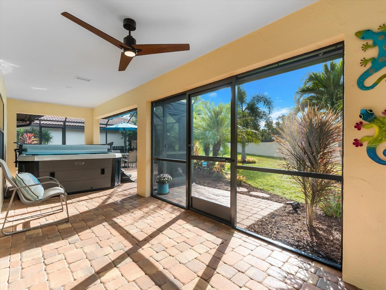 Live where others vacation--just minutes from Venice and Manasota Beach! This stunning, fully remodeled home is your ticket to easy, breezy Florida living. Step into a bright, open floor plan with soaring cathedral ceilings that create a spacious, airy feel throughout. The reimagined layout now includes 2 bedrooms, plus a stylish home office/den and 2 beautifully updated bathrooms with quartz countertops, wood-look ceramic tile floors, a jaw-dropping 10' granite kitchen island with extra cabinet storage underneath, sleek appliances, and custom window treatments throughout.New hurricane-rated windows and a massive 16' sliding glass door open to your private oasis: a pavered patio with new, extended screened lanai, and relaxing hot tub. Enjoy peace of mind with a new concrete tile roof (2018), new gutters (2022), new AC unit and a high-tech HVAC system with UV filtration.And the best part? The HOA takes care of roof cleaning, exterior painting, and lawn maintenance--so you can spend more time soaking up the sun. Walking distance to the library and grocery stores adds everyday convenience. No rentals allowed means quiet nights and a true neighborhood feel.This is your chance to own a slice of paradise in one of Venice's most desirable communities!