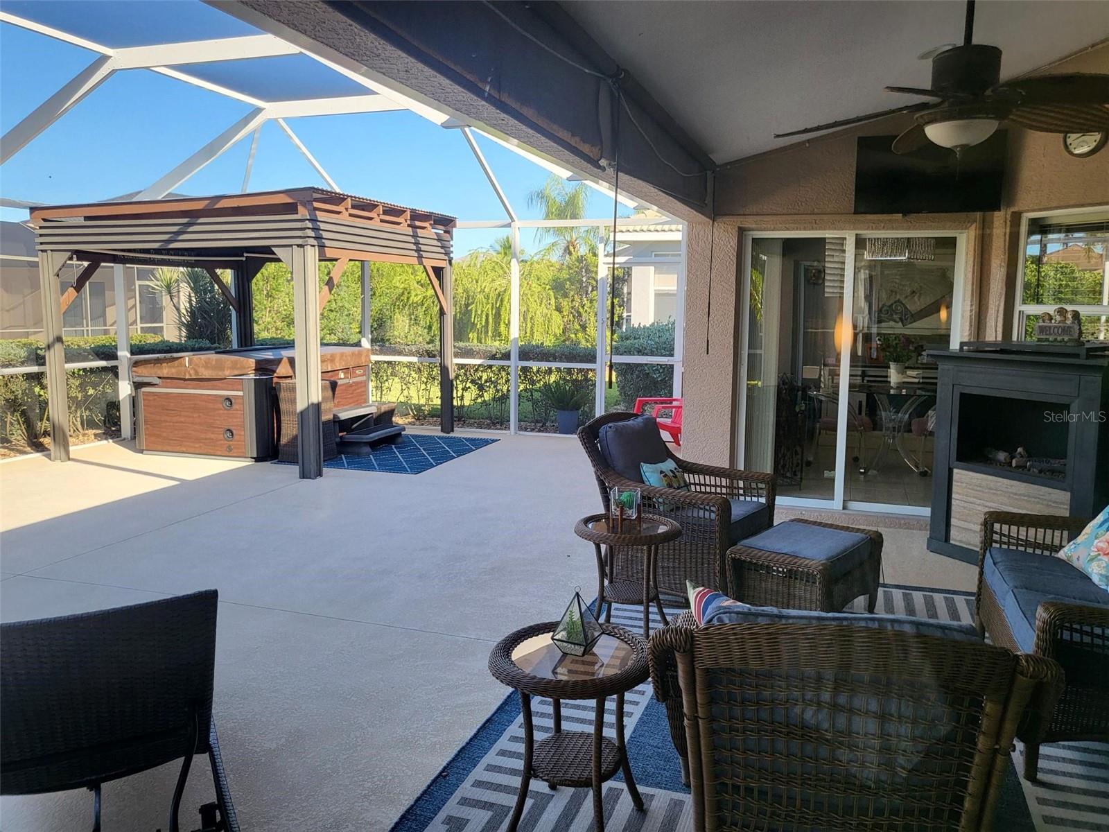 Beautiful home with a split floor plan for your family and guest. When you walk in the front door you will be greeted by a large great room looking out the sliding doors at the awesome lanai and back yard, where your very own heated spa and expanded lanai welcome you to relax in comfort. The home includes all appliances with the purchase, including a whole home water softener. Seller is also offering some of her furniture for sale. She has purchased another smaller home already and can close quickly if needed.The formal dining room has sliding doors and could be used as an office, TV room or even a 4th bedroom. The kitchen has a breakfast bar as well as room for a table and chairs. The master bedroom is huge and includes a wall mounted TV. You can exit the bedroom through the sliding glass doors right into the lanai area that has another wall mounted TV as well as a gas fireplace, 5 TV's total, all included with the home. This is a great floor plan for families! Seller is also installing a new roof with a transferable warranty before closing. Don't miss this opportunity to purchase a home that has been well cared for in a small community with HOA fees of only $74. a month and No CDD fees! Just reduced $16K!! All located within 5 miles of Historic downtown Venice and Venice beach. Great location!