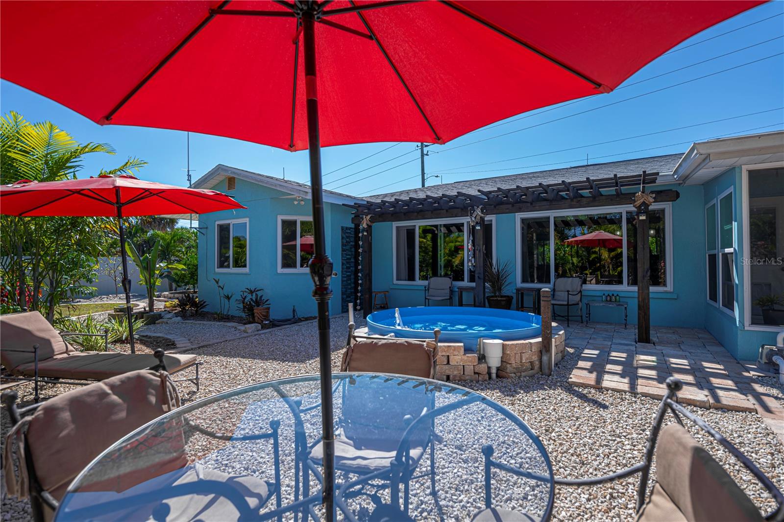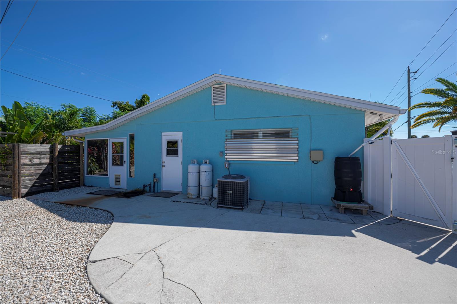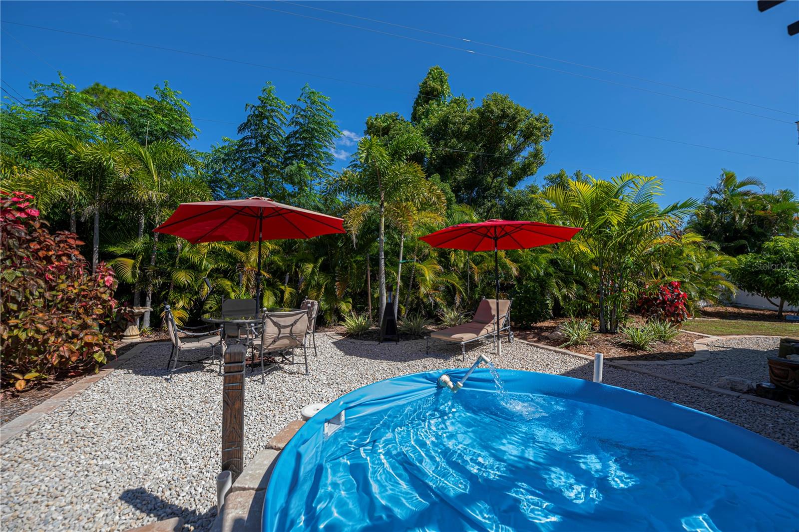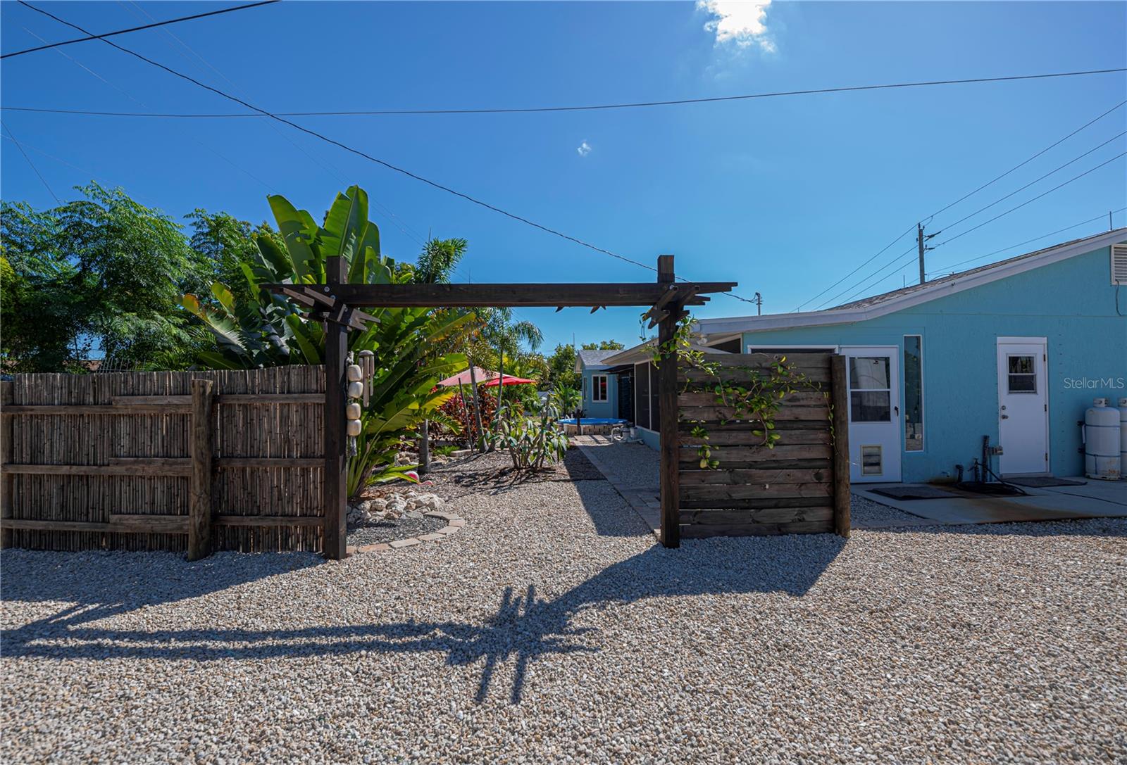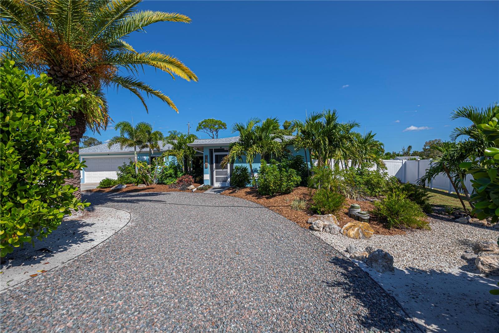 A Tropical Oasis in South Venice! Step inside to discover an inviting open floor plan featuring 2 bedrooms, 2 bathrooms, and a 2-car garage. The kitchen flows effortlessly into the dining and living areas, all highlighted by elegant terrazzo floors throughout. With an inviting eat-at bar, sleek granite countertops, modern cabinetry, and stainless-steel appliances, the kitchen is ideal for everyday living and entertaining. The spacious master suite offers a walk-in shower and dual sinks, while the generous guest bedroom is complemented by a bright guest bath with a tub-shower combination.Outdoor living is equally impressive. A screened lanai with hurricane-rated windows and a screened front porch provide inviting spaces to relax, while the large backyard offers ample privacy and parking with gravel areas perfect for RVs, campers, or outdoor toys. The oversized lot is fully fenced with reinforced aluminum posts, dual main gates, and 12-foot RV gates, plus a rocked RV area. Professional landscaping surrounds the property with privacy plants, raised vegetable beds, and mature fruit trees including mango, papaya, banana, citrus, and guava. A lined dipping pool, hard-piped with a sand filter and pump, adds a refreshing retreat.Recent upgrades include wind-rated windows installed in 2021, a roof 3.5 years old with lightning protection, gutters, and downspouts, plus a new well pump and pressure tank. The home is equipped with inline water filters, a softener, charcoal filtration, and reverse osmosis drinking water at the kitchen sink and refrigerator. For peace of mind, there is a 30/50 amp plug with generator interlock in the breaker box. Power & conduit available for future pool equipment. Additional highlights include attic storage with lighting, outdoor security lighting, ceiling fans in bedrooms, dog doors, and an outdoor shower.South Venice offers optional amenities including access to a private beach ferry, boat launch, kayak ramp, and pickleball courts at the civic center across the street. Located minutes from Gulf beaches, Venice Island, and the vibrant new Wellen Park community, this home delivers the very best of Florida coastal living with a pleasant blend of updates, functionality, and lifestyle.