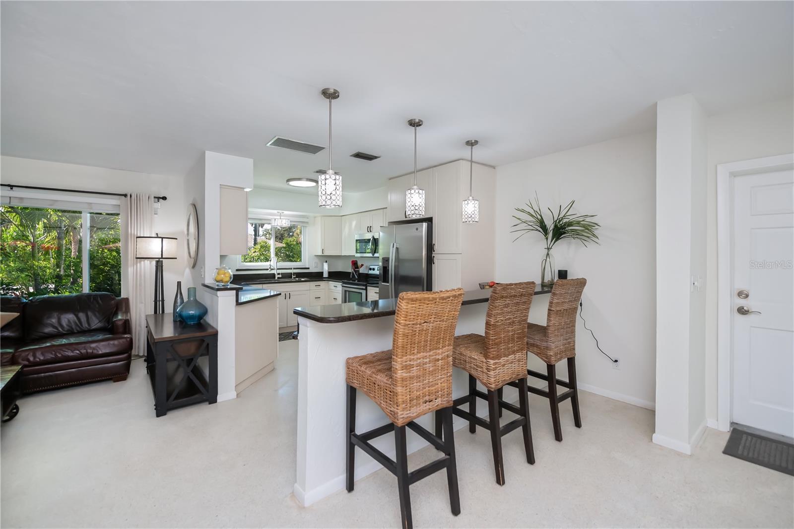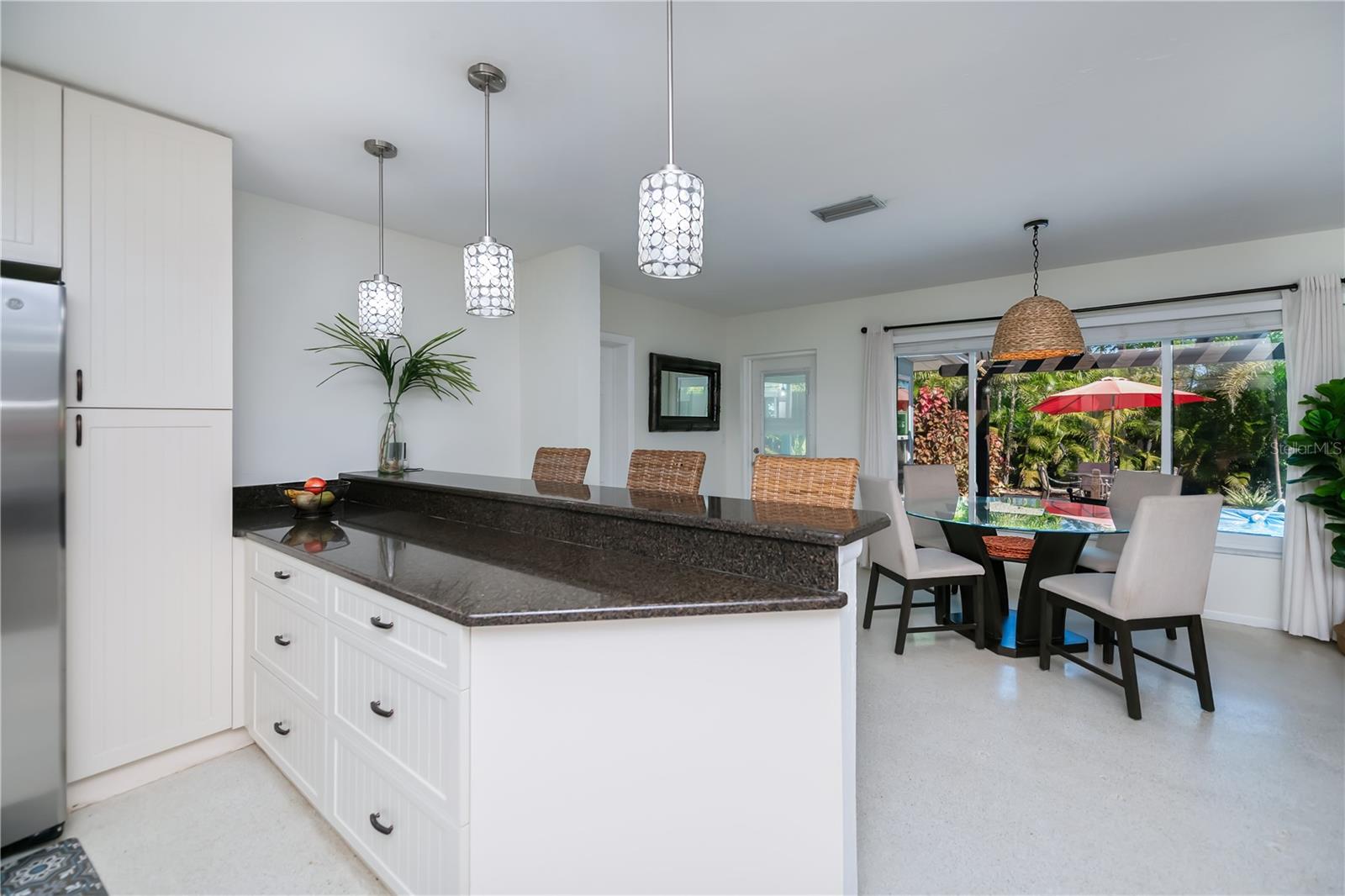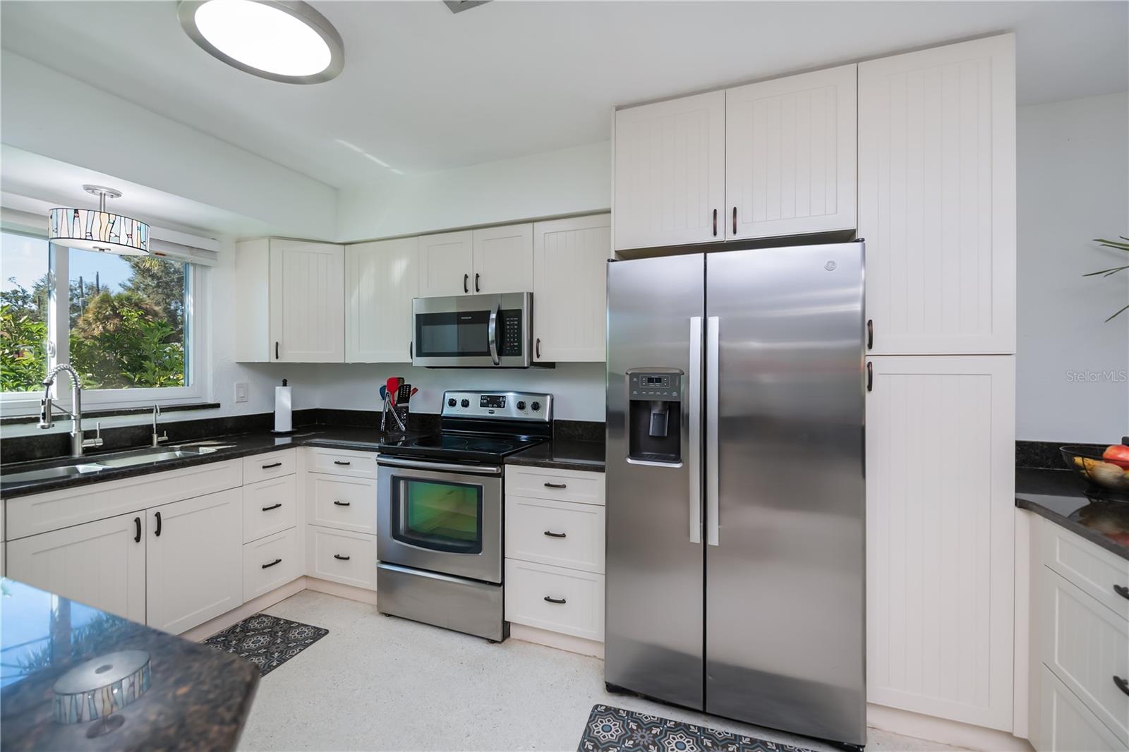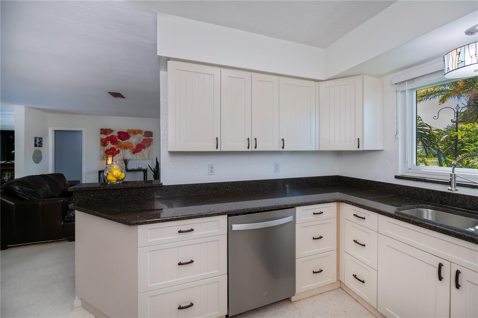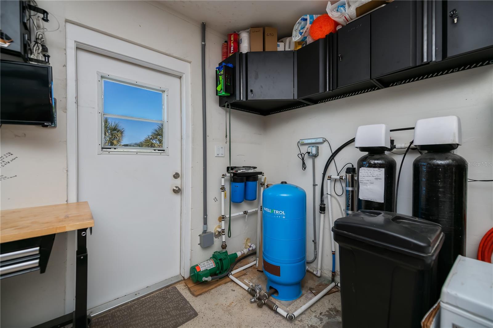 A Tropical Oasis in South Venice! Step inside to discover an inviting open floor plan featuring 2 bedrooms, 2 bathrooms, and a 2-car garage. The kitchen flows effortlessly into the dining and living areas, all highlighted by elegant terrazzo floors throughout. With an inviting eat-at bar, sleek granite countertops, modern cabinetry, and stainless-steel appliances, the kitchen is ideal for everyday living and entertaining. The spacious master suite offers a walk-in shower and dual sinks, while the generous guest bedroom is complemented by a bright guest bath with a tub-shower combination.Outdoor living is equally impressive. A screened lanai with hurricane-rated windows and a screened front porch provide inviting spaces to relax, while the large backyard offers ample privacy and parking with gravel areas perfect for RVs, campers, or outdoor toys. The oversized lot is fully fenced with reinforced aluminum posts, dual main gates, and 12-foot RV gates, plus a rocked RV area. Professional landscaping surrounds the property with privacy plants, raised vegetable beds, and mature fruit trees including mango, papaya, banana, citrus, and guava. A lined dipping pool, hard-piped with a sand filter and pump, adds a refreshing retreat.Recent upgrades include wind-rated windows installed in 2021, a roof 3.5 years old with lightning protection, gutters, and downspouts, plus a new well pump and pressure tank. The home is equipped with inline water filters, a softener, charcoal filtration, and reverse osmosis drinking water at the kitchen sink and refrigerator. For peace of mind, there is a 30/50 amp plug with generator interlock in the breaker box. Power & conduit available for future pool equipment. Additional highlights include attic storage with lighting, outdoor security lighting, ceiling fans in bedrooms, dog doors, and an outdoor shower.South Venice offers optional amenities including access to a private beach ferry, boat launch, kayak ramp, and pickleball courts at the civic center across the street. Located minutes from Gulf beaches, Venice Island, and the vibrant new Wellen Park community, this home delivers the very best of Florida coastal living with a pleasant blend of updates, functionality, and lifestyle.