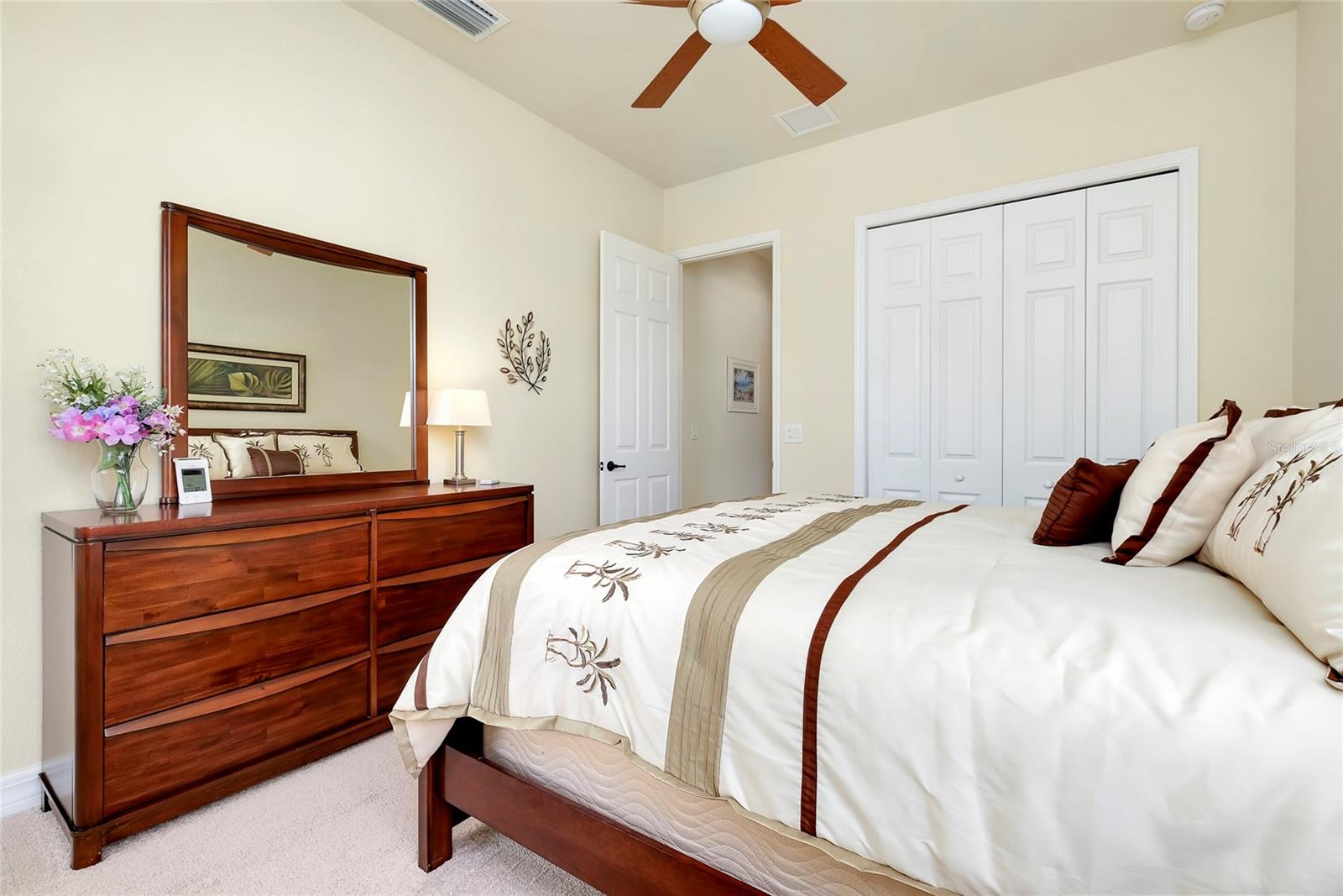 Built on a premium full lake view lot, this immaculate luxury home includes a custom designed pool and spa, study or 4th bedroom and the 3 car garage. Beautiful finishes, cabinetry and attention to detail makes this meticulously maintained estate home an exceptional property. Leaded glass entry doors open into the great room to an amazing lake and lush vegetation view through the triple sliders. The pool cage has the scenic-view screening and the large lanai with sealed pavers allows for entertaining. Great privacy and so relaxing! The heated salt-water pool includes auto fill to maintain the proper level year round, pop up cleaning jets, lighting and attached heated spa. The pool pump, filter, housing and cage screening is all new. The lanai has access to the pool bath. The Oakmont model offers a split floor plan with an open concept living area, tray ceilings, crown moldings, and ceramic tile floors in main areas. The beautiful kitchen has granite countertops, stainless steel appliances, cooktop, detailed wood cabinetry, a raised bar plus a dinette area looking out to the lake. Safety features include hurricane locking accordion shutters for the windows, Kevlar automated screens on front entry and covered lanai area and a security system. The primary bedroom has access to the pool area, large walk in closet, en-suite bath with 2 separate vanities, a Roman walk in shower and a soaking tub. The front bedroom is currently used as an office. The remaining 2 bedrooms are on the other side of the home with a full bathroom plus the 1/2 bath for the pool area. The laundry room has built in cabinetry and a sink and leads to the 3 car garage. The garage has been upgraded with an epoxy finished floor, a workshop and pull down stairs to storage attic area. New AC unit and air purification system installed in April 2025. The gated community of Gran Paradiso has a low HOA fee that includes lawn care, irrigation, cable, internet and use of the community amenities: a resort-style swimming pool, clubhouse, gym, tennis/pickleball courts, playground and full time activity director. Conveniently located to Venice beaches, airports, hospitals and schools, Wellen Park and the Atlanta Braves Spring Training facility. Furniture is available under separate contract. Move-in ready, perfect for snowbirds as well.