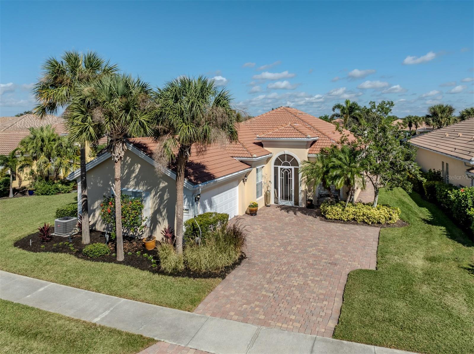 Welcome to this beautifully upgraded,2000 square feet single family home in the popular gated master planned community of IslandWalk in the West Villages District of Wellen Park. This Oakmont model presents 3 bedroom, and 3 bathrooms plus a den and has an open floor plan for easy Florida living. "Divosta strong" poured concrete construction. Plantation shutters on ALL windows including the garage. Silhouettes on all sliders. All closets are "walk-in" and all have "built-ins" New lanai pool cage with stainless steel screws. Premium long water view with Venetian bridge from the pool area. a perfect place to enjoy Florida's fabulous sunsets. Kidney shaped pool design. Hurricane impact front door. 12' ceiling in Great Room; 10' ceilings in all other rooms. 8' six-panel doors throughout with Canterbury casing. 6 ceiling fans inside the home plus 2 on the lanai. Pull-out shelves in the kitchen. All upgraded appliances throughout. Premium upgraded granite counter tops. Paver driveway. Paver walkway from front door to the lanai. Screened in covered front entrance. Upgraded hurricane-proof roof vent shields.
