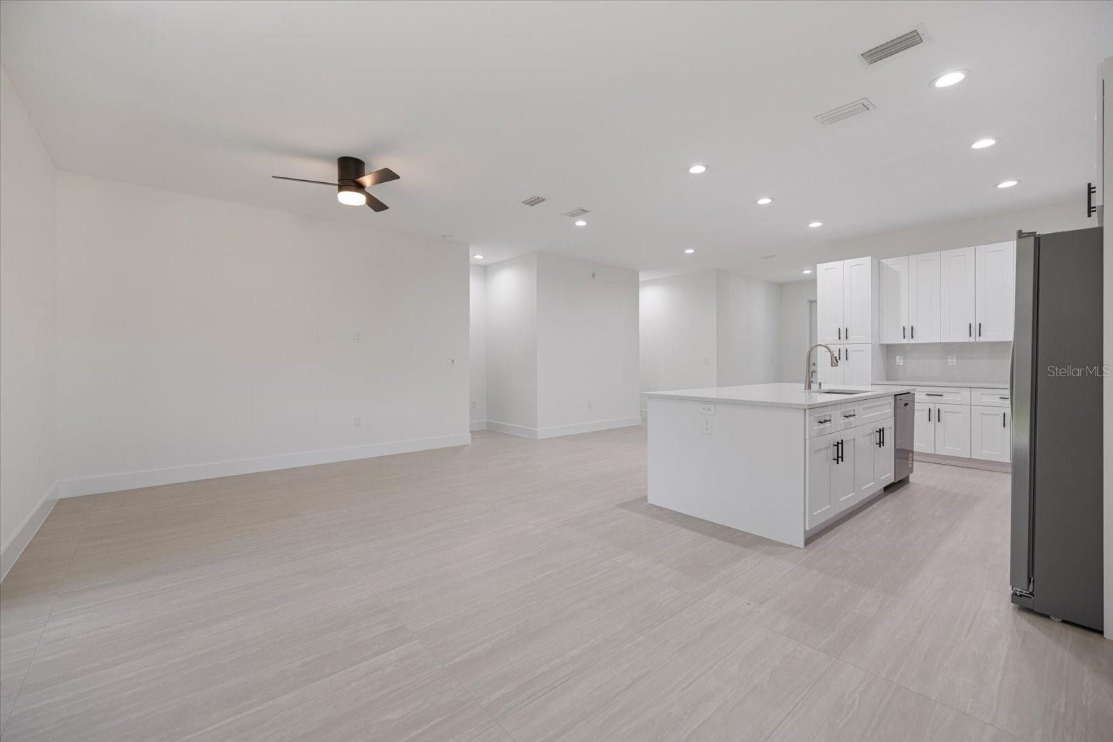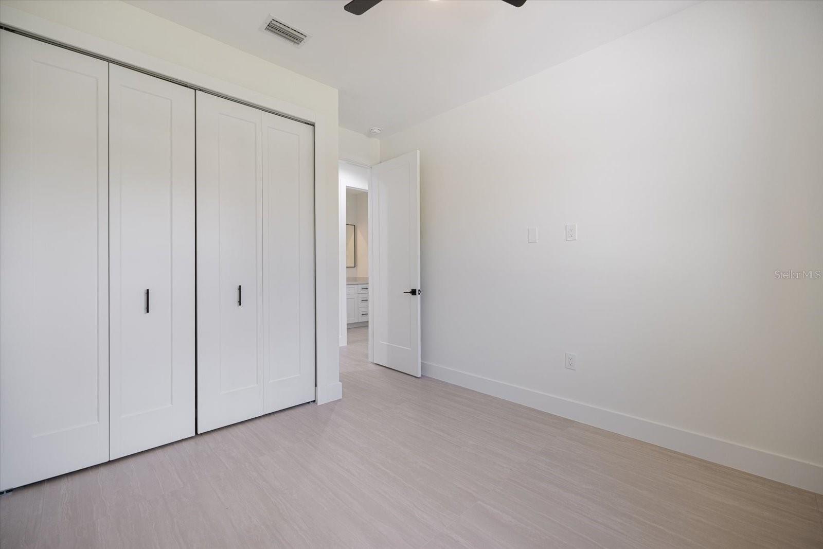 One or more photo(s) has been virtually staged. ELEGANCE MEETS AFFORDABILTY! This brand-new, 3-bedroom, 2-bathroom modern 2025 built home is move-in ready in NO FLOOD ZONE, featuring contemporary upgrades throughout! QUALITY CRAFTSMANSHIP and attention to detail were carefully executed to create a timeless home you'll be proud of for years. Upon entry, an elegant full-view IMPACT glass door greets you, along with a charming tiled front porch to sit and greet neighbors. This unique home features stylish design elements, including larger floor tiles in every room, tall, modern 8' shaker-style doors with 9'-4" high ceilings, 6" modern baseboard, smooth, sleek flat walls, a sophisticated gourmet kitchen with soft-close wood cabinetry, tall 42" upper cabinets, sparkling quartz counter-tops with a matching quartz backsplash, and modern tiled bathrooms. The spacious living room and dining area offer the ideal open-concept, featuring a huge breakfast bar, and IMPACT SLIDERS leading to a large 24' x 11-5" covered tiled lanai, where you'll embrace outdoor living among an established tropical tree-filled backyard! The large master bedroom showcases a luxurious en-suite bathroom with an elegant double quartz sink, a walk-in glass-tiled shower, and a custom-built walk-in closet with sleek organizers. This home was built for energy efficiency and safety, featuring ALL IMPACT WINDOWS and DOORS, WHOLE HOUSE GUTTERS, plus an IRRIGATION SYSTEM is in place! These upgrades will save you money on energy bills and insurance! This PRIME North Port location offers a quiet neighborhood, yet you are only minutes from Town Center Mall, which includes the area's movie theater, numerous retail and popular dining! Nearby SARASOTA COUNTY SCHOOLS include Atwater Elementary (8 min), Woodland Middle School (12 min), and North Port High (20 min). Additionally, two fantastic community pools are nearby. Our HUGE kid-friendly North Port Aquatic Center is just 20 minutes away, featuring water slides, a kiddie pool, lap pool, and a relaxing lazy river. Alternatively, you can visit nearby Centennial Park, only 3 miles away, offering memberships or walk-in access to their aquatic and fitness center, with baseball & soccer fields, playground & picnic areas, plus nature trails, all across the street. Additionally, our area's famous Fishermen's Village is just over the bridge, a quick 25-minute commute. Plus, the hot new area of Wellen Park, only 25 minutes east, offers new restaurants, boutique shopping and Free Friday night concerts in the park! For beach lovers, Venice or Englewood Beach can be accessed within 30 minutes or so. Come experience a quality-built new construction, and see the difference! Builder offering 1-year Builder Craftsmanship Warranty.