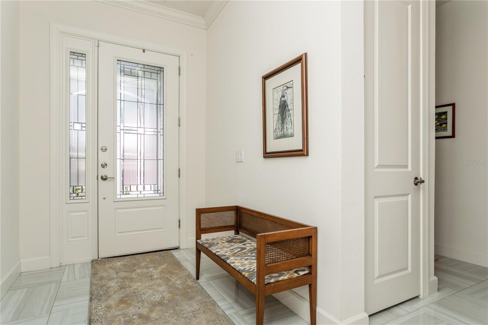 Live the Florida lifestyle you've been dreaming of in this stunning Taylor Morrison Farnese model, located in the resort-style, maintenance-free community of Bellacina by Casey Key!From the moment you arrive, this immaculate 2-bedroom, 2.5-bath plus den home impresses with impact windows and doors, timeless elegance, and a seamless blend of luxury and comfort. Step through stunning stain glass front door into the grand foyer with tray ceilings and crown molding, and you'll immediately feel the sophistication that flows throughout.The 24" x 24" polished porcelain tile flooring extends through every room, perfectly complemented by custom Silhouette window treatments that fill the home with soft natural light.At the heart of the home, the gourmet kitchen is a chef's delight -- featuring a large island, quartz countertops, and stainless appliances including a natural gas range and showpiece refrigerator. Whether you're cooking, entertaining, or enjoying morning coffee in the cozy breakfast nook, this kitchen delivers both style and function.The open living room invites relaxation with triple sliding glass doors that extend your living space outdoors to a screened lanai overlooking a serene preserve. Here, you'll find your own private paradise -- a sparkling rectangular pool with a waterfall and sun shelf, plus space already plumbed for an outdoor kitchen -- perfect for hosting unforgettable gatherings.Your primary suite is a true retreat, offering tranquil views, a large walk-in closet, and a spa-worthy ensuite bath with a beautifully tiled walk-in shower. Guests will appreciate the privacy of their own en-suite bedroom, while the den provides flexible space for a home office or media room.Additional highlights include a fully equipped laundry room, epoxy-coated extended garage, and peace of mind knowing the home sits in a non-flood zone with no CDD fees.Beyond your front door, Bellacina by Casey Key offers an unparalleled lifestyle -- with resort-style amenities including a heated community pool with cabanas, clubhouse with chef's kitchen, 24-hour fitness center, outdoor spa, fire pit, and plenty of ways to stay active: pickleball, tennis, bocce ball, walking trails, dog parks, and a playground. A full-time activities director ensures there's always something exciting on the calendar!And when you're ready to explore, you're just 2.5 miles to Nokomis Beach, 5 miles to historic Downtown Venice, and a short drive to Siesta Key, Downtown Sarasota, and SRQ Airport.This isn't just a home -- it's a lifestyle of luxury, leisure, and coastal living at its finest. Schedule your private showing today before this exceptional opportunity slips away!