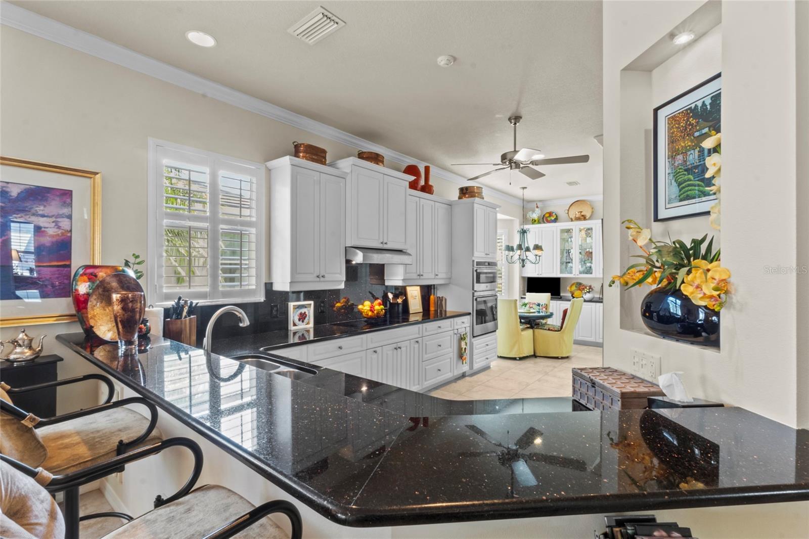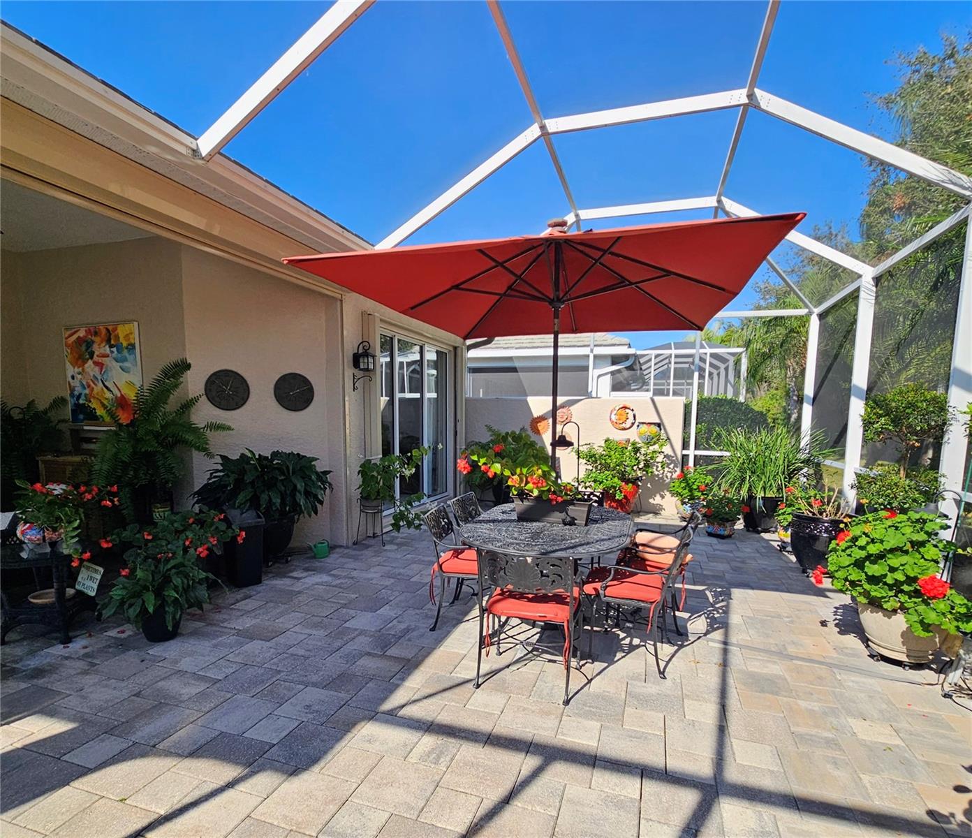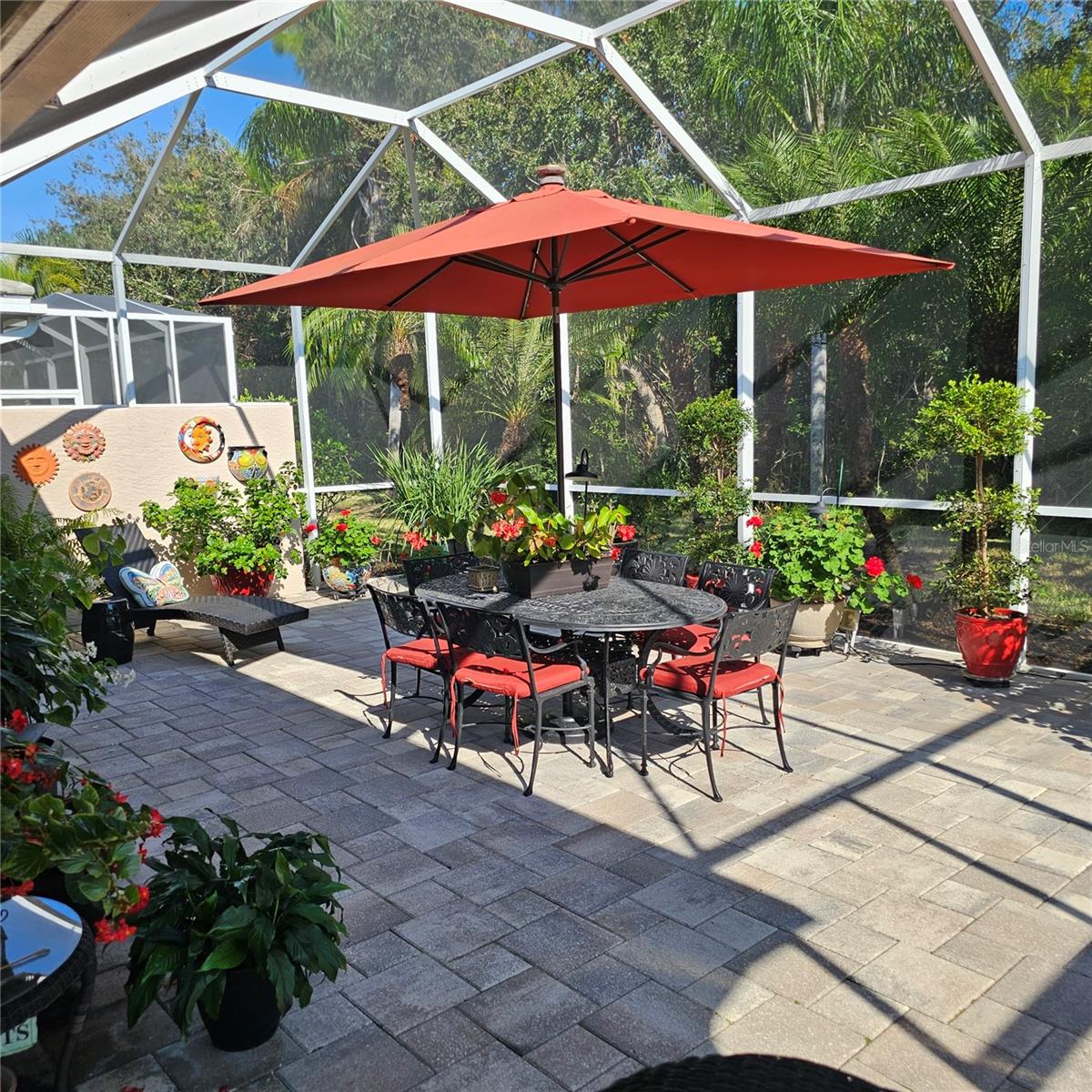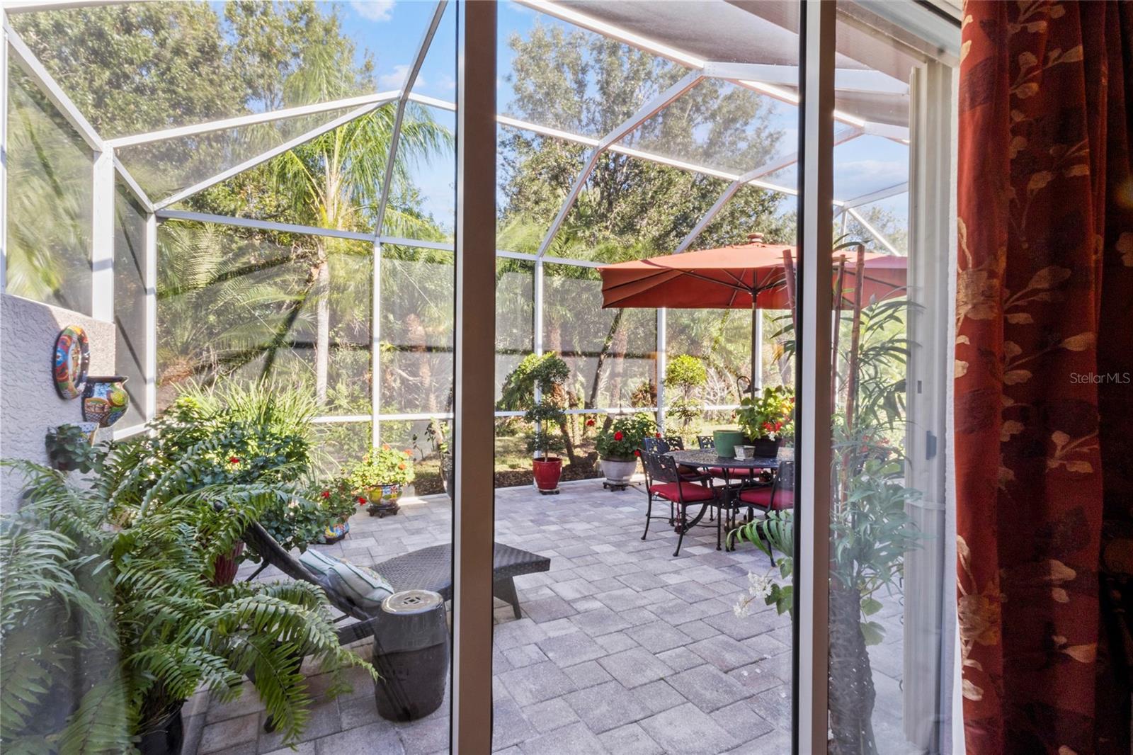 Discover easy, maintenance-free living where everything is handled for you, giving you more time to enjoy the Florida lifestyle. Exterior insurance, roof reserves, lawn care, pest and termite protection, exterior painting, and discounted high-speed internet are included in the quarterly fees. The community offers two pools, a resident-run clubhouse, no CDD fees, and optional membership at Plantation Golf & Country Club for golf, tennis, pickleball, fitness, dining, and social activities.This patio home stands out for its exceptional storage. The primary suite includes two walk-in closets, and the guest suite features another large walk-in closet plus pull-down attic stairs leading to a finished storage room--a rare and valuable feature in Florida homes.Inside, the home is bright and welcoming with neutral tile floors, plantation shutters, crown molding, and tray ceilings. The kitchen has crisp white cabinets, granite countertops, double ovens (2023), induction cooktop with hood vented to outside, Bosch dishwasher (2023), a walk-in pantry, breakfast bar, and an eat-in area framed by a bay window and additional cabinetry.The oversized screened lanai feels like a private tropical oasis, surrounded by lush landscape that creates complete privacy. A bubbling fountain and low-voltage lighting make this space perfect for relaxing or entertaining.Additional highlights include an inside laundry with utility sink, extra cabinetry and counter space, an epoxy-coated garage floor (2025), interior paint (2024), and a new HVAC system with blue light technology (2020). The home is fully storm-ready with impact glass windows, motorized roll-down Kevlar-like hurricane screens on the covered lanai, and accordion shutters at the primary bedroom slider--allowing quick and complete protection.A third bedroom currently serves as a den/office, offering flexible space for work or hobbies. Immaculately maintained and thoughtfully upgraded, this home offers the rare combination of maintenance-free living, privacy, and exceptional storage in a highly desirable Venice community.