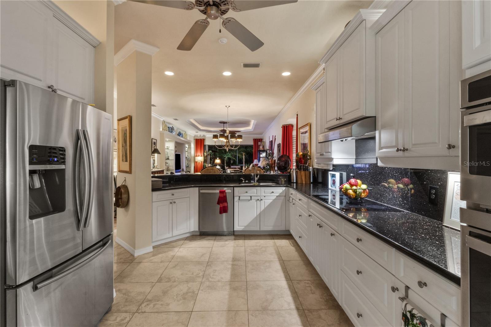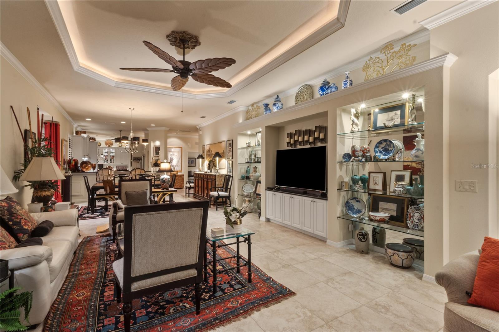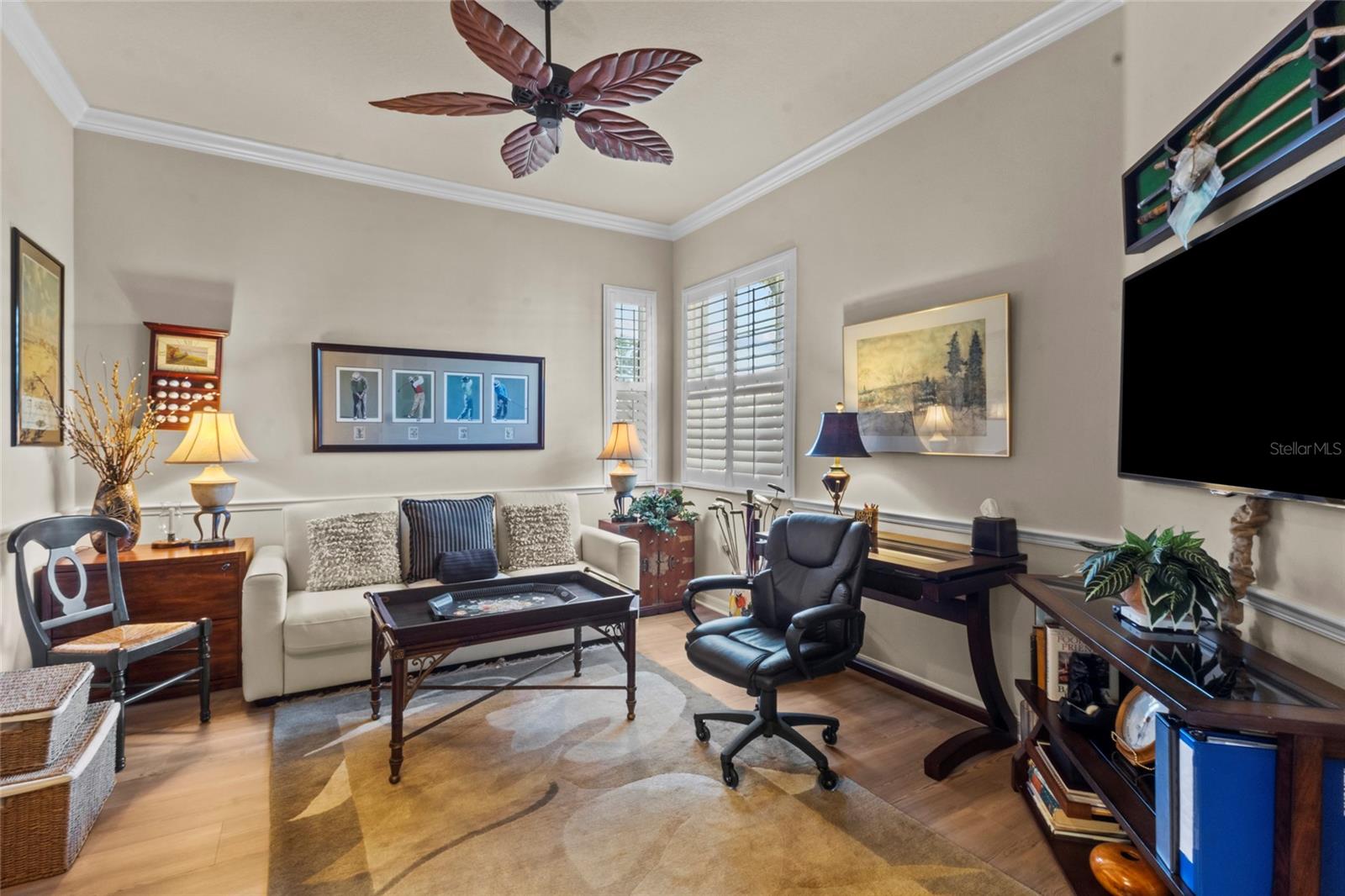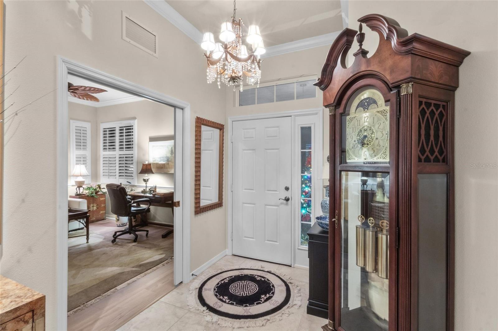 Discover easy, maintenance-free living where everything is handled for you, giving you more time to enjoy the Florida lifestyle. Exterior insurance, roof reserves, lawn care, pest and termite protection, exterior painting, and discounted high-speed internet are included in the quarterly fees. The community offers two pools, a resident-run clubhouse, no CDD fees, and optional membership at Plantation Golf & Country Club for golf, tennis, pickleball, fitness, dining, and social activities.This patio home stands out for its exceptional storage. The primary suite includes two walk-in closets, and the guest suite features another large walk-in closet plus pull-down attic stairs leading to a finished storage room--a rare and valuable feature in Florida homes.Inside, the home is bright and welcoming with neutral tile floors, plantation shutters, crown molding, and tray ceilings. The kitchen has crisp white cabinets, granite countertops, double ovens (2023), induction cooktop with hood vented to outside, Bosch dishwasher (2023), a walk-in pantry, breakfast bar, and an eat-in area framed by a bay window and additional cabinetry.The oversized screened lanai feels like a private tropical oasis, surrounded by lush landscape that creates complete privacy. A bubbling fountain and low-voltage lighting make this space perfect for relaxing or entertaining.Additional highlights include an inside laundry with utility sink, extra cabinetry and counter space, an epoxy-coated garage floor (2025), interior paint (2024), and a new HVAC system with blue light technology (2020). The home is fully storm-ready with impact glass windows, motorized roll-down Kevlar-like hurricane screens on the covered lanai, and accordion shutters at the primary bedroom slider--allowing quick and complete protection.A third bedroom currently serves as a den/office, offering flexible space for work or hobbies. Immaculately maintained and thoughtfully upgraded, this home offers the rare combination of maintenance-free living, privacy, and exceptional storage in a highly desirable Venice community.