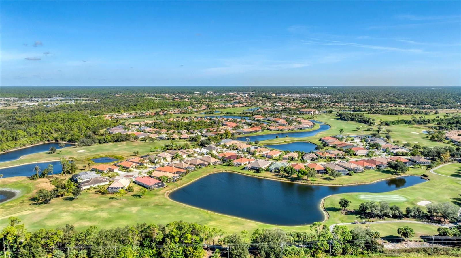 HERON CREEK GOLF & COUNTRY CLUB -- Welcome to Ember's Edge, a beautifully appointed 2,085 sq ft lakefront POOL home offering 3 BED, 2 BATH + DEN, NEW TILE ROOF and some of the most breathtaking PANORAMIC GOLF VIEWS in all of Heron Creek--a sweeping vantage across the shimmering lake to both #6 and #7 of the Oaks Course, a premier Arthur Hills-designed masterpiece loved by golfers of every level. Perfectly positioned on a premium point lot at the end of a quiet cul-de-sac with coveted southern exposure, this residence glows with natural light and the warm, easy ambiance of true Florida living. Offered Move-In Ready & TURN-KEY FURNISHED with a golf cart available under separate contract, the home features a NEW TILE ROOF, NEWER HVAC, and 2024 WATER HEATER for peace of mind. Inside, the casual yet elegant floor plan offers effortless flow, high ceilings, and room to gather with friends and family. A private den/home office sits at the front of the home--ideal for work, creativity, or quiet study. Guests will enjoy their own tucked-away wing with two bedrooms and a full bath separate from the main living areas. The spacious primary suite overlooks the water and golf course and includes dual closets, a soothing ensuite bath with garden tub, double-sink vanity, and a private water closet. At the heart of the home is the bright, inviting kitchen with natural-gas range, light wood cabinetry, classic solid-surface counters, and a raised breakfast bar--perfect for casual meals or lively conversation any time of day. Cascading sliders open wide to the expansive lanai with Clear view screening, blurring the line between indoors and out, here you'll find a beautiful, heated pool with a dedicated lap lane, generous space for alfresco dining, and casual seating. Savor the soft breezes, golden sunsets, and panoramic golf views that truly set Ember's Edge apart. Whether sipping your morning coffee, enjoying twilight cocktails, or hosting weekend gatherings, every moment is elevated by the stunning backdrop of Arthur Hills' renowned course design. This home resonates a comfortable, relaxed vibe and epitomizes laid-back living at its finest--a rare offering for those who long for beauty, serenity, and the good life in a vibrant, resort style community where every day feels like vacation. Discover why Ember's Edge is the spark that ignites your best Florida life ! Heron Creek offers exceptional amenities including a 21,000 sq ft clubhouse, 27 holes of Championship golf, resort style pool & spa, a robust social activity calendar, fitness center, Tennis courts & formal & casual dining options! Club Membership is required w/ 3 membership levels offered beginning at $278/month *NO CDD FEES * LOW HOA FEES include lawn care, trimming, mulching, irrigation, FIBER OPTIC/ TV/ HIGH-SPEED INTERNET & Gated entry, conveniently located w/easy access to I-75 & US-41, Cocoa Plum Shopping ,Myakkahatchee Creek trails, WELLEN PARK, Braves Stadium, COSTCO & will be just 3 miles to the new 507Million SMH Hospital Coming to I-75 & Sumter Blvd! FLOOD ZONE X (lenders won't require flood insurance)