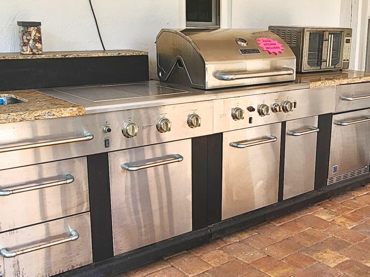 - Exterior: Hurricane Shutters, Lighting, Outdoor Grill, Outdoor Kitchen, Private Mailbox, Rain Gutters, Storage