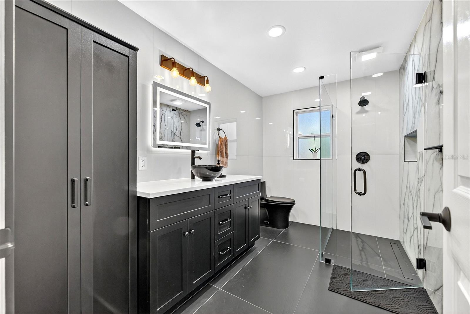 - Exterior: Lighting, Outdoor Shower, Sliding Doors