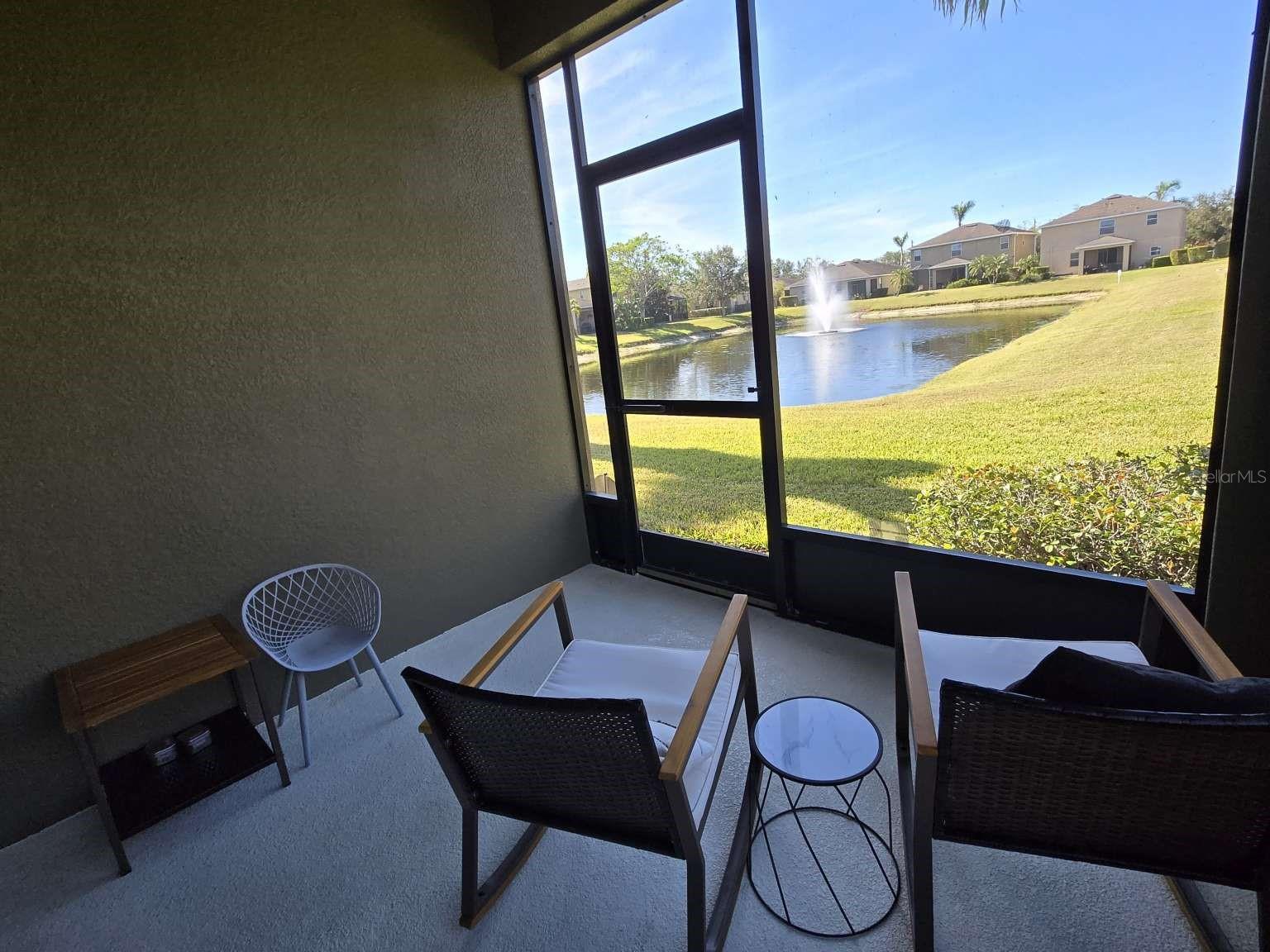 3 bedroom, 2 bath single family home in Palmer Oaks community in Sarasota. New roof, new gutters, new A/C and new refrigerator. Located on a quiet and shaded lot with a tree-lined street. Watch the sunrise on the covered front porch, and watch the sunset across the lighted fountain pond view from screened lanai and master bedroom. Never mow the grass again as HOA includes neighborhood maintenance and lawn/sprinkler care. House has 2 main living room areas for privacy, and the Kitchen is equipped with stainless steel appliances and granite countertops and island. Primary bedroom has a walk-in closet with a granite double vanity with a separate tub and shower. Tile floors throughout main areas with carpeted bedrooms. Attached two car garage opens to the separate laundry room. Gated community, sidewalks, private lakes, and fountains throughout the neighborhood. Newly resurfaced heated pool has loungers and bathrooms along with a covered area and palm trees for shade. Walking distance to grocery stores, shops and restaurants. A short bike ride to the Legacy bike trail. A few minutes to I-75 and 15 minutes to Siesta Key.