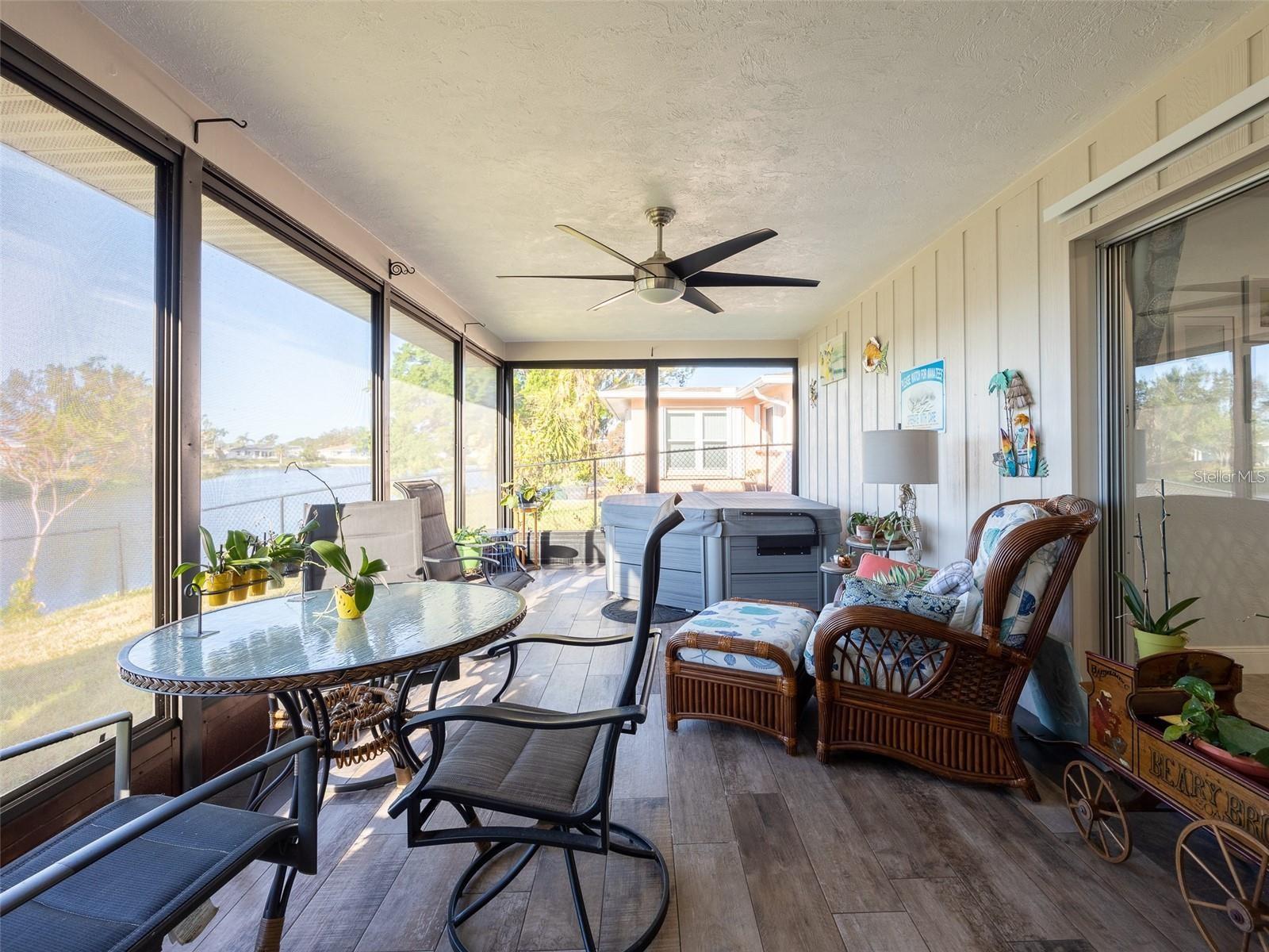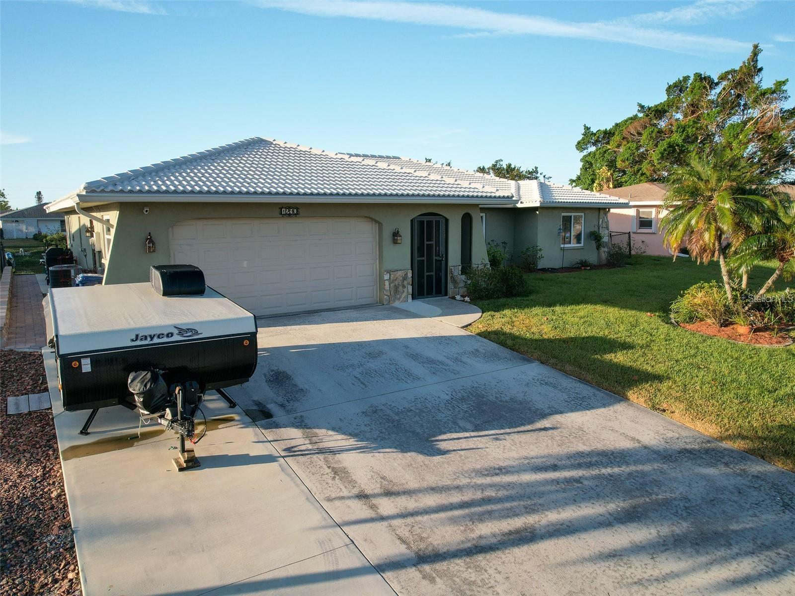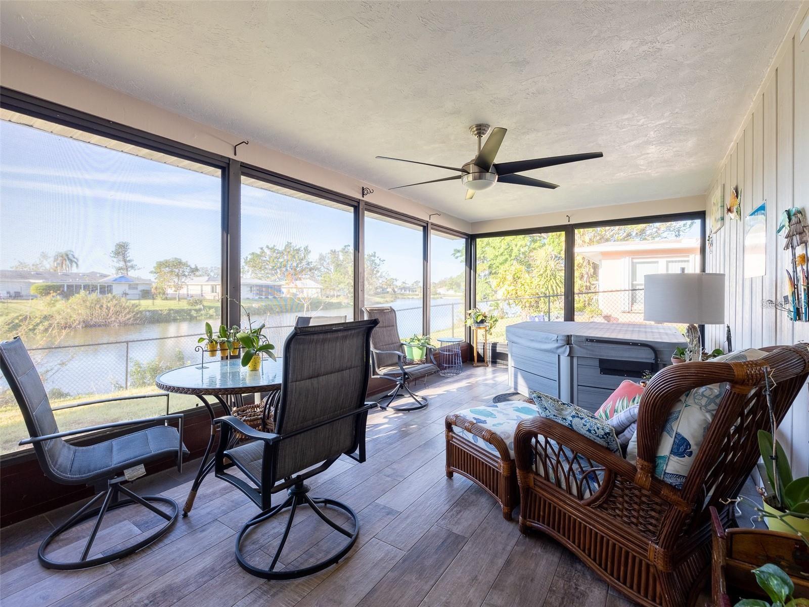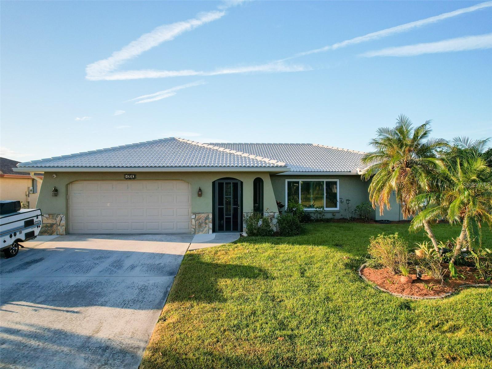 This one is a showstopper! Beautiful lakefront views from this light & bright solid concrete block construction home with no flood insurance required! This 1700 sqft, 2-bedroom 2-bathroom split floorplan home has too many upgrades to list them all. Starting from the moment you enter you will see how this home was cared for with no expense spared. A gorgeously updated eat-in kitchen with solid wood cabinets, stone countertops and all new appliances. Both bathrooms have been tastefully updated alongside large bedrooms with walk-in closets. This home is ready for entertaining, with a formal living room and formal dining, in addition to a family room open to that stunning kitchen and access to the enclosed lanai overlooking the lake. Not to mention the massive laundry room off your 2-car garage; this home has storage for days. A few special features for the new homeowner include a newer generator installed, power for a camper on the side of the home with the extended paved driveway and a new jacuzzi! Not only does this home offer loads of entertainment but is protected from any storm heading this way, a newer tile roof, all windows and doors are impact rated and the lanai windows are fitted for hurricane shutters. ABSOLUTELY ZERO DAMAGE FROM THE STORMS LAST YEAR/NO FLOODING OR WIND DAMAGE!! All you have to do is move in and enjoy the Florida lifestyle, located just south of Center Rd, minutes from our beautiful sandy beaches, shopping and dining and the local airport. Home being sold furnished as an option with the exception of a few items. MOTIVATED SELLER!