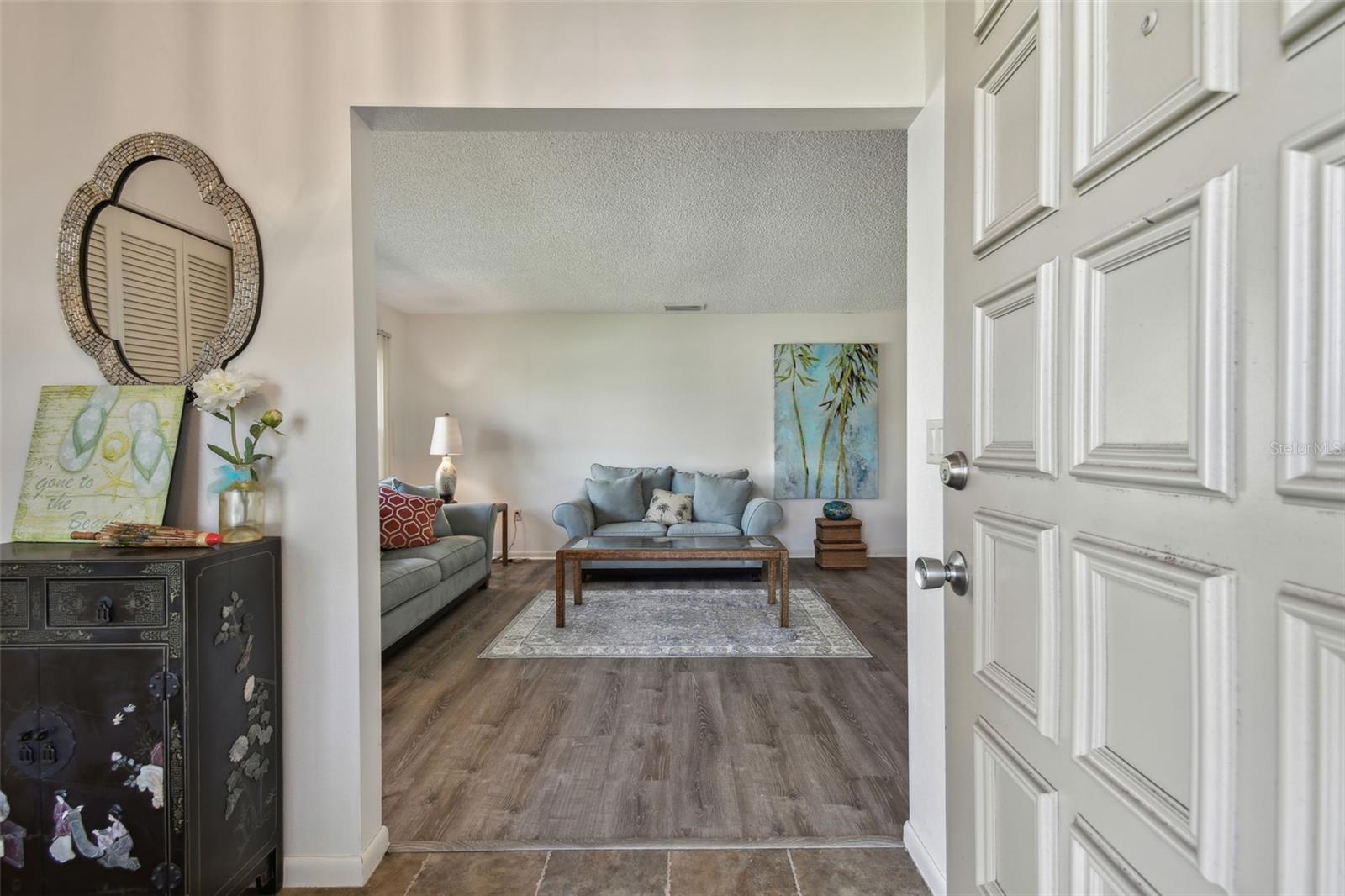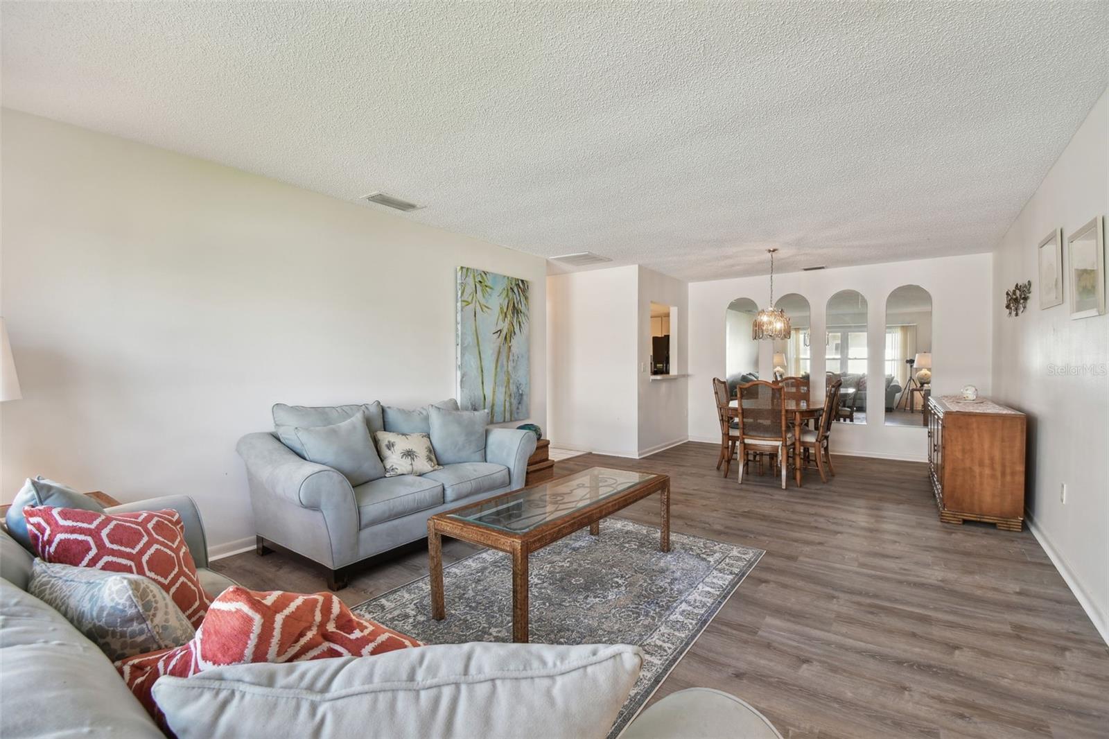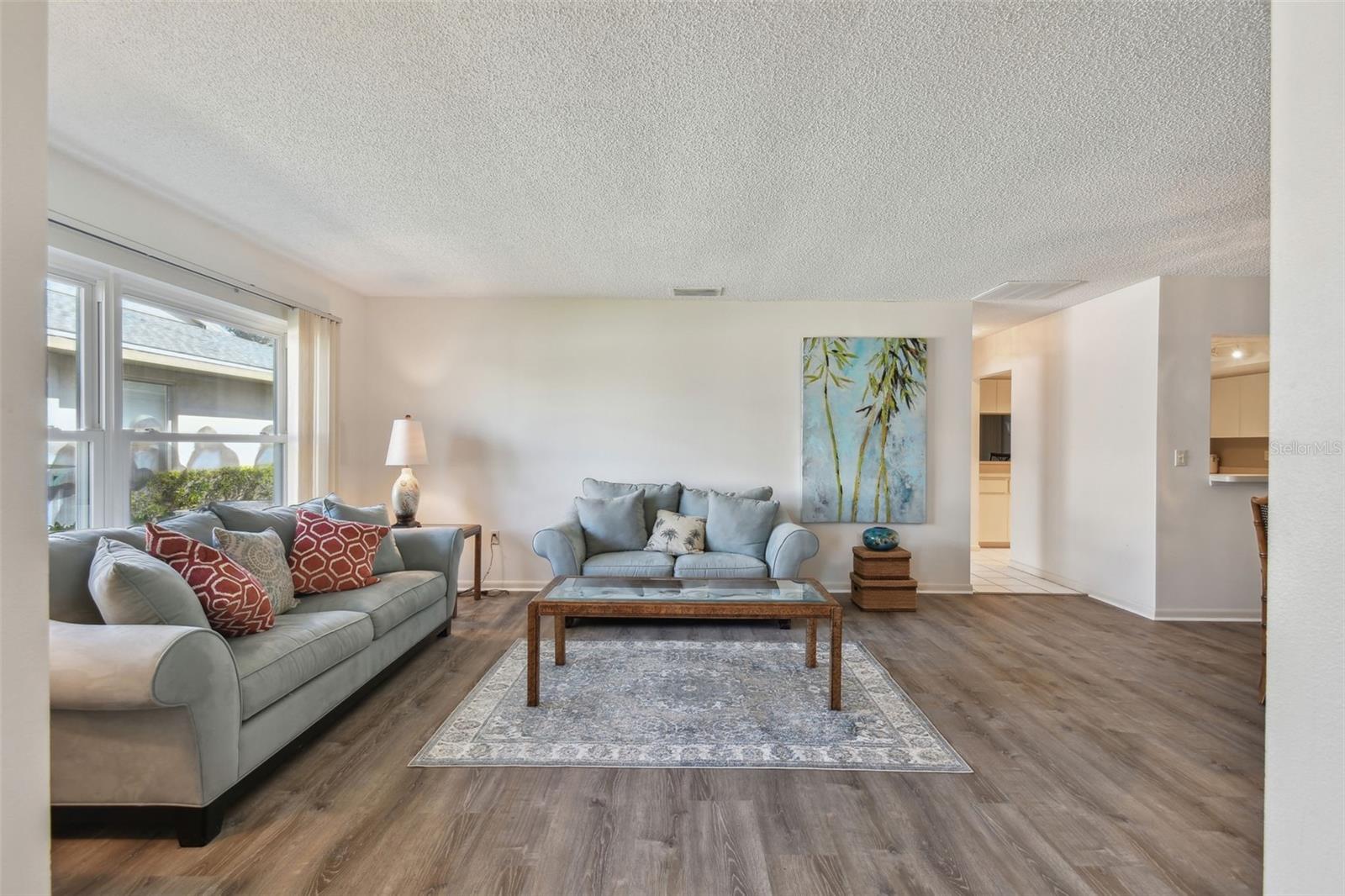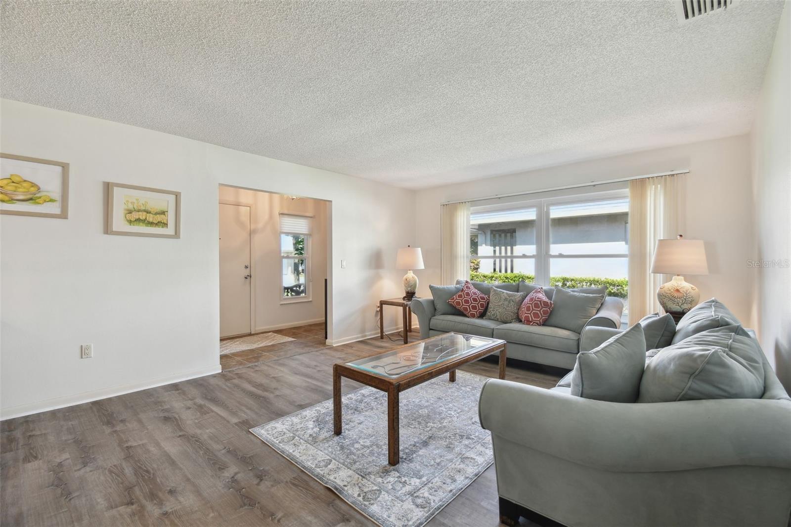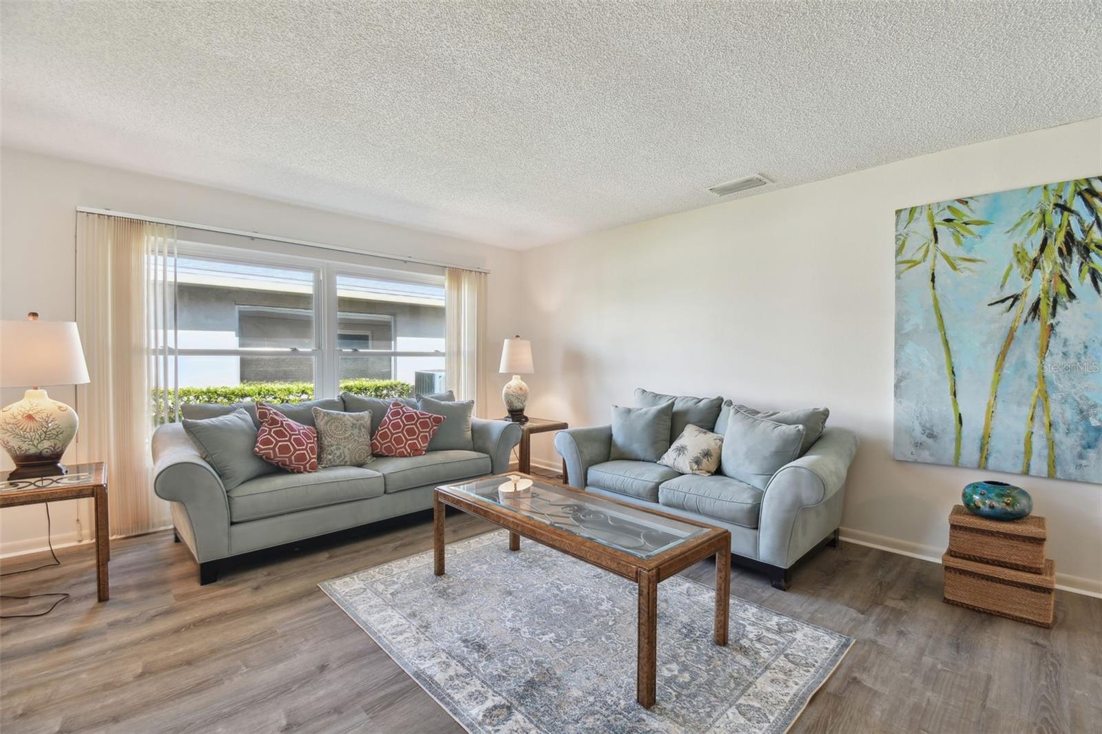 PEACEFUL, SPACIOUS, 55+, 2/2/2 VILLA IN DESIRABLE CENTER GATE VILLAGE! This two-split bedroom, two bath home is light and bright and has a lovely, screened porch waiting for you to enjoy your morning coffee.CGV's design, with 24 homes circling their own private community pool gives a sense of intimacy and fellowship. This home has been well maintained and had luxury vinal flooring installed in 2024. The A/C, roof, water heater, and electric have recently been inspected and passed with flying colors. Hurricane windows and block construction give security. All outside maintenance is taken care of, allowing you the luxury of enjoying our beautiful area. Your visitors will love being 20 minutes from the GULF and you're close to shopping and tasty dining. Come enjoy what US News & World Report Ranked as the 4th Best Place to Retire in the Country!