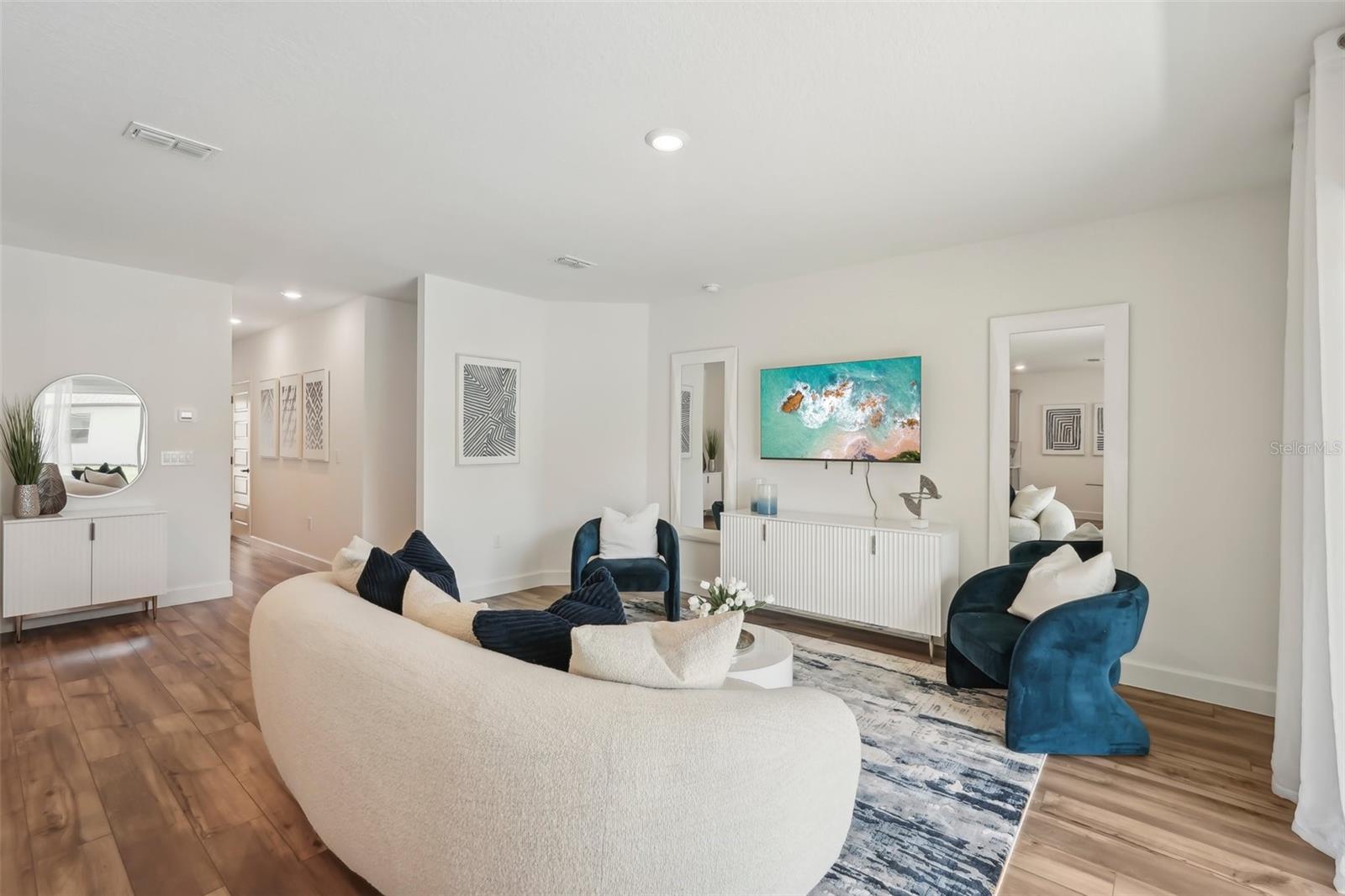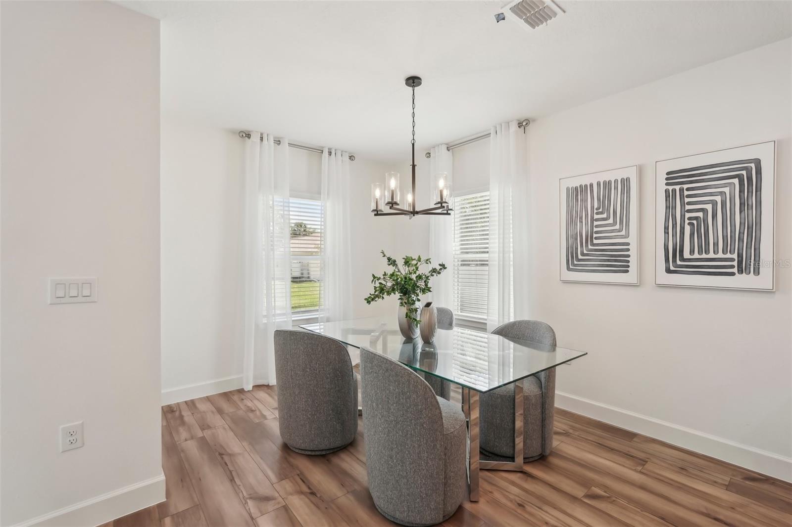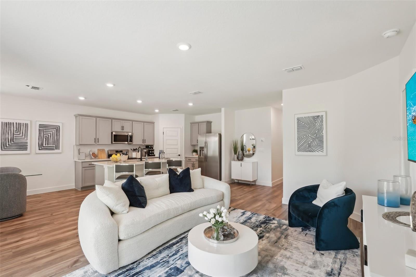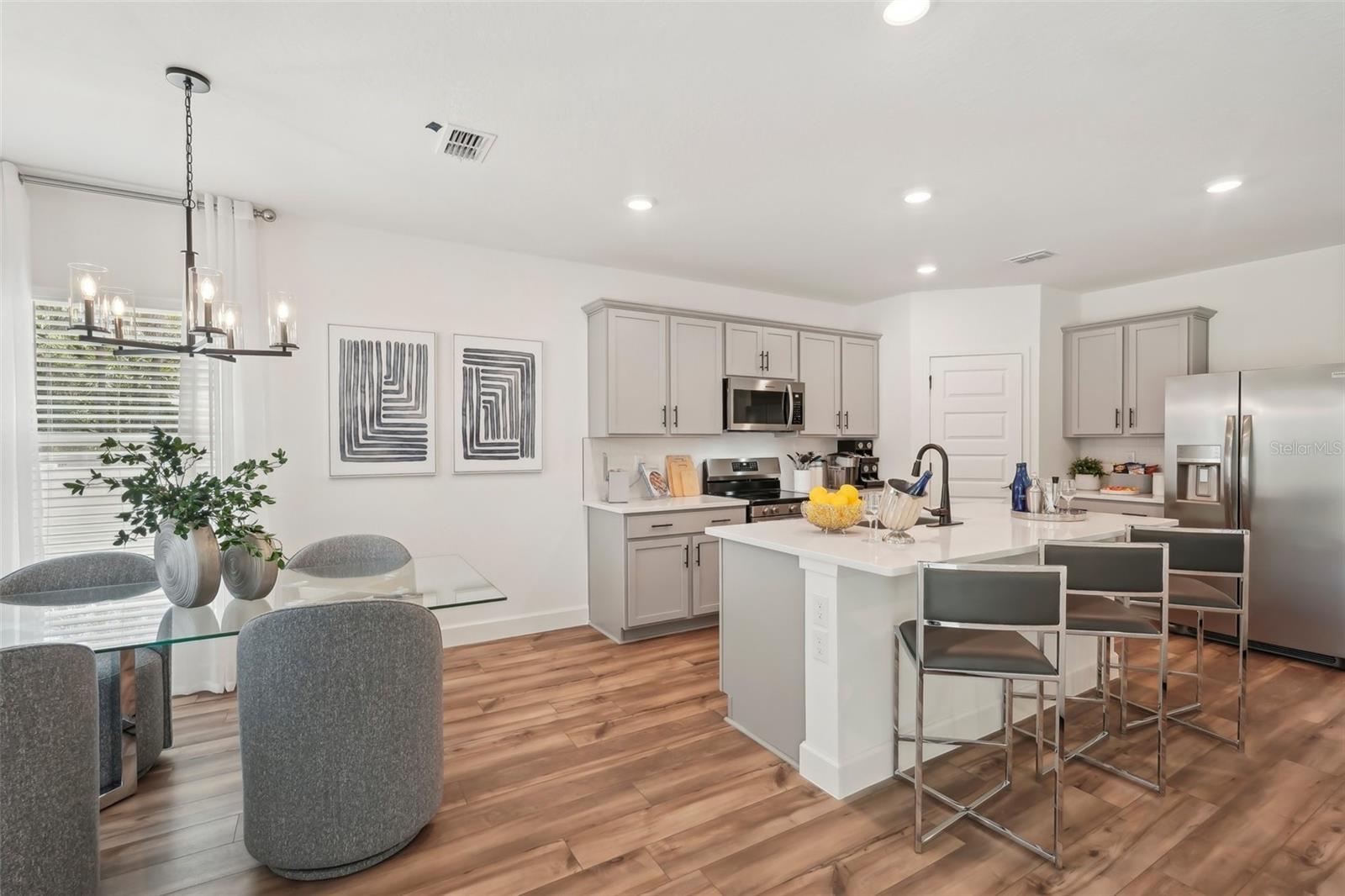 Under Construction. "Photos are of the model home and are for illustrative purposes only. Actual home may vary in color, finishes, and features."This thoughtfully designed 3-bedroom, 2-bathroom home blends comfort, style, and modern upgrades in every corner. The exterior features stone accents, creating beautiful curb appeal and a welcoming first impression.Step inside to a bright and open layout featuring a stunning kitchen with Frigidaire stainless steel appliances, including a side-by-side refrigerator, a classic subway tile backsplash, and Level 2 upgraded cabinetry with crown molding and decorative hardware. Sleek quartz countertops are featured in both the kitchen and bathrooms, adding a polished, sophisticated touch.Additional highlights include:Blinds on all operable windows for added privacyLuxury vinyl plank flooring throughout the main living areasPlush carpeting in all bedrooms for added comfortDecorative lighting in the dining area for a warm, inviting ambianceWhether you're hosting guests or enjoying a quiet evening at home, this beautifully finished space offers everything you need to live comfortably and stylishly. Schedule your private tour today!