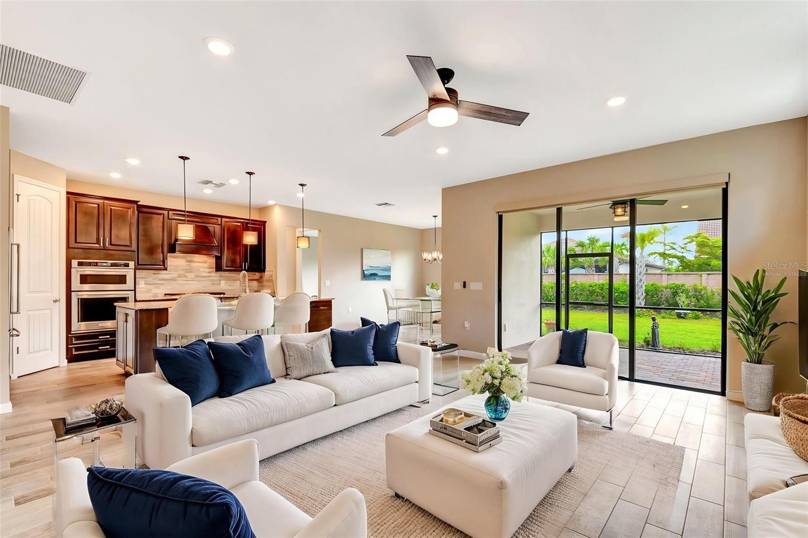 One or more photo(s) has been virtually staged. Amazing opportunity to own a well maintained, thoughtfully upgraded Summerwood Model in the sought-after 55+ Del Webb community of Lakewood Ranch! TheSummerwood model has a bright, spacious open layout with an atmosphere perfect for entertaining. The home boasts 1,879 sq. ft. of beautifully designed living space, featuring 2 bedrooms, 2 full bathrooms, plus aden/flex space perfect for an office or third bedroom. The 2 car garage has a bonus tandem space which could be a great spot for a golf cart or extra storage! The owner's suite is a private sanctuary, featuring a spa-likeensuite with dual vanities, private water closet, spacious shower, and a generous walk-in closet. The well-appointed kitchen is a chef's dream, equipped with upgraded KitchenAid appliances, including a natural gascooktop with custom hood, oven, refrigerator, and microwave. Elegant granite countertops, a stylish backsplash, upgraded cabinetry, pendant lighting, oversized center island with end cap storage cabinets, and pantryprovide everything a culinary enthusiast could want. Designed for easy Florida living, the home features a screened lanai, wood look plank tile throughout, abundant storage, full house water softener, and wifi enabledrolldown shades for shade and privacy. Del Webb Lakewood Ranch features world-class amenities, including 6 tennis courts, 8 pickleball courts, 4 bocce ball courts, a state-of-the-art fitness center, group classes, and aresort-style pool with lap pool. There is also and on-site restaurant and bar, and a variety of clubs and social activities overseen by a full-time Lifestyle Director. With the HOA managing lawn maintenance, irrigation,fertilization, and light pruning, you'll enjoy a low-maintenance lifestyle giving you more time to explore all the activities and amenities that Del Webb has to offer. This beautifully maintained home is move-in ready andwon't last long!