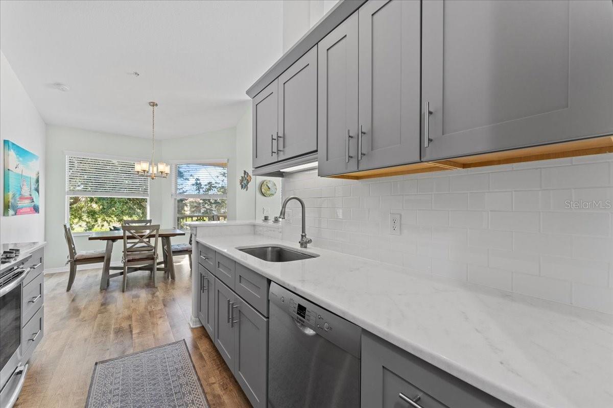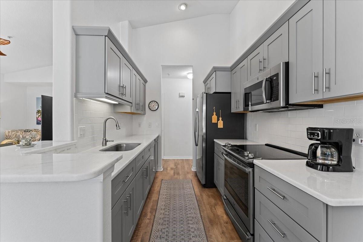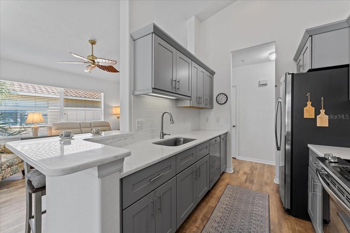 Welcome to the premier resort style gated community of Casa di Amici in Venetia! This lovely well designed 1383 sq. foot residence offers a private one car garage plus convenient parking at your doorstep. An inviting entrance with seating leads you into the 3 bed 2 bath home with high cathedral ceilings, providing height and light to this seamless open space with a thoughtful split bedroom floorplan. Check out the beautiful flooring and comfortable living room with ceiling fan. The gorgeous kitchen offers quality cabinets, gleaming quartz tops, under counter lighting and upgraded appliances, including a new Bosch dishwasher and a fridge with ice and water dispenser. You will love this kitchen! From the dining room you can look out over the tropical pond and there's plenty space to entertain friends and family. Nice primary suite with 2 separate closets, one of which is a large walk in closet. The master bath provides dual sinks and a private spot for the commode. Two more nice size bedrooms can serve as guest rooms or home office. The "wow" spot is the screened back lanai, which is where you can spend your time watching the sparking pond, fountain and Florida wildlife, while mature landscaping lends total seclusion and serenity. It's a perfect place to enjoy the sunset. Convenient laundry room with room for cleaning essentials and additional storage. This home is in superb move in condition and the foreign sellers are including all the furniture and equipment with the sale. If you prefer bringing your own, we can get the content removed. Brand-new ac system 2024, new hot water heater 2020. Get fit at the gym or enjoy a swim in the sparkling pool. Furthermore, you can play tennis, shuffleboard, pickleball, basketball, bocce or join at the activities in the fabulous clubhouse. Pets are welcome.