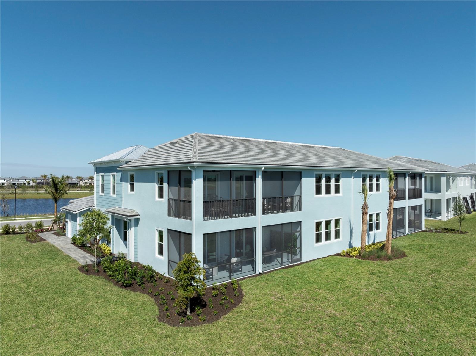 READY NOW - This elegant 1,904 sq. ft. first floor coach home with a Coastal elevation offers 2 bedrooms, 2.5 bathrooms, a bright private study, and a spacious 2-car garage pre-plumbed for a utility tub. Designed for comfort and style, the open-concept layout features soaring 9'4" ceilings and impact-rated windows, creating a light-filled, welcoming atmosphere. Light stone-gray tile flooring flows front to back in a staggered pattern throughout the main living areas and bathrooms, while plush beige carpeting adds warmth to the bedrooms. The executive-style kitchen is a true centerpiece, showcasing light gray shaker-style cabinetry with soft-close doors and drawers, satin nickel hardware, and off-white quartz countertops with delicate gray and taupe veining, reminiscent of natural marble. A glossy white backsplash in a classic brick pattern adds texture and charm. Whirlpool stainless steel appliances include a quiet ENERGY STAR® dishwasher, steam microwave, electric cooktop, wall oven, and a 4-door counter-depth refrigerator with custom temperature zones (ENERGY STAR® certified). The spacious owner's suite is a private retreat, generously sized to accommodate a king-size bed, nightstands, dresser, and more. It features an oversized walk-in closet and a spa-inspired bath with a dual sink raised vanity, zero-entry shower with a bench seat, brushed nickel finishes, and a mosaic tile shower floor. The bright study offers a peaceful space for work or relaxation, and the expansive screened lanai stretches across the back of the home--perfect for morning coffee, evening gatherings, or simply soaking in the serenity. Additional highlights include a powder bath for guests, a laundry room with an ENERGY STAR® washer and dryer, and smart home features like an Alexa-enabled thermostat, ClareOne touchpad control, smart lock with deadbolt, and a voice-enabled video doorbell. Residents of Palmera will enjoy a spectacular amenity center currently under construction, featuring a Club House with Grill Pub, Resort Pool with Lap Lanes, Splash Pad, Playground, Fireside Seating, Fitness Center, Pickleball Courts, Gathering Lawn, Nature Trail, On-Site Dining, and even a Golf Simulator--all designed to elevate everyday living. Located just minutes from Wellen Park's vibrant dining, shopping, and ballpark scene, and with easy access to the Gulf Coast's pristine beaches, this home offers the perfect blend of luxury, lifestyle, and location.***Photos, renderings and plans are for illustrative purposes only and should never be relied upon and may vary from the actual home. Pricing, dimensions and features can change at any time without notice or obligation. The photos are from a furnished model home and not the home offered for sale.