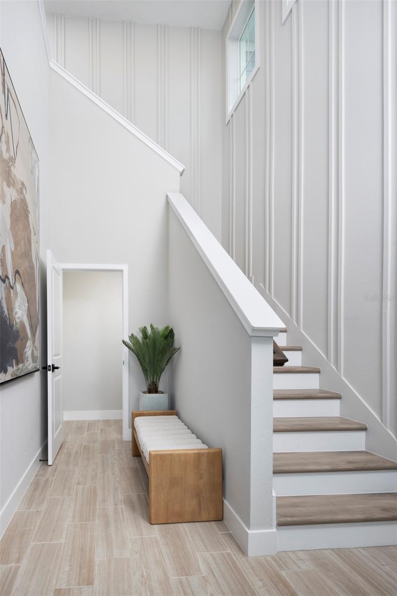 The Oceangrove II plan is the largest coach home available in the community with 2 bedrooms, 2 baths, a study, a 2-car garage, and condominium ownership. This open floorplan offers optimized living spaces and is perfect for entertaining guests for a few hours or days. The entrance of this home features a welcoming covered entry or convenient owner's garage access. The main living area is just up the stairs. The designer kitchen is adjacent to the dining area and Great Room. It features an island with a breakfast bar that will seat up to 5, cooktop with stainless vent hood and wall oven/micro combo. A covered balcony is located just outside the Great Room and provides the opportunity to enjoy the beautiful Florida weather and air. The primary suite is a quiet retreat with a well-appointed primary bath and walk-in closet. The study includes a closet and provides a versatile space for a home office, den or 3rd bedroom. Stylish shaker style cabinets in Purestyle White and Carrara Breve quartz countertops throughout. Featuring Clare's Smart Home Technology package that connects to video doorbell, garage door and front door lock. ***Photos, renderings and plans are for illustrative purposes only and should never be relied upon and may vary from the actual home. Pricing, dimensions and features can change at any time without notice or obligation. The photos are from a furnished model home and not the home offered for sale.
